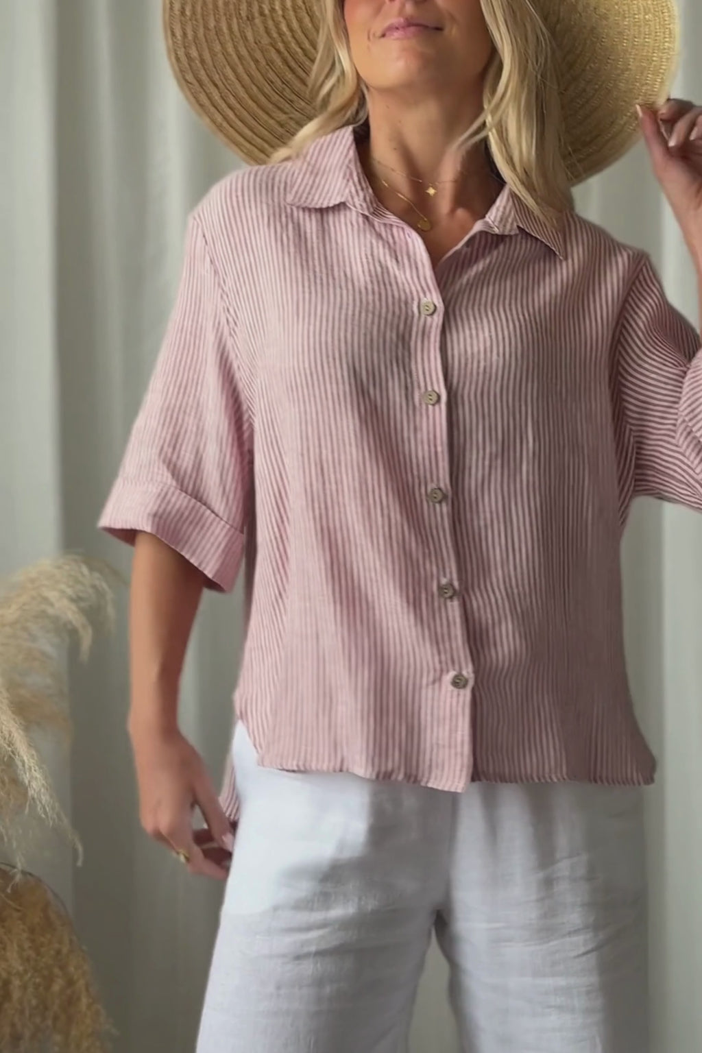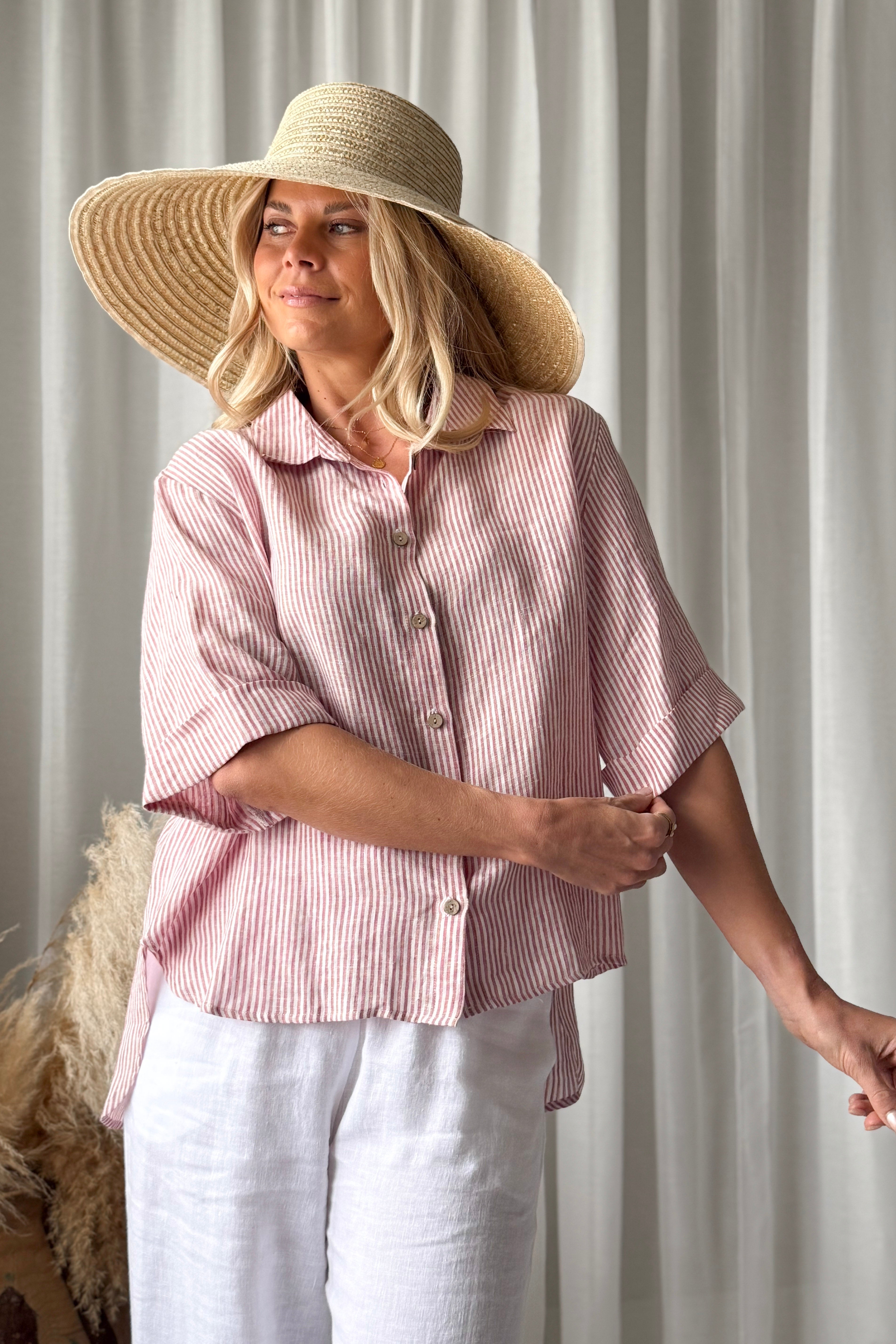 Ajattoman tyylikäs ja rennon väljä pellavapaita, joka sopii täydellisesti niin arkeen, kuin lomatunnelmiin. Paita on valmistettu kevyestä ja hengittävästä pellavasta, mikä tekee siitä miellyttävän käyttää lämpiminä päivinä. Väljä istuvuus, klassinen kaulus ja kauniit nappiyksityiskohdat tuovat paitaan huolettoman, mutta huolitellun ilmeen.