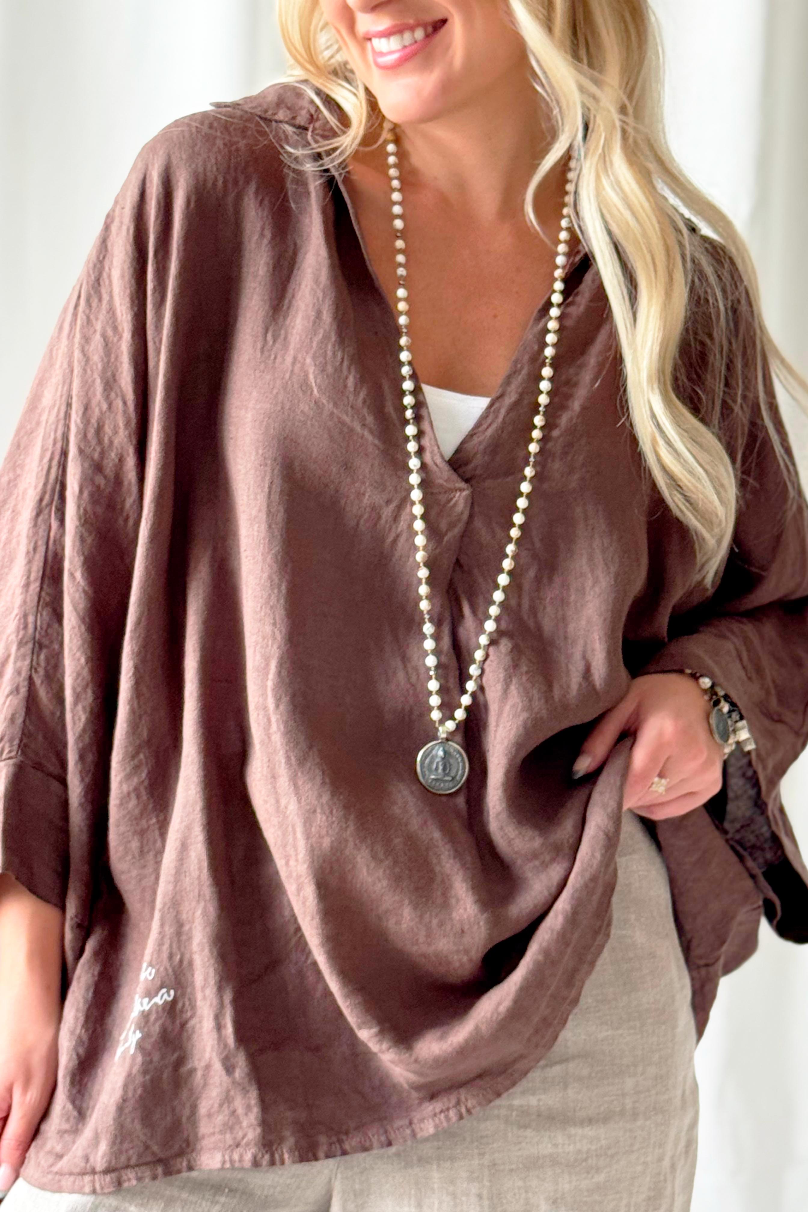 Tämä ihana ja malliltaan ''oversize'' pellavapaita kutsuu sinut Slow life-tunnelmiin. Tässä malli, joka sopii täydellisesti myös plus-kokoiselle. Ajattoman tyylikäs ja rento paita yhdistää mukavuuden ja huolettoman eleganssin. Kevyt ja hengittävä 100 % pellavakangas tekee siitä täydellisen valinnan lämpimiin päiviin. Paita on väljästi leikattu ja pitenee taakse, helma laskeutuu kauniisti, mikä tuo asuun luonnollista liikkuvuutta ja ilmavuutta.