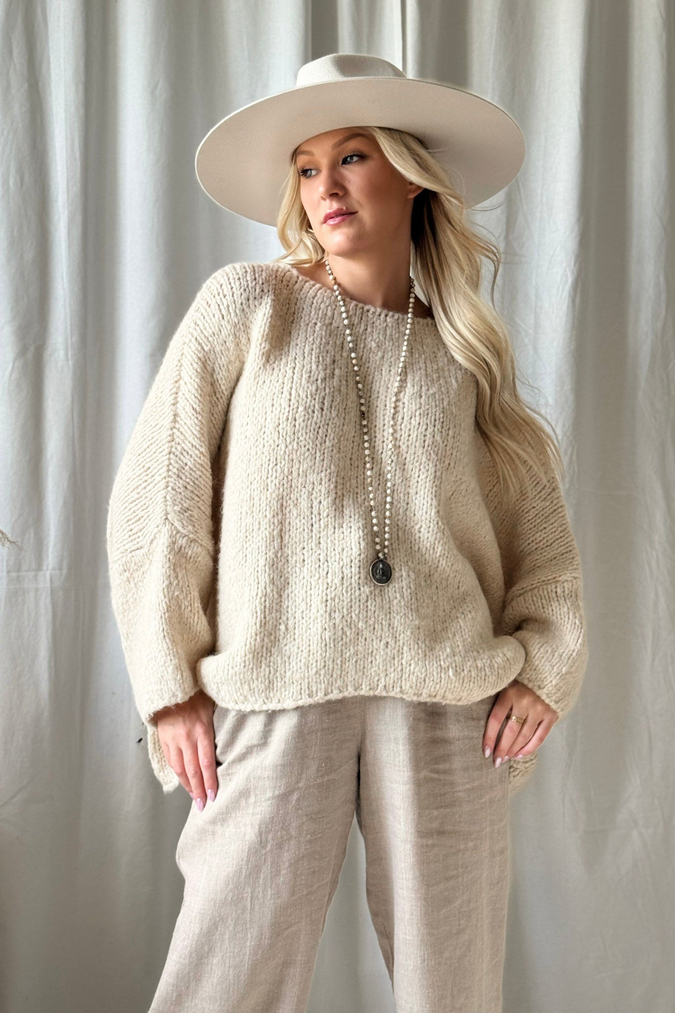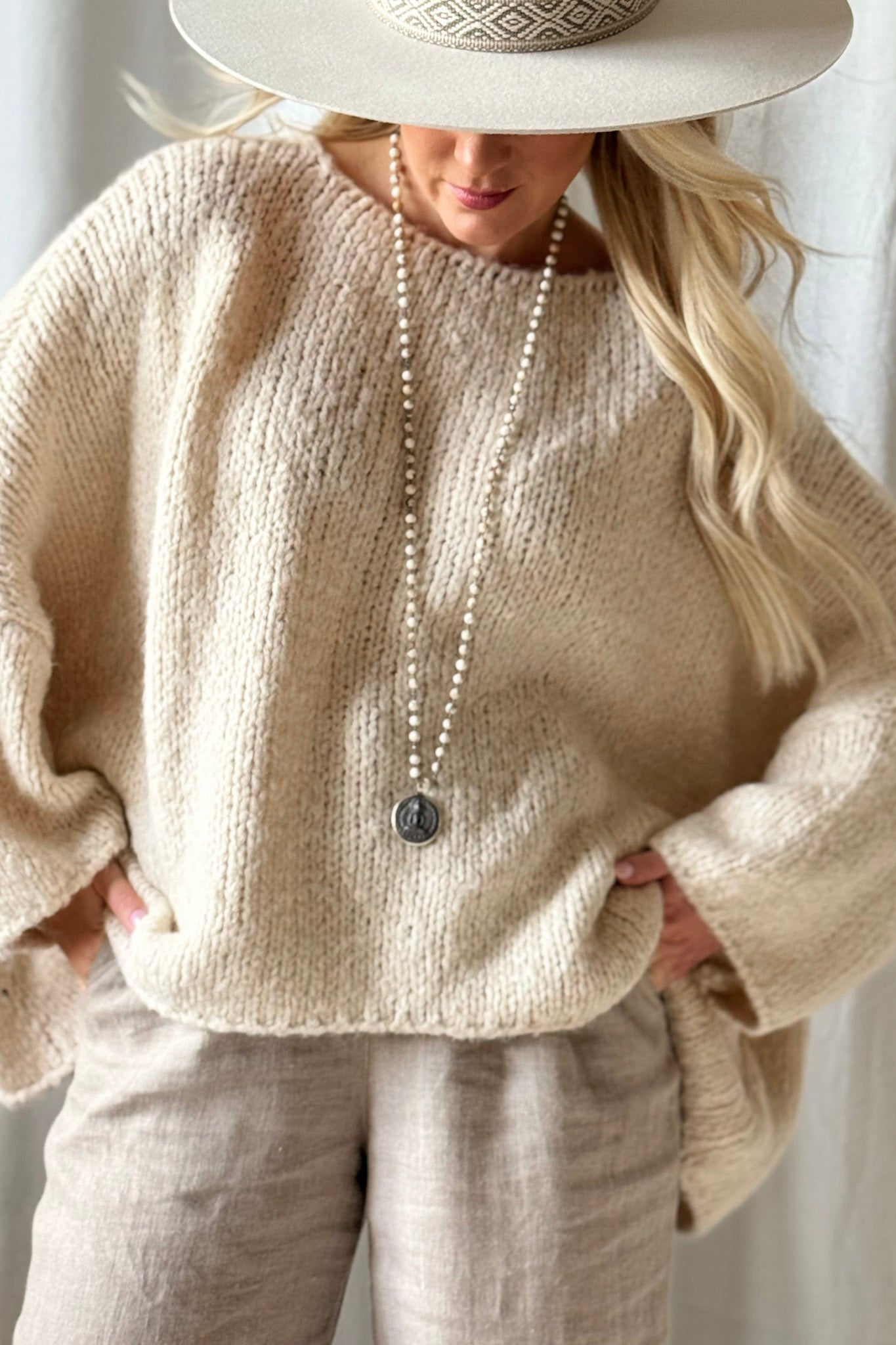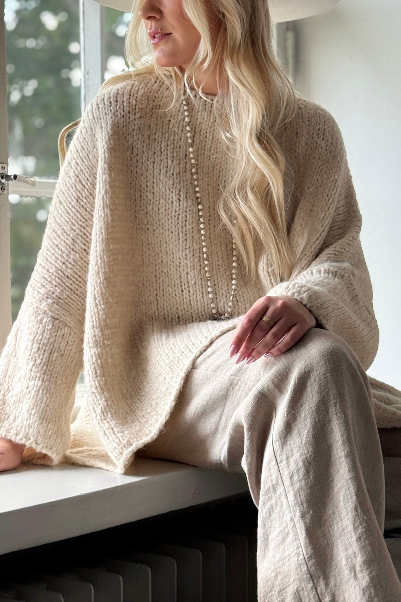 Bouckle-mallistomme ylellisen pehmeä, erittäin väljän mallinen neule, jossa on venepääntie ja madallettu olkapäälinja. Helma on alaspäin levenevä ja oversize mallia. Ihanan muhkea neule viileisiin päiviin! Boucle-neuleet ovat materiaaliltaan helppohoitoisia, eivätkä kutita ihoa.