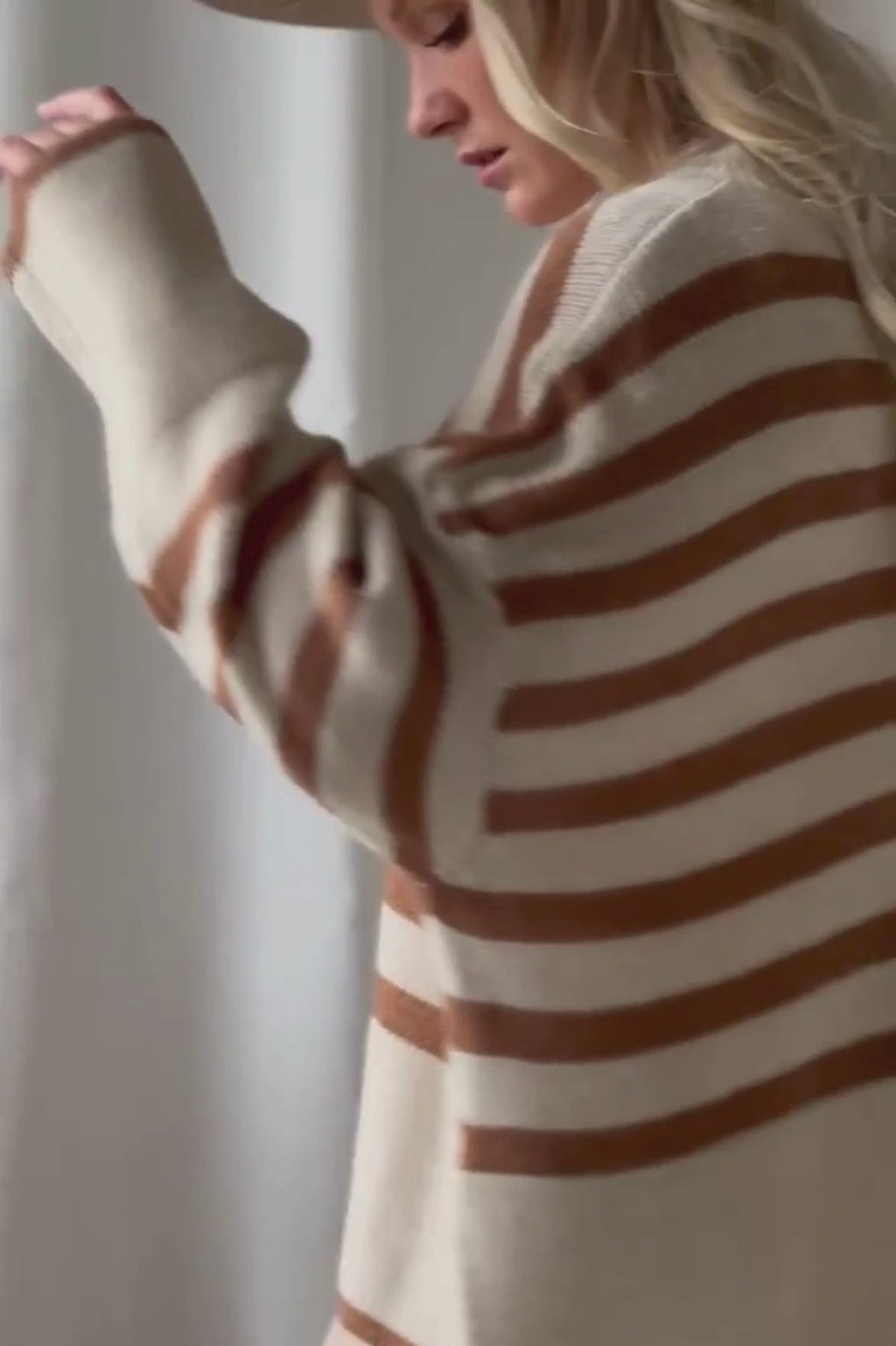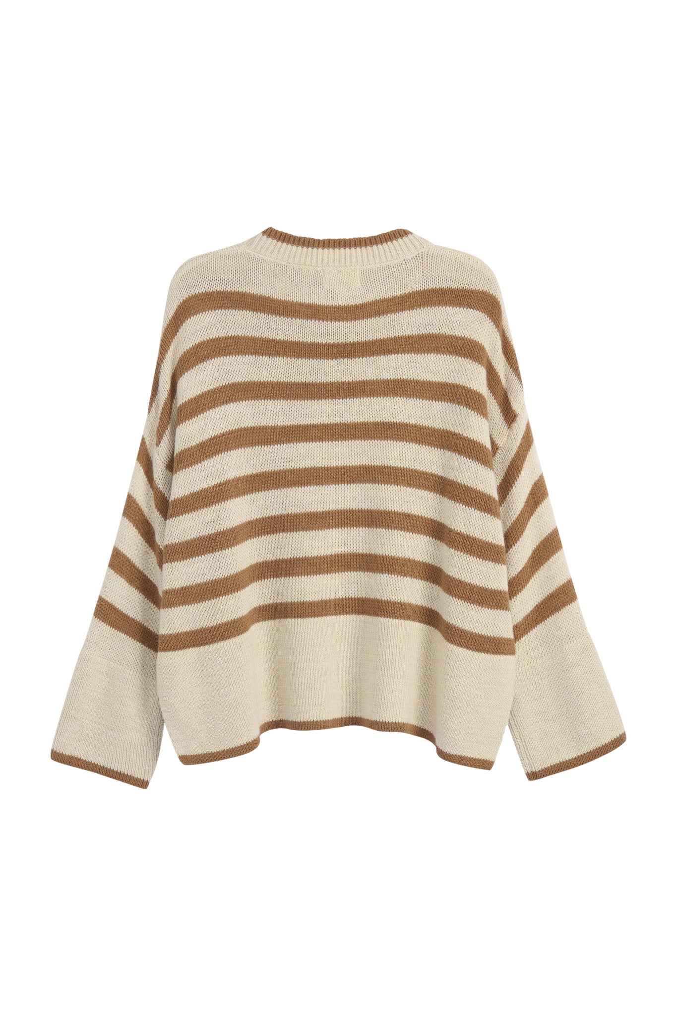 Tyylikäs, ajaton ja monikäyttöinen neulepaita, jossa on pyöreä pääntie, madallettu olkapäälinja ja sivuissa lyhyet halkiot. Paita laskeutuu kauniisti ja on leveähelmainen.