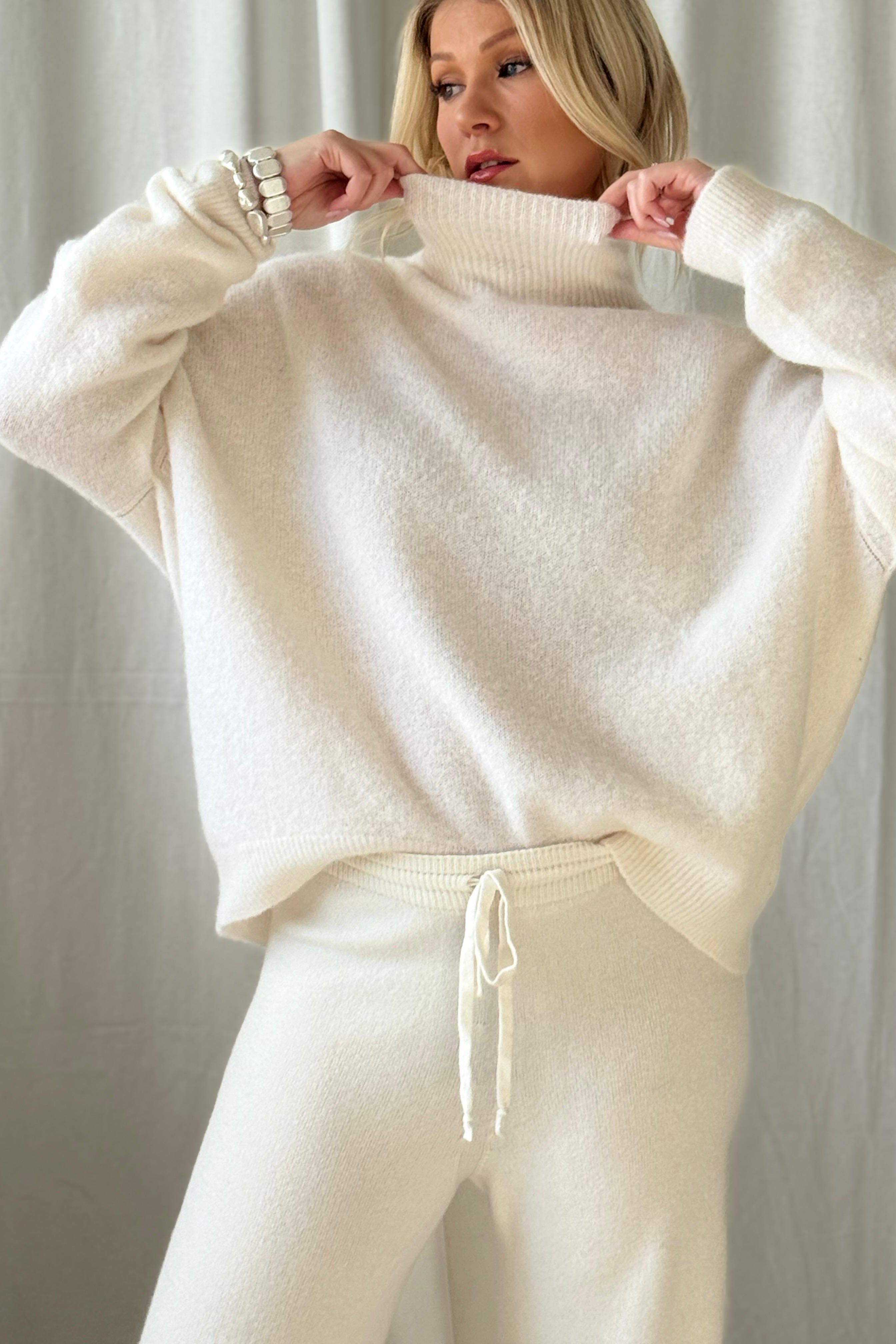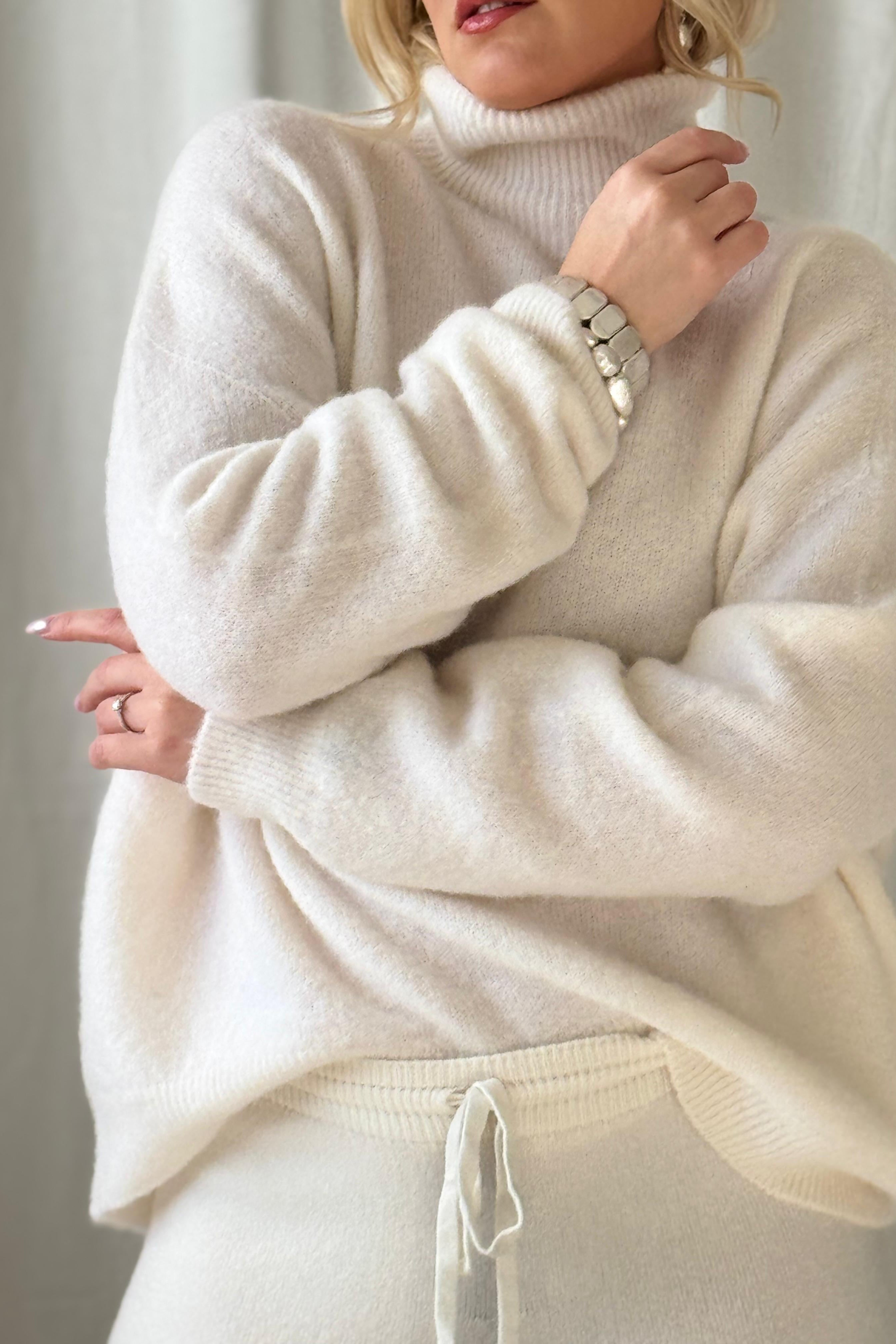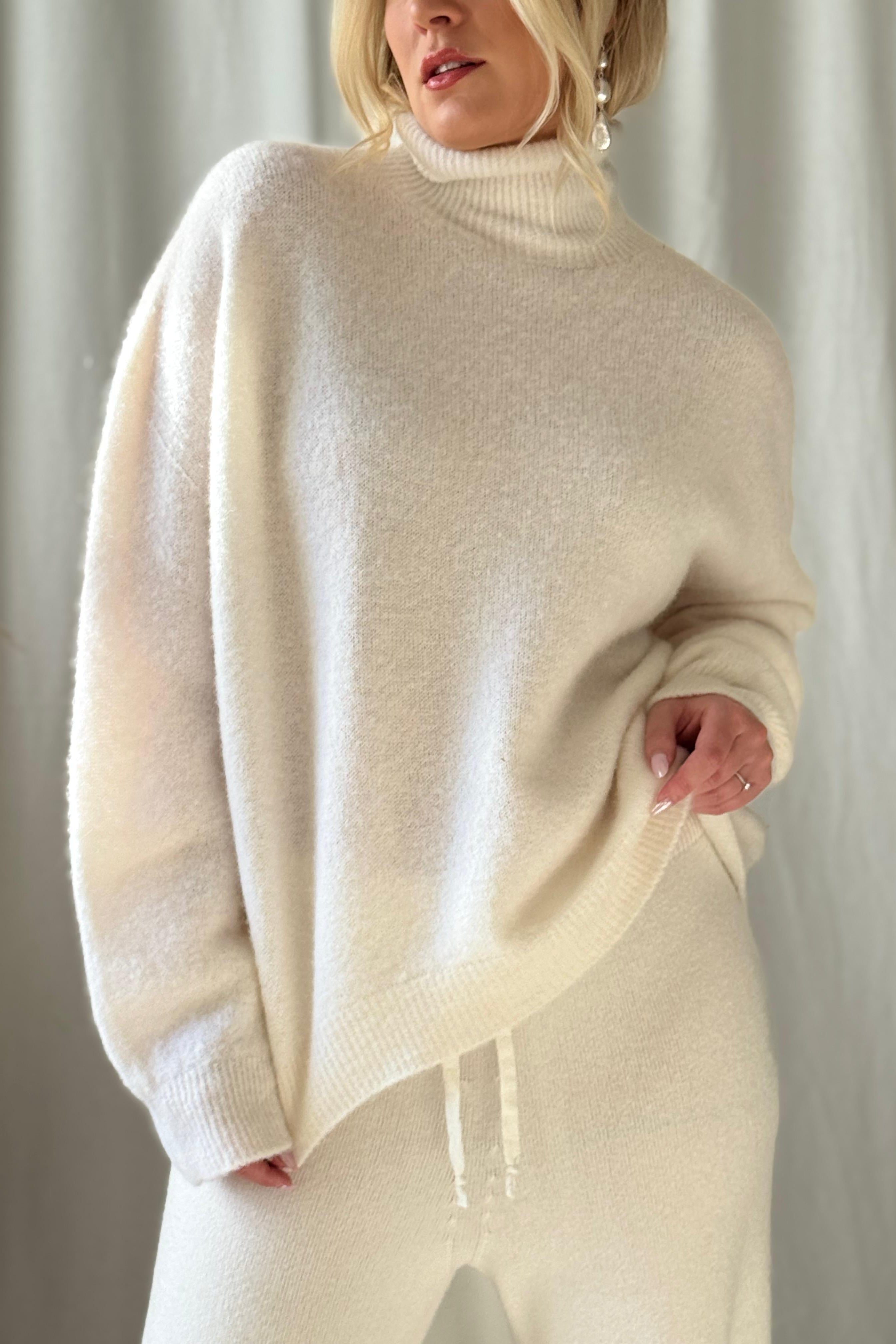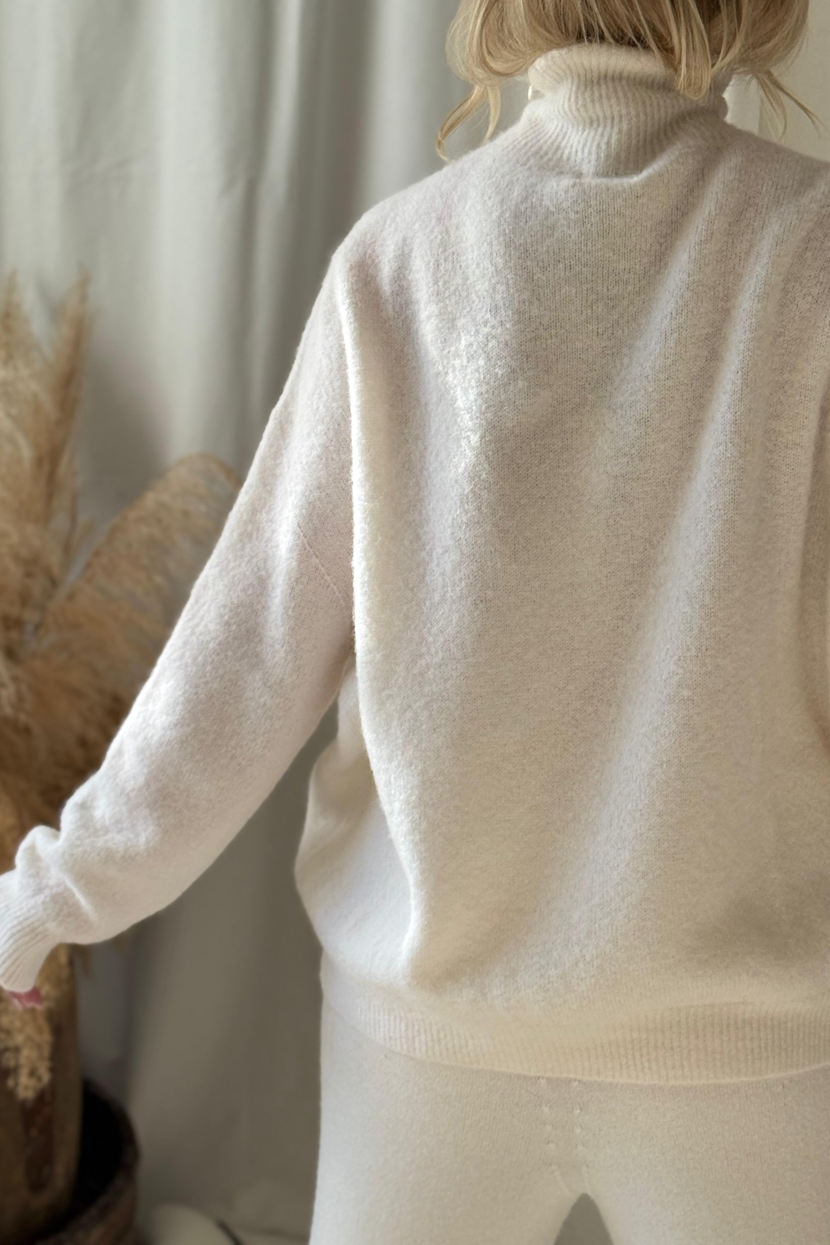Ylellisen pehmeä ja laadukas alpakkasekoiteneule, jossa on poolokaulus ja madallettu olkapäälinja. Kevyet resorit hihansuissa ja helmassa. Alpakkasekoite sopii hyvin myös heille, joita villa kutittaa.