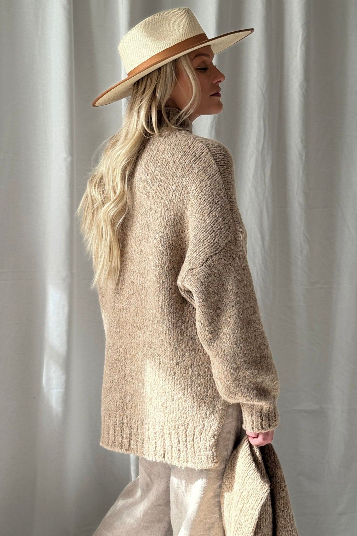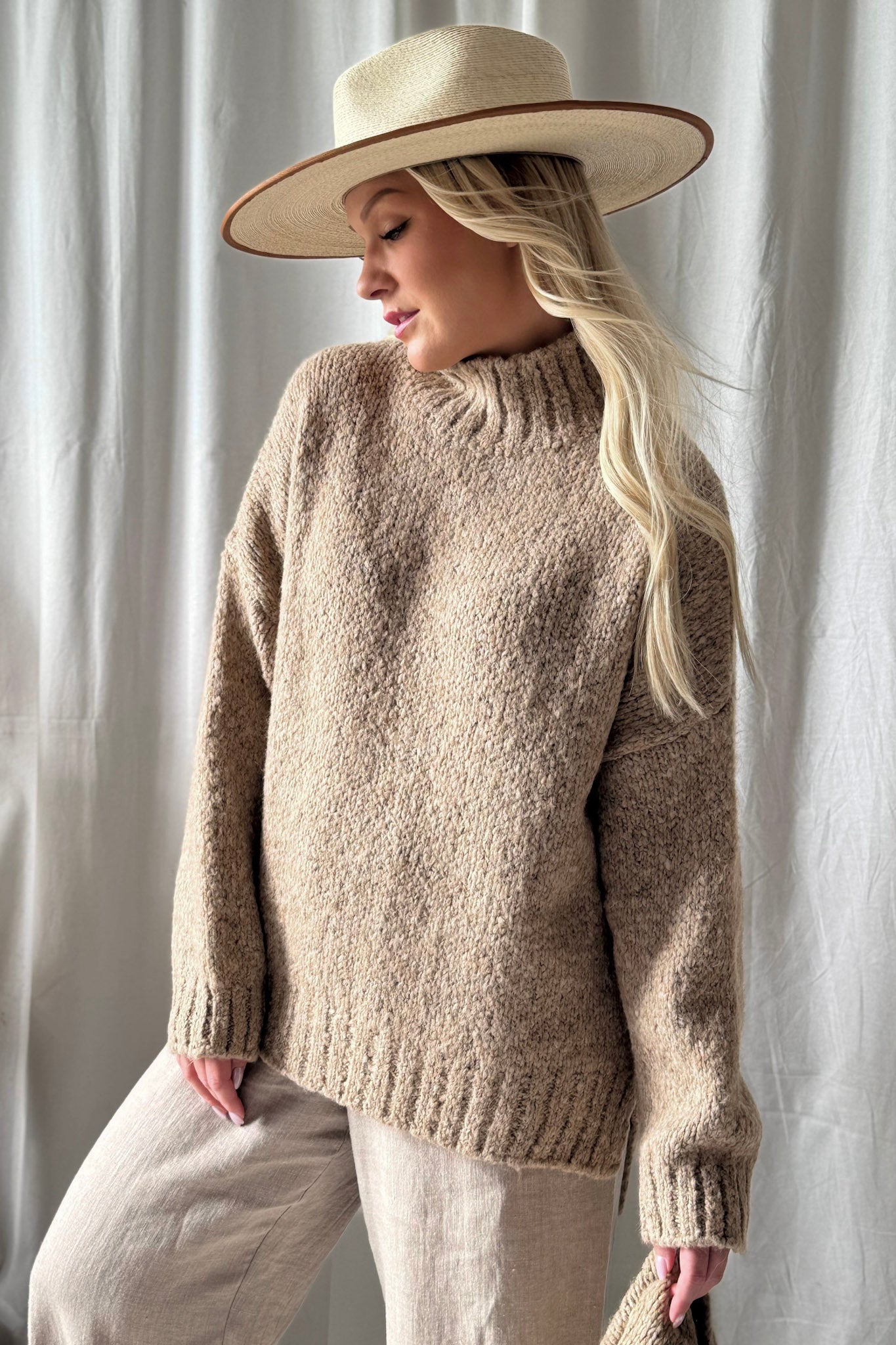 Klassinen ja ajaton neule korkealla kauluksella ja takaa pitenevällä helmalla. Hihoissa ja helmassa kevyt resori. Erittäin pehmeää neulosta ja täydellinen lisä viileisiin päiviin. Boucle-neuleet ovat materiaaliltaan helppohoitoisia ja ei kutisevia.