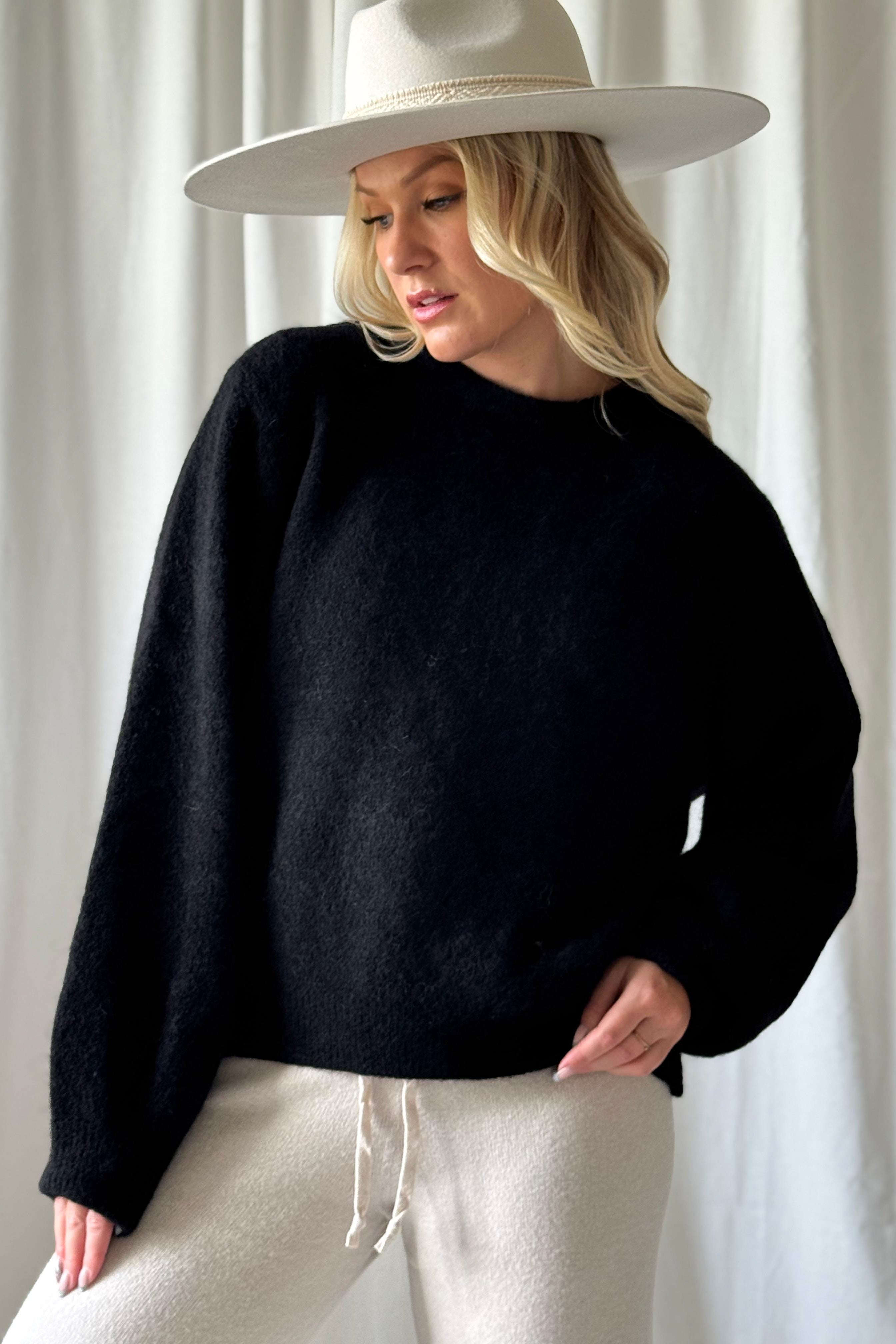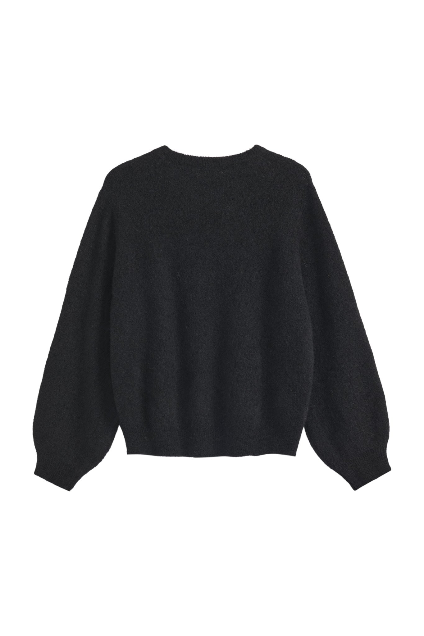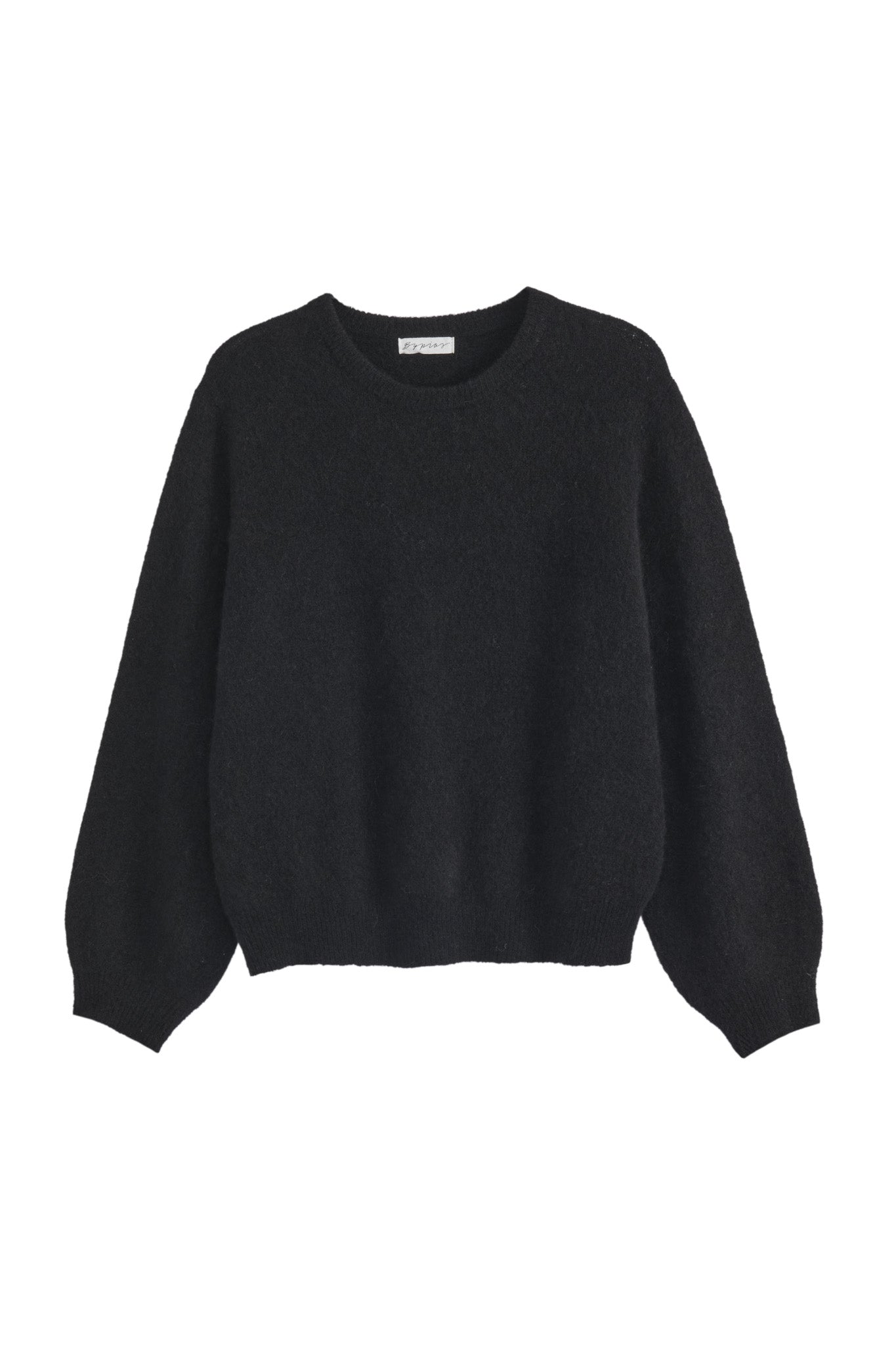 Ylellisen pehmeä neule, jossa on pyöreä pääntie ja kevyet resorit hihansuissa ja helmassa. Hihat ovat aavistuksen pussitetut.