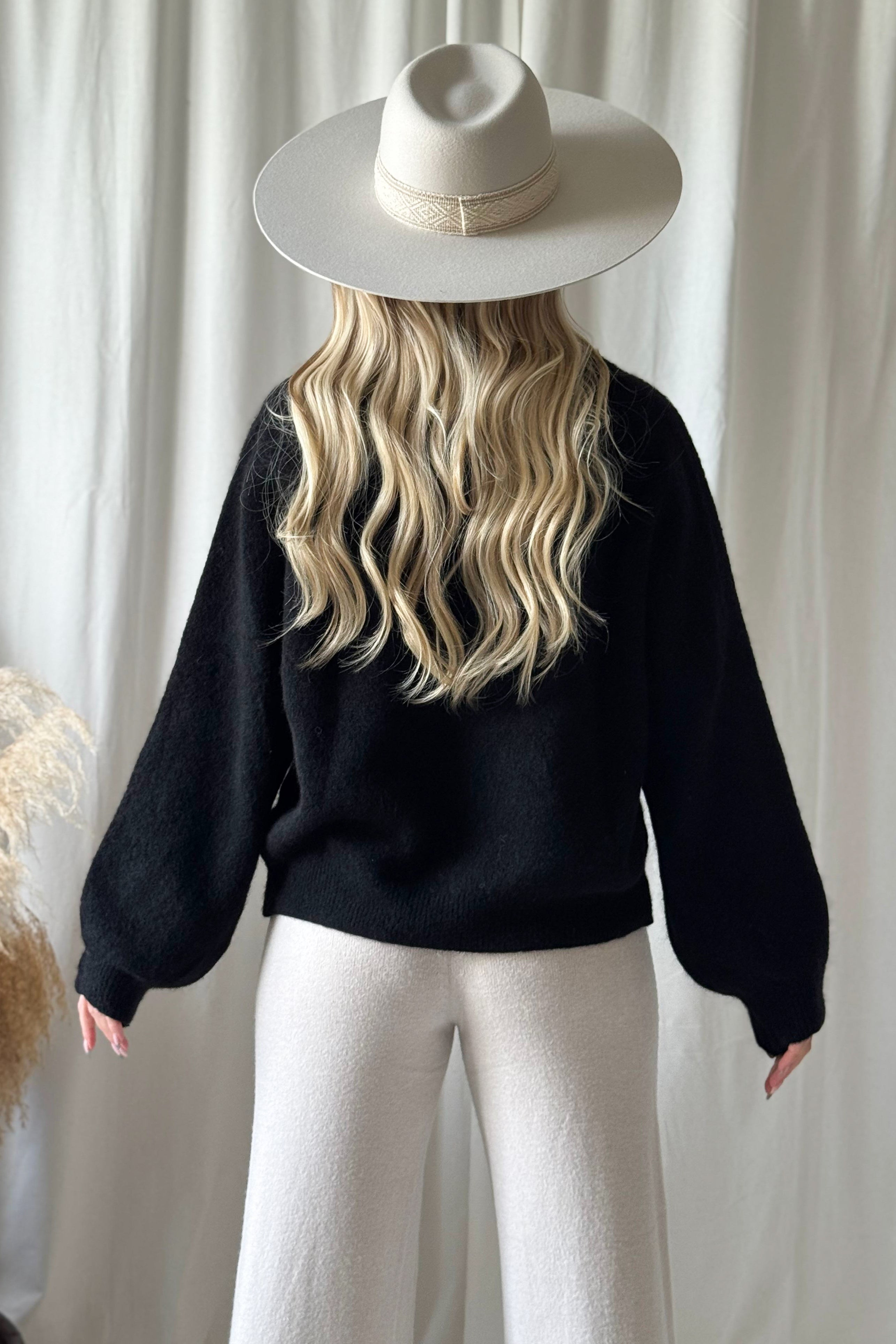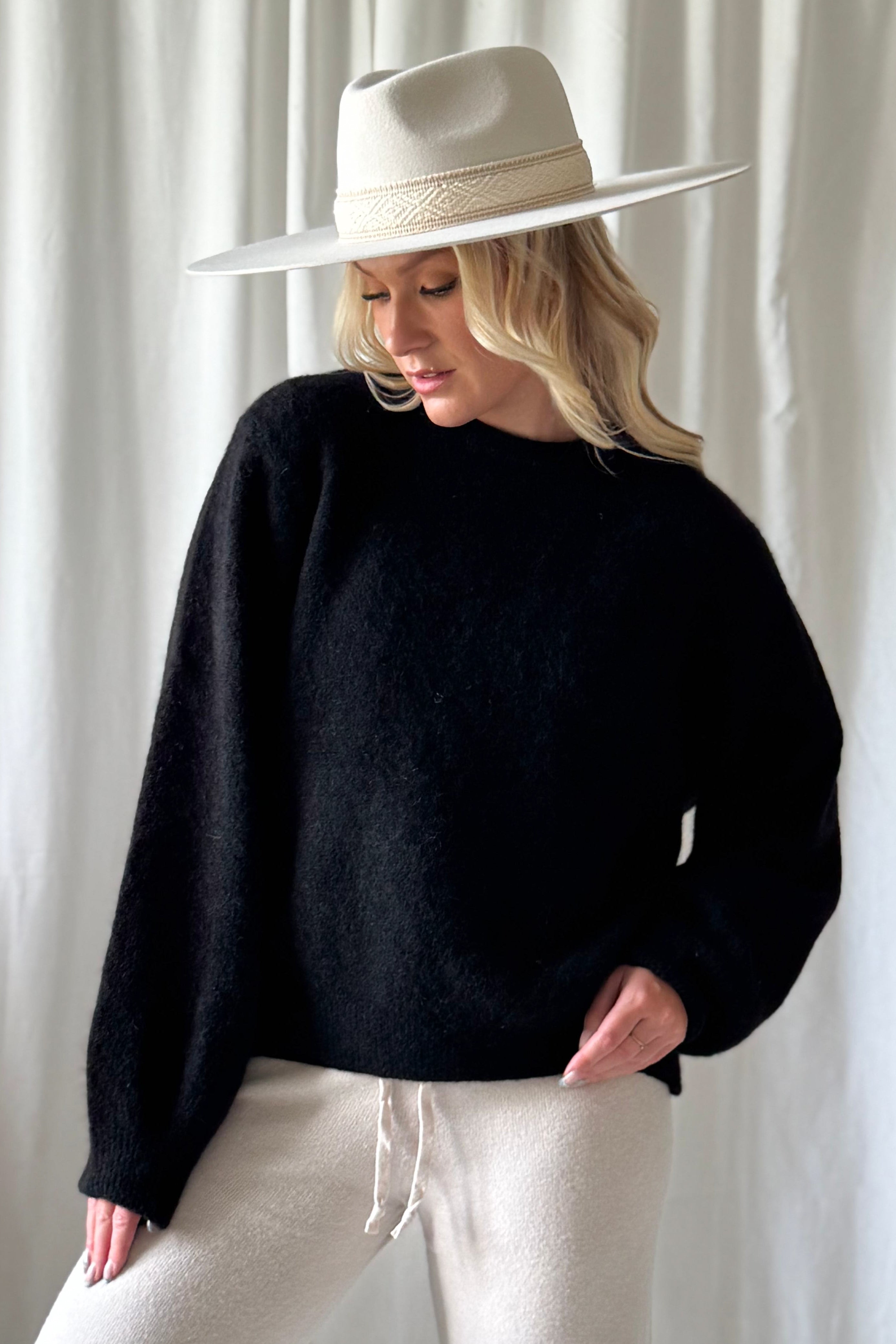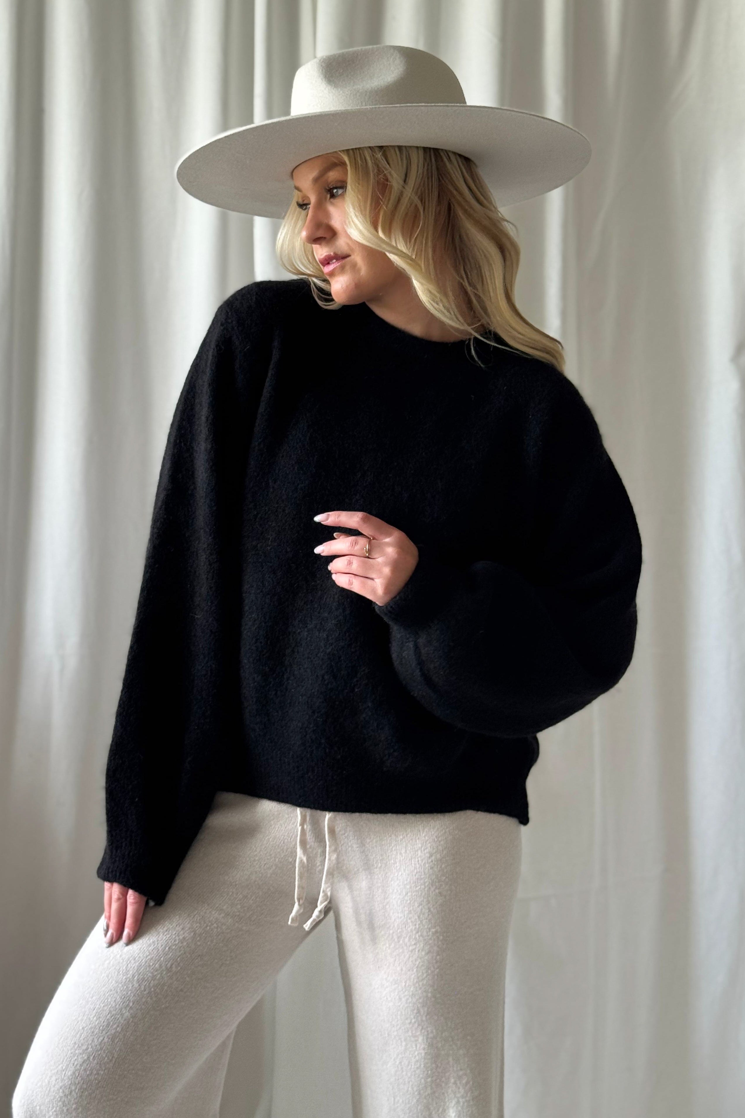 Ylellisen pehmeä neule, jossa on pyöreä pääntie ja kevyet resorit hihansuissa ja helmassa. Hihat ovat aavistuksen pussitetut.
