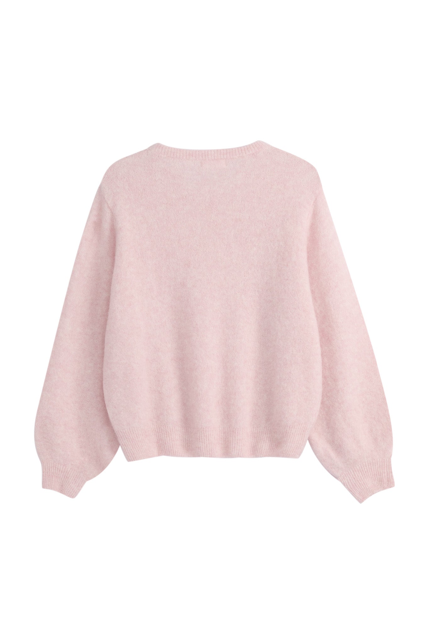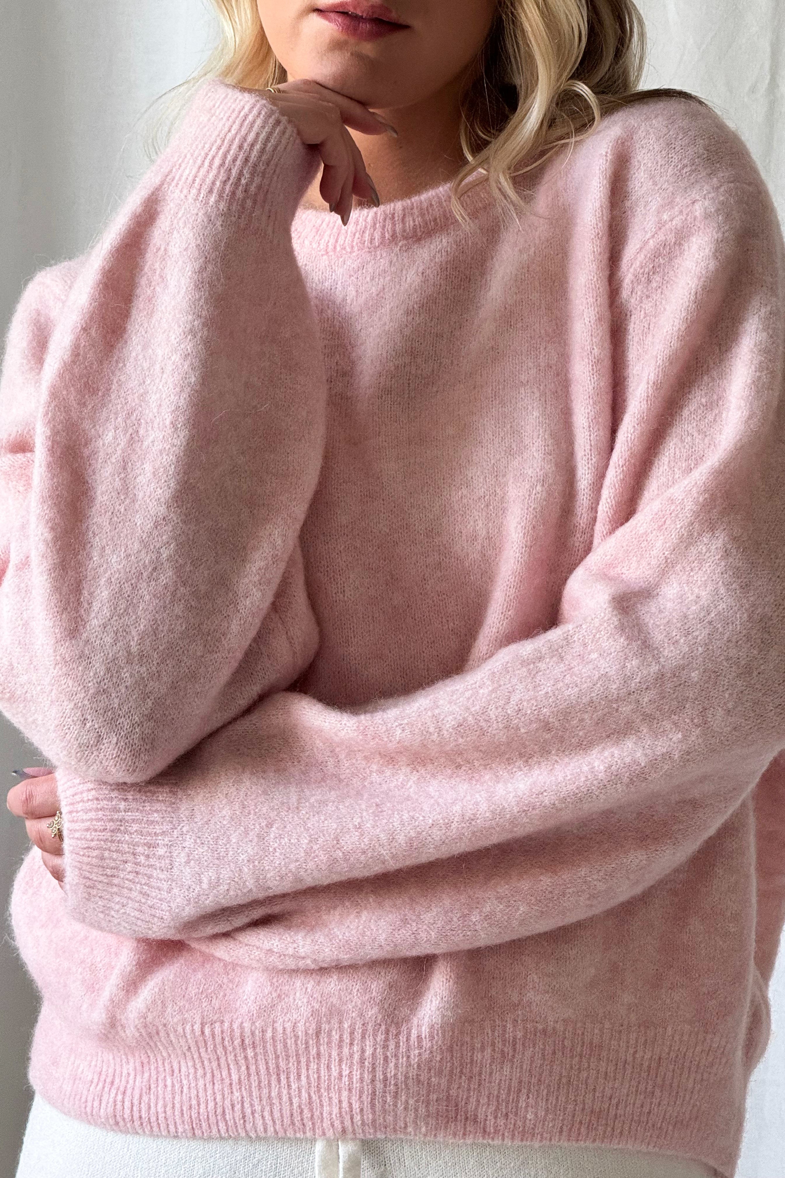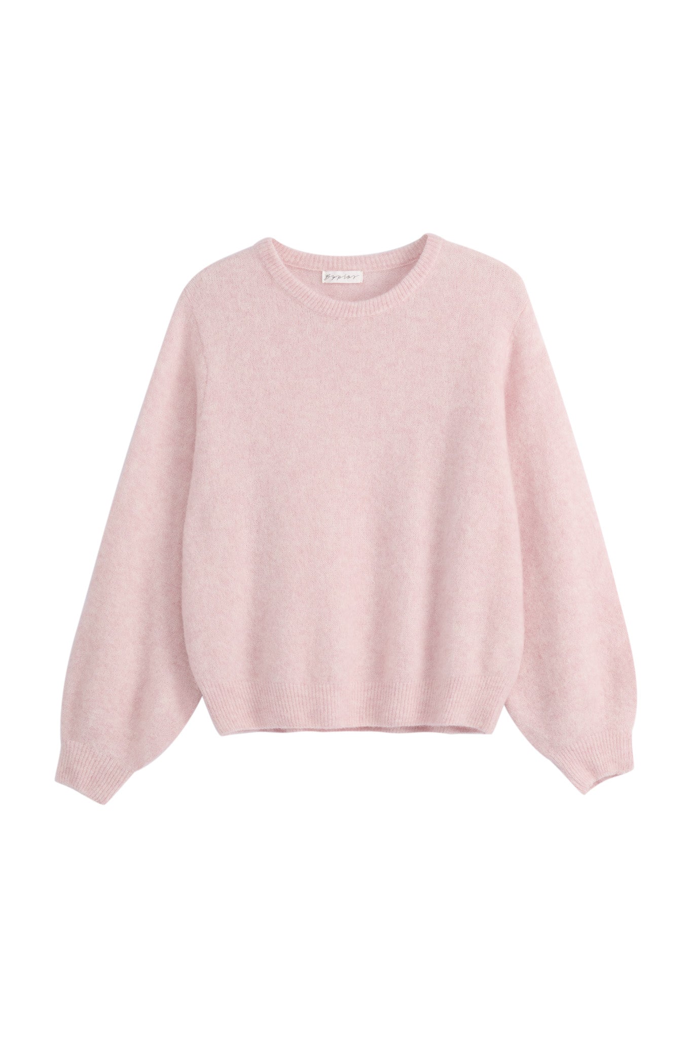 Ylellisen pehmeä neule, jossa on pyöreä pääntie ja kevyet resorit hihansuissa ja helmassa. Hihat ovat aavistuksen pussitetut.