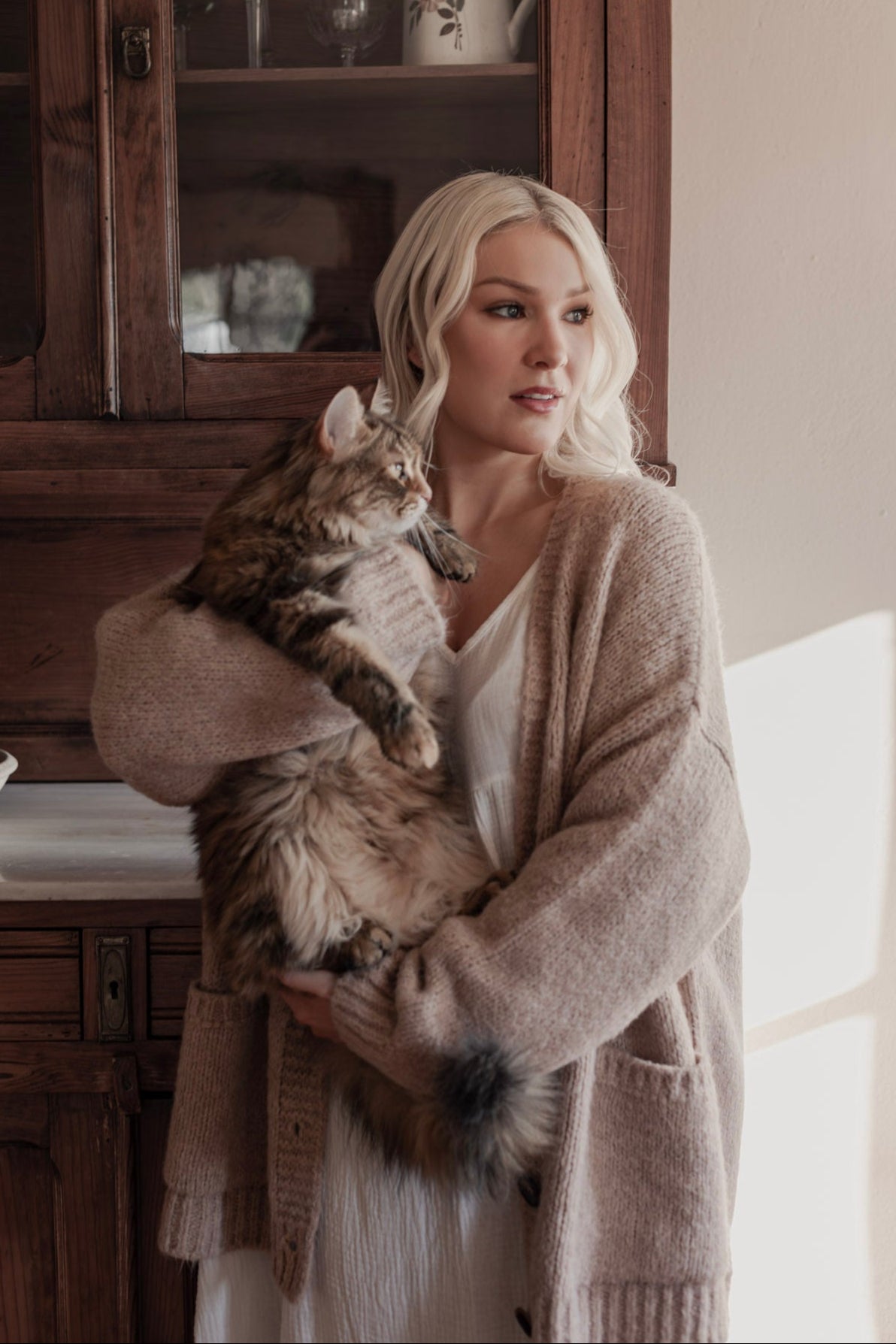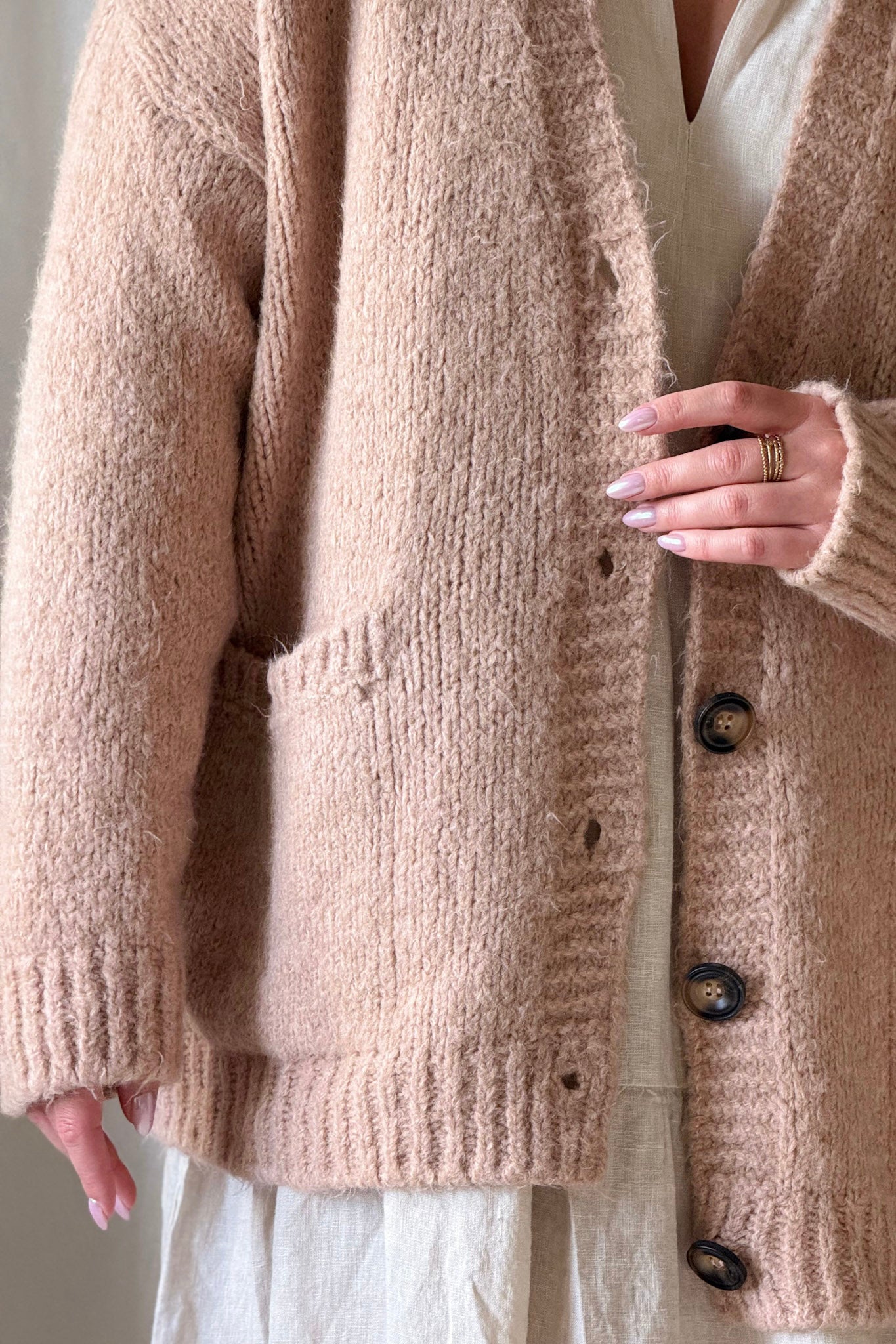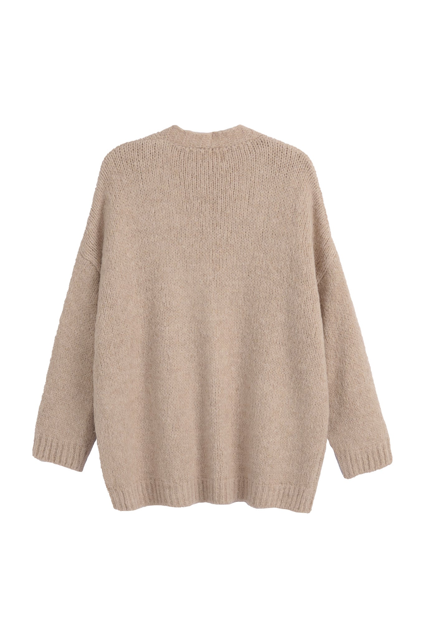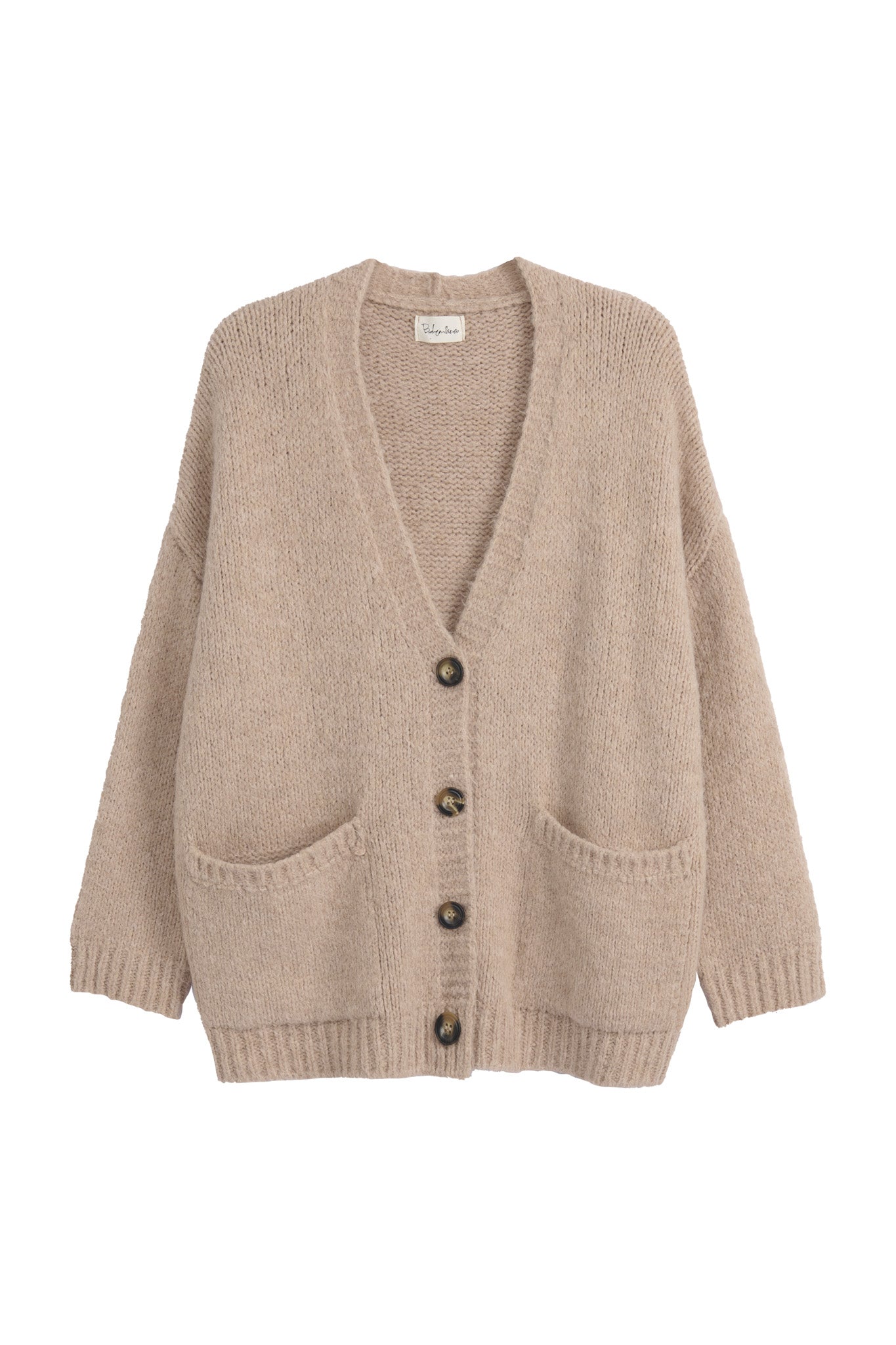 Pehmeä ja ihanan muhkea neuletakki jokapäiväiseen käyttöön. Edessä on kauniit suuret napit ja kätevät taskut. Hihoissa ja helmassa kevyt resori.