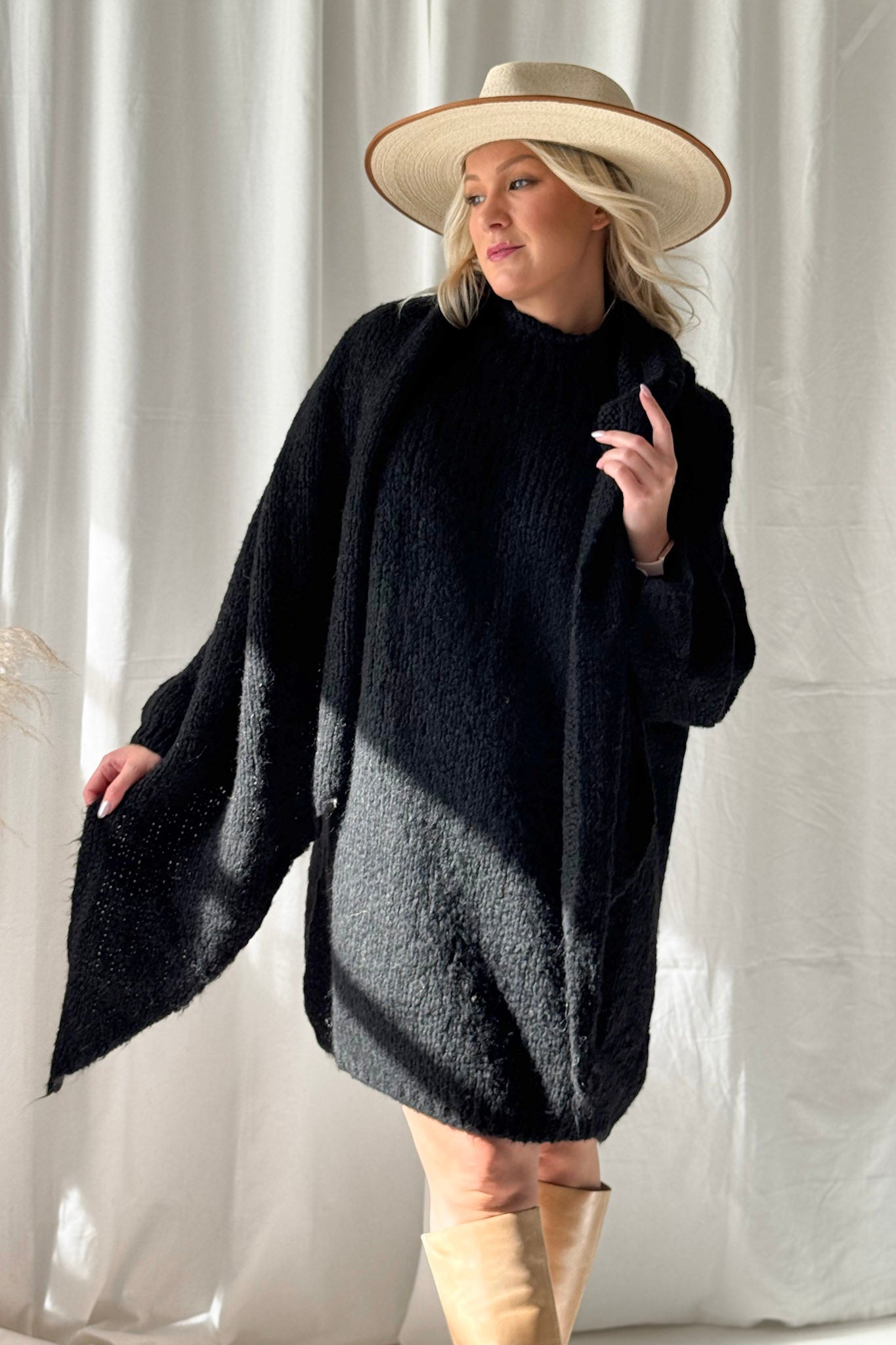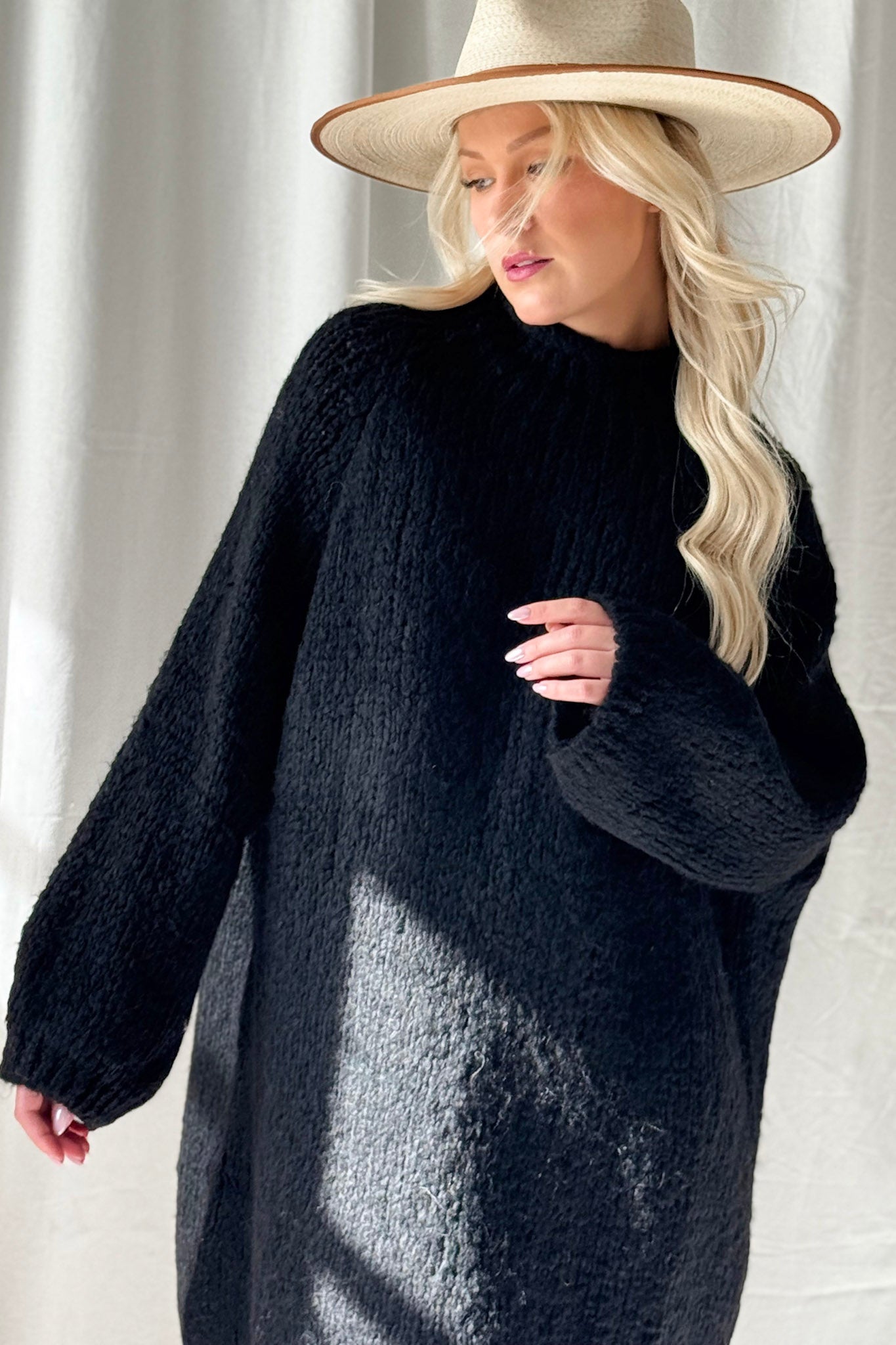 Bouckle-mallistomme unelmapehmeä, pitkähelmainen neule, jossa on kevyt resori kauluksessa, hihansuissa sekä helmassa. Muhkea ja lämmin neule on täydellinen viileisiin päiviin esimerkiksi bootsien kanssa yhdistettynä. Neuleen pituuden ansiosta sitä voi käyttää tunikana tai jopa mekkona. Bouckle-neuleet ovat materiaaliltaan helppohoitoisia, eivätkä kutita ihoa.
