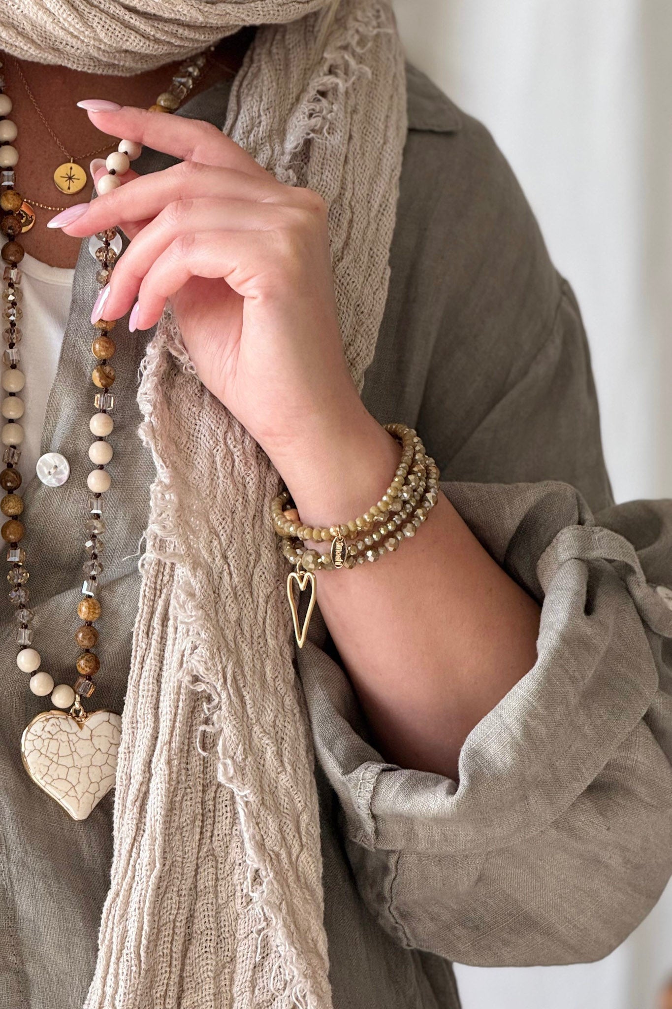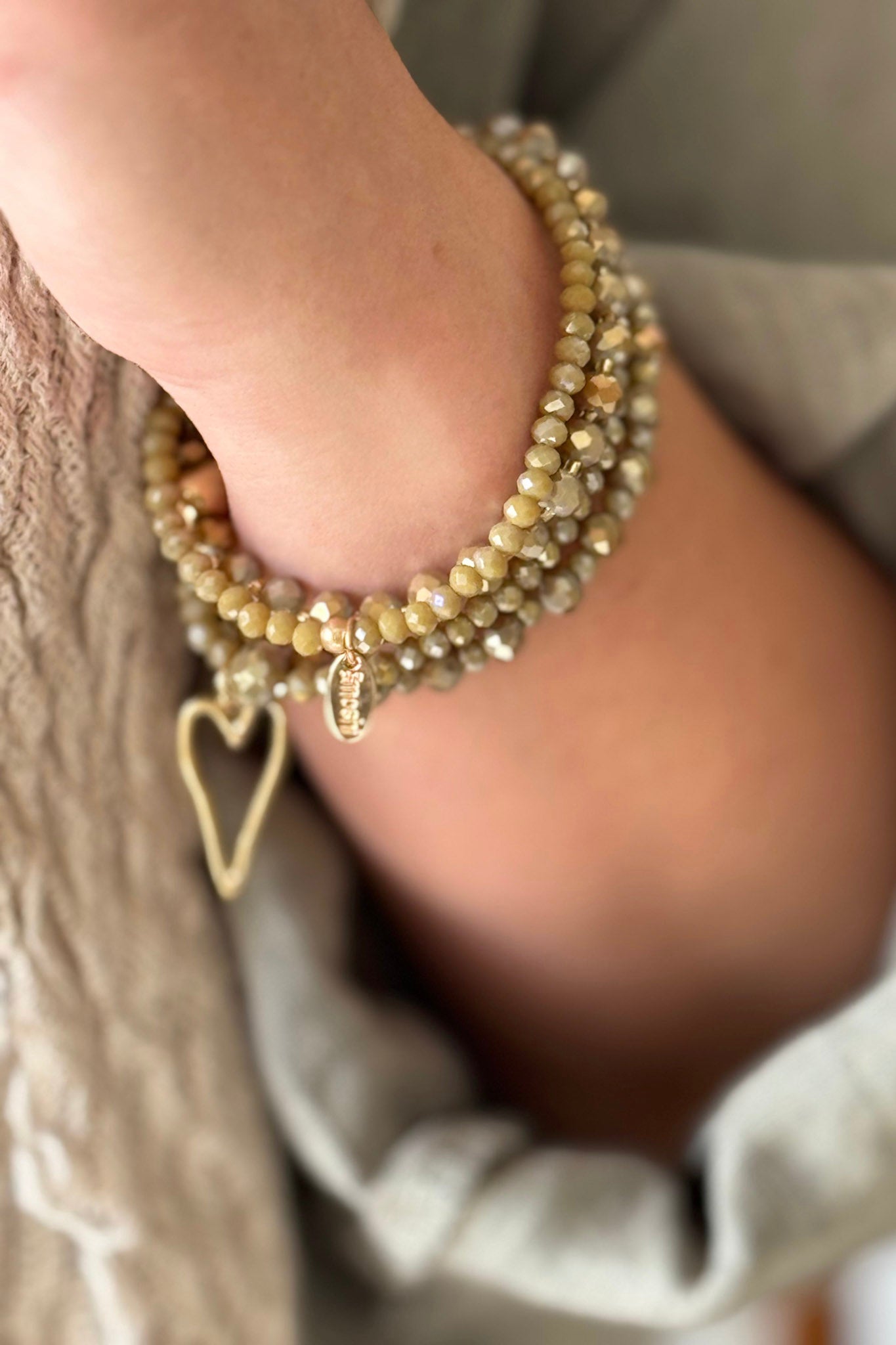 Neljän korun yhdistelmä on kimaltava lisäys asuusi. Ohuet korut pitävät rannekorun kevyenä. Rannekorussa on kaunis sydänriipus.