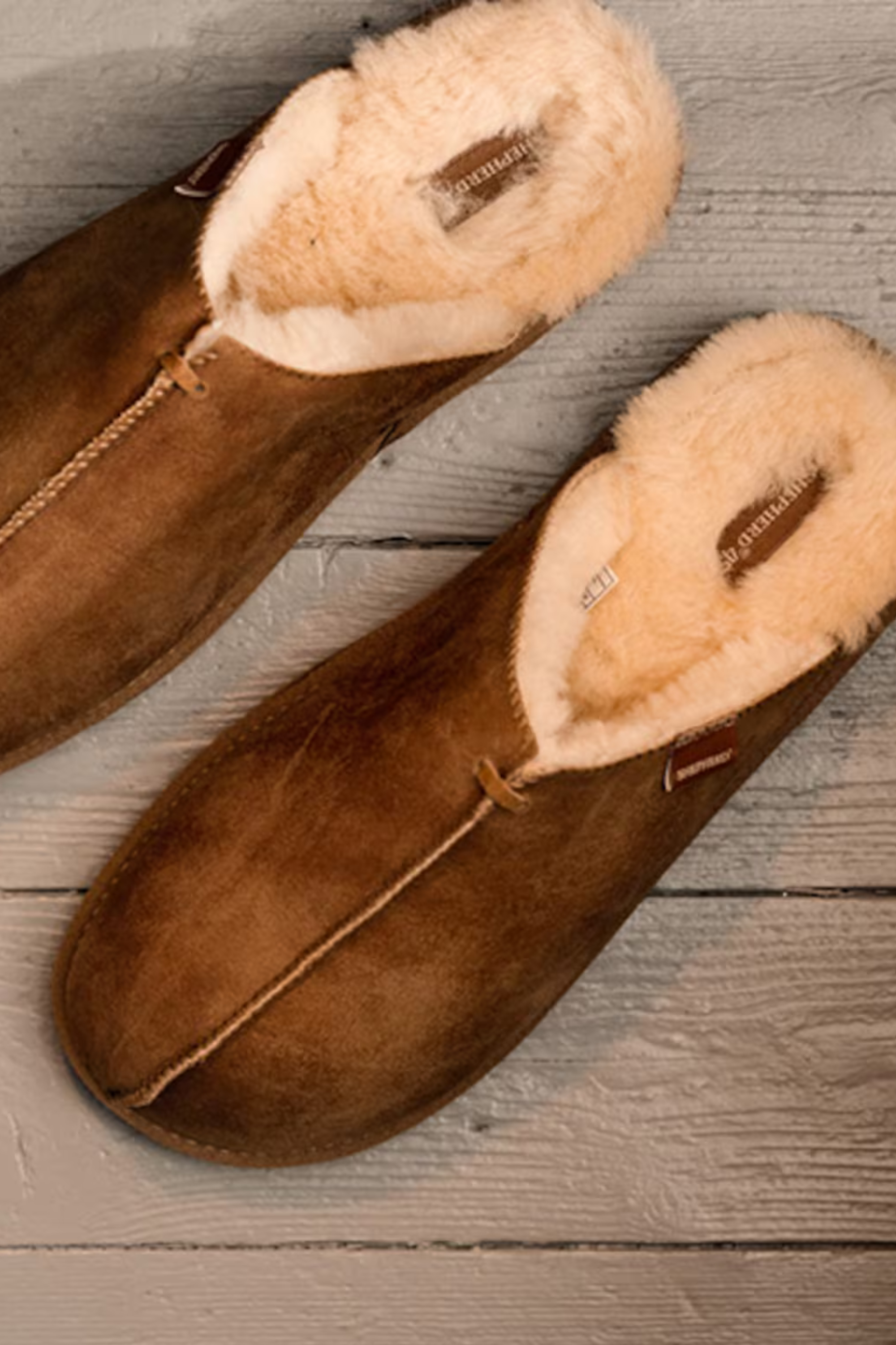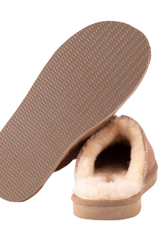 Shepherd of Swedenin lämpimät miesten vuoratut lampaannahkatossut. Tossut ovat perinteiset slip-in-malliset, niissä on pieni halkio edessä sekä koristeellinen päällisauma. Pohjaa kiertää tekstiilistä valmistettu reunanauha.
