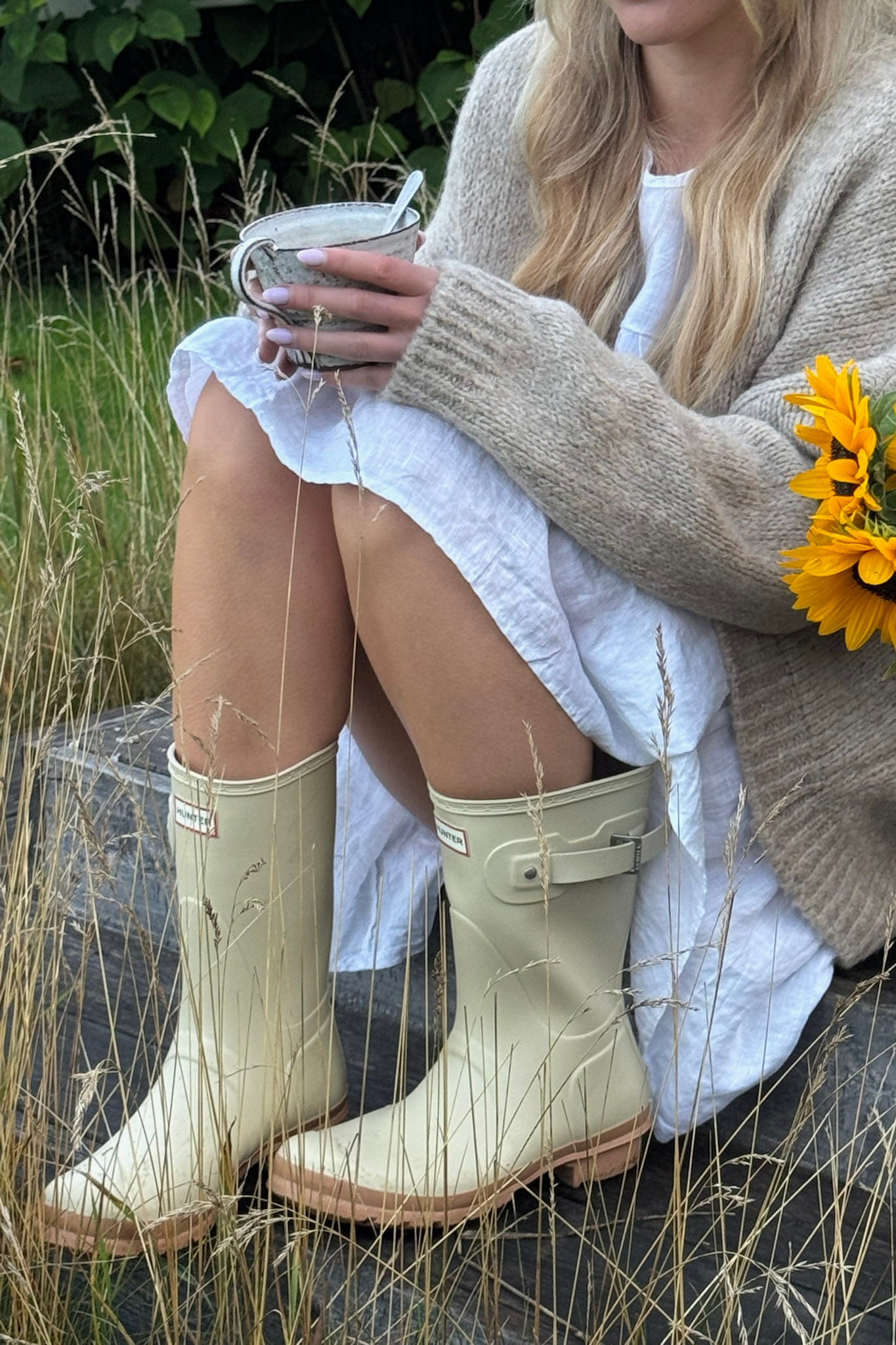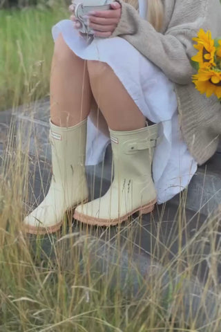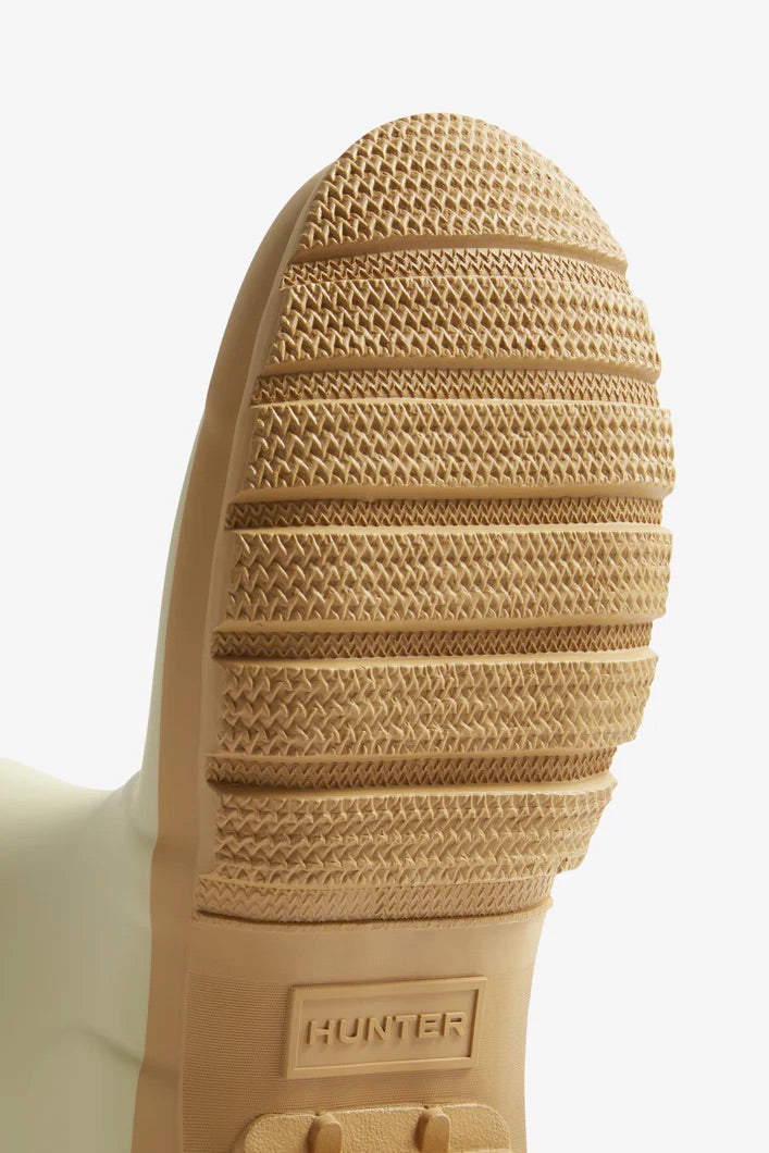 Tämä naisten Wellington-saapas on täydellinen märkiin sääolosuhteisiin ja se on lyhennetty versio ikonisesta Hunter Original Tall -saappaasta. Jokainen saapas on valmistettu luonnonkumista ja käsintehty kolmen päivän aikana, ennen kuin se vulkanoidaan erinomaisen suojan takaamiseksi. Hunter Original -pintakuvioinnilla ja mukavalla polyesterivuorauksella varustettu kaksivärinen saapas on välttämätön sadepäiville.