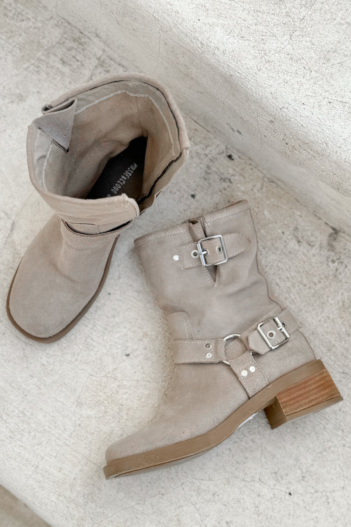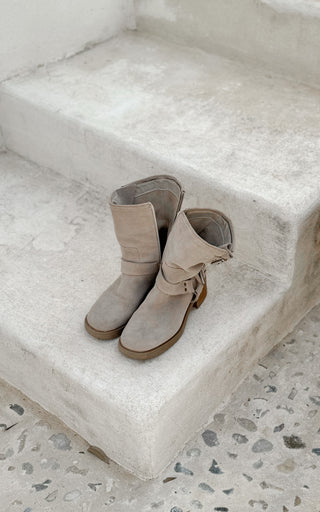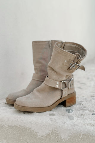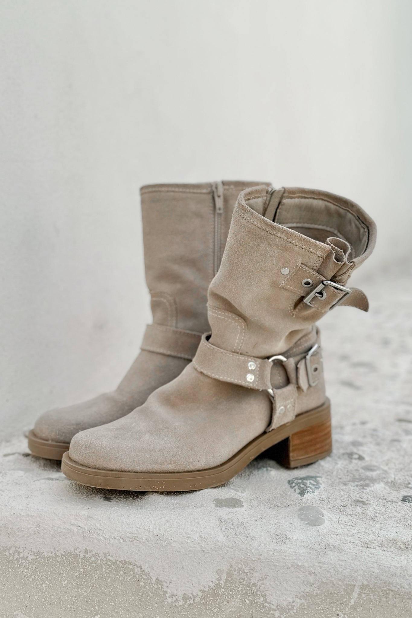 Näyttävät ja laadukkaat Musse & Cloud -mokkanahkasaappaat tuovat tyyliä ja asennetta asukokonaisuuksiin. Pehmeä hiekan sävyinen mokkanahka antaa saappaille rouhean ja mageen ilmeen, joka sopii täydellisesti esimerkiksi farkkujen ja mekkojen kanssa. Sisäsyrjän vetoketju tekee pukemisesta ja riisumisesta helppoa, ja normaali lesti varmistaa miellyttävän istuvuuden.