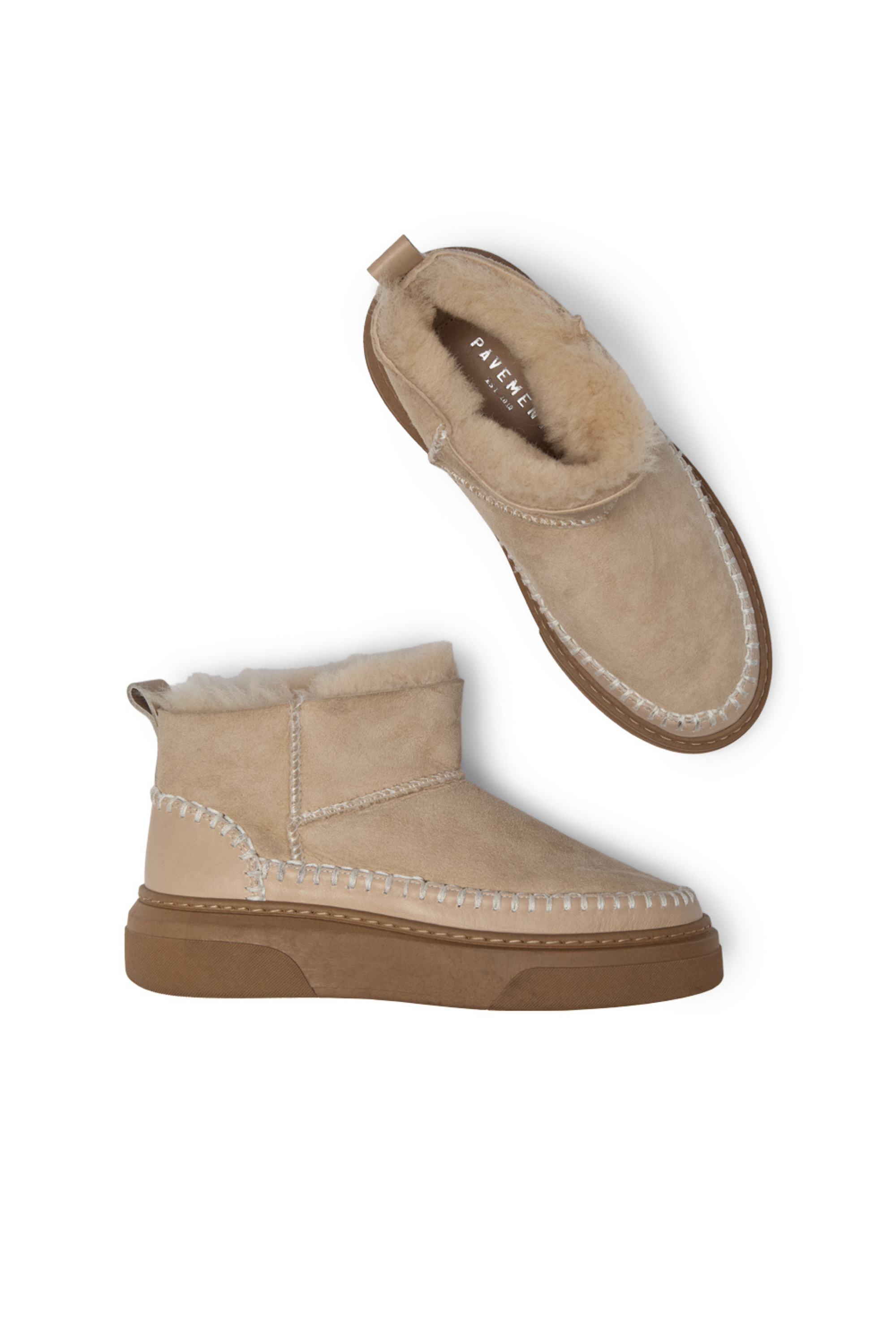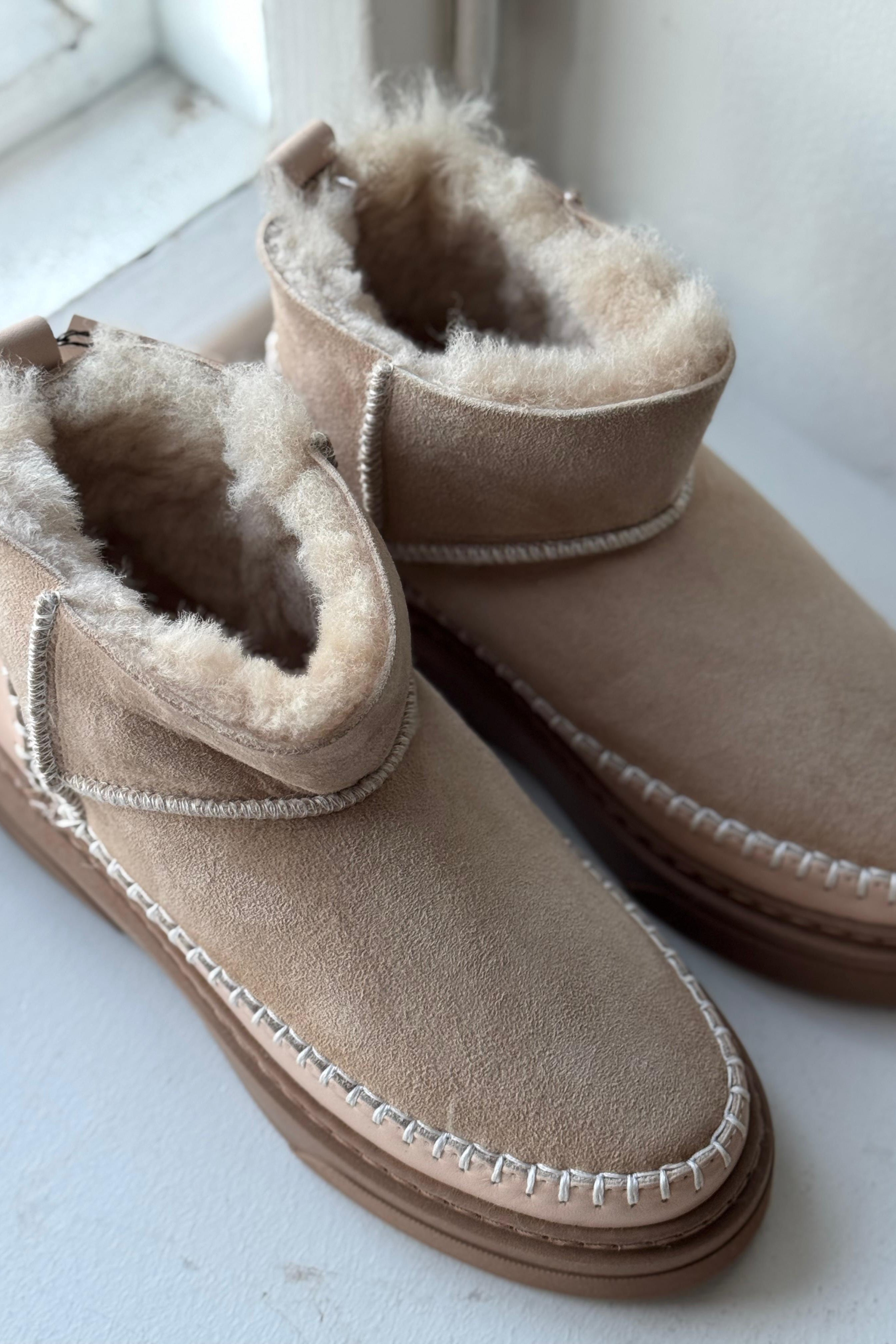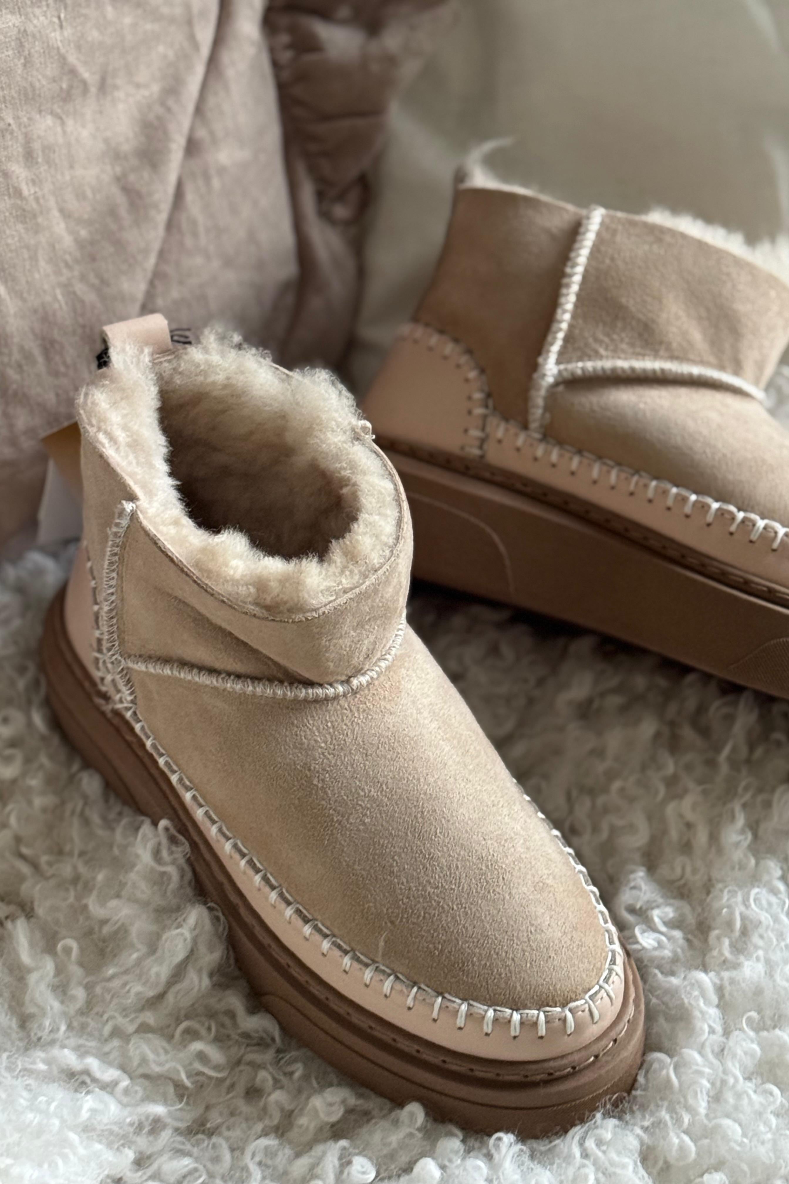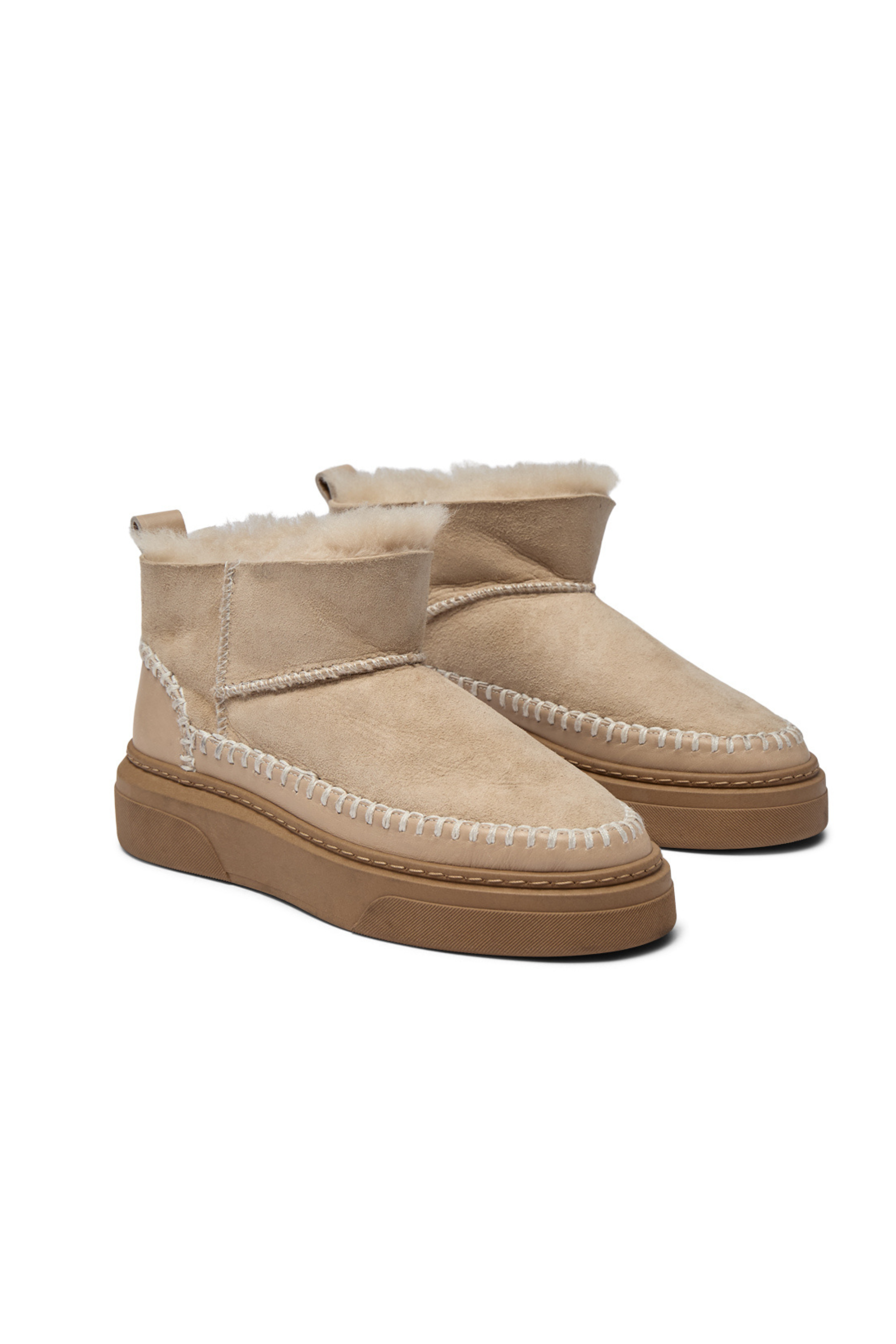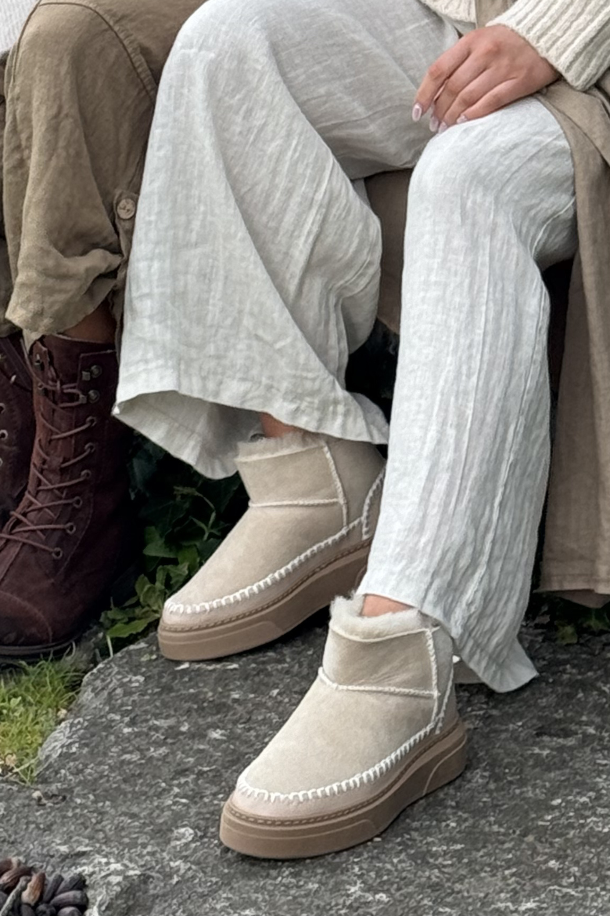 Matalat nahkasaappaat kaksipuolista lampaannahkaa pitävät jalkasi lämpimänä! Tyylikäs saapas on pehmeä ja tyylikäs lisä asuusi. Tukeva kumipohja, vuori muhkeaa lampaanvillaa.