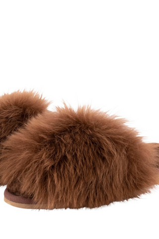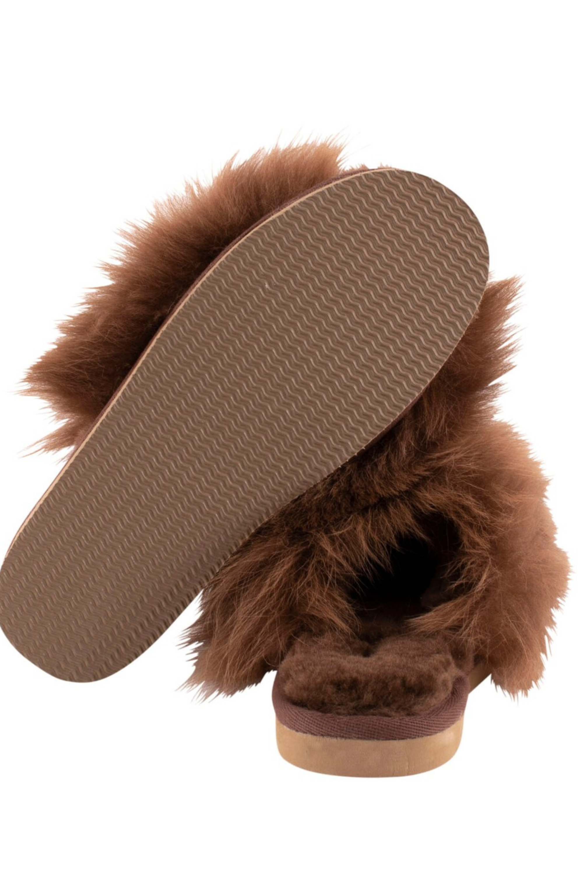 Shepherd of Swedenin mielettömän muhkeat ja lämpimät Tessan tohvelit 100% lampaannahkaa. Tossuissa leveä kaulus pitkäkarvaisesta lampaannahasta.