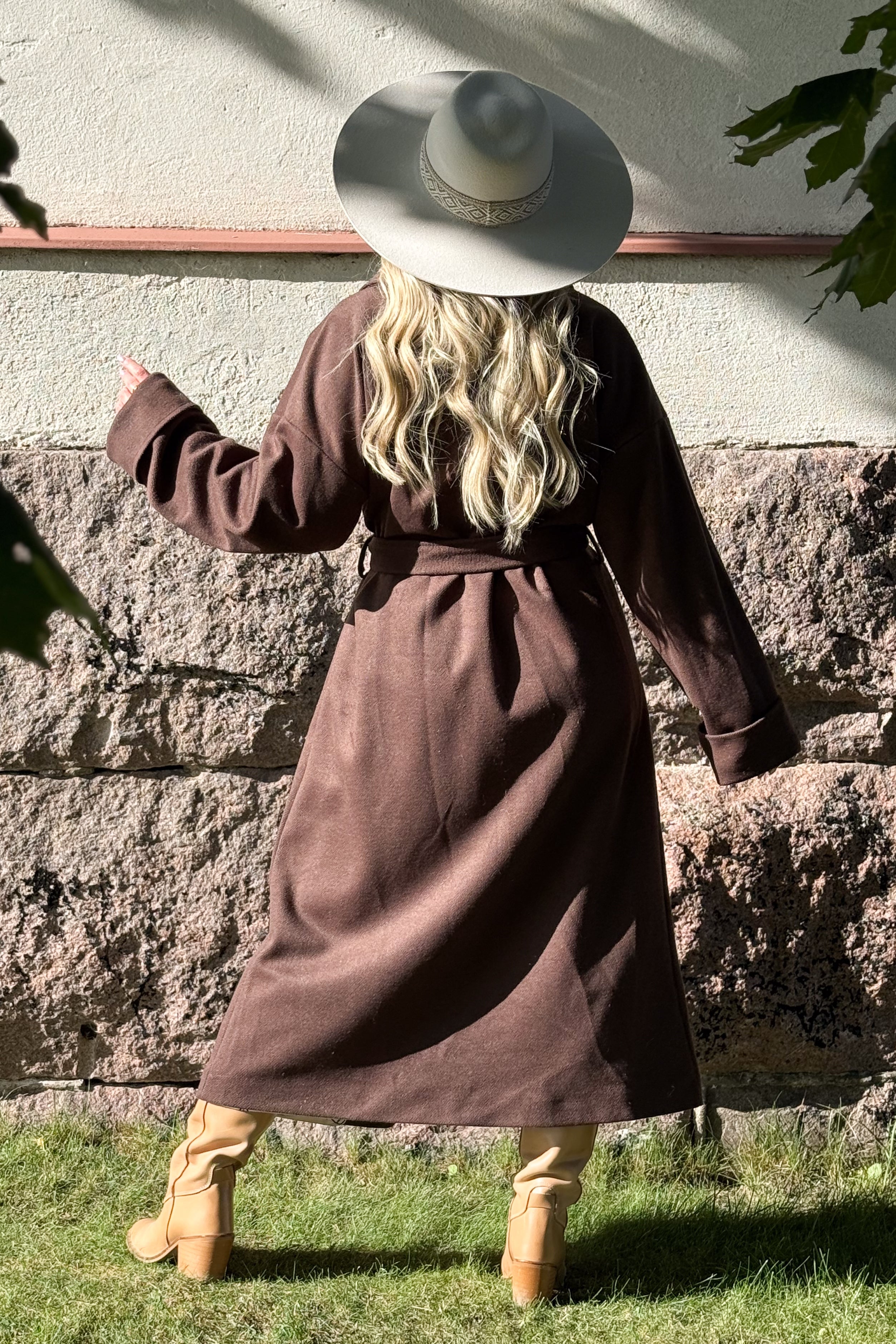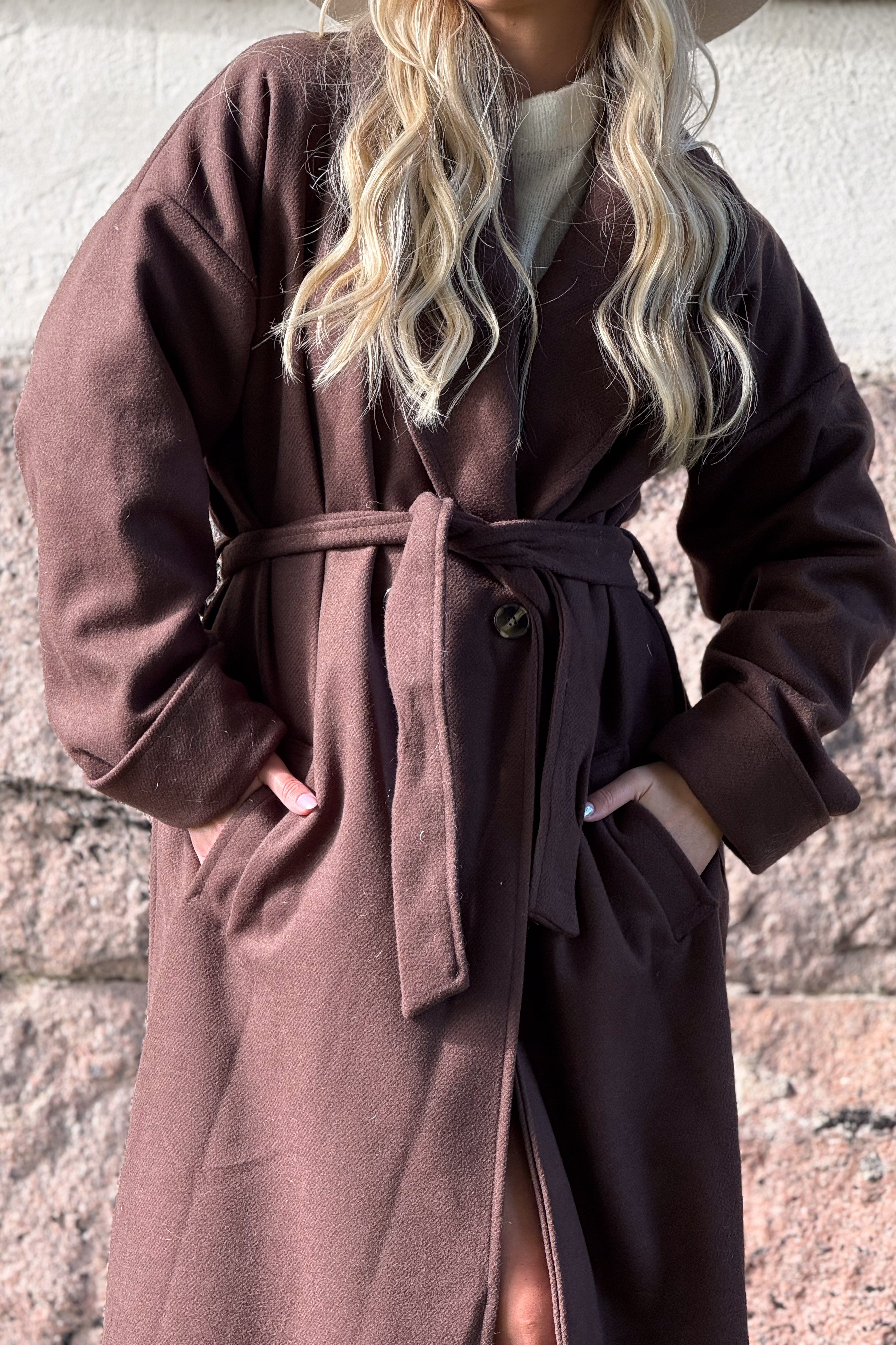 Elegantti, shaalikauluksinen takki on malliltaan klassikko. Käy XS-XL kokoiselle. Materiaali pehmeää, ja sileää, täydellinen takki vilpoisiin keleihin mutta ei pakkasille. Hihat saa ihanasti käännettyä kerran ja kauluksen viikkaus on kauniin leveä. Takissa on vyö ja vuoressa Bohemiana logo.
