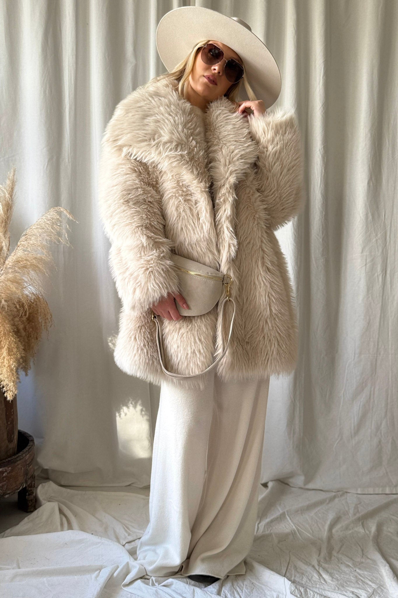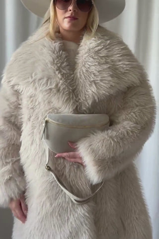 Huikean ylellisenpehmoista karvaa tekoturkistakki, myös pepunpeittävänä midi-pituisena. Leveät kaulukset tuovat takkiin asennetta ja lämmittävät kaulaa. Edessä nepparikiinnitys  ja sisävuori. Hartoissa kivasti tilaa. Tekoturkis on silkinpehmeää, ylellistä eikä yhtään karheutta.