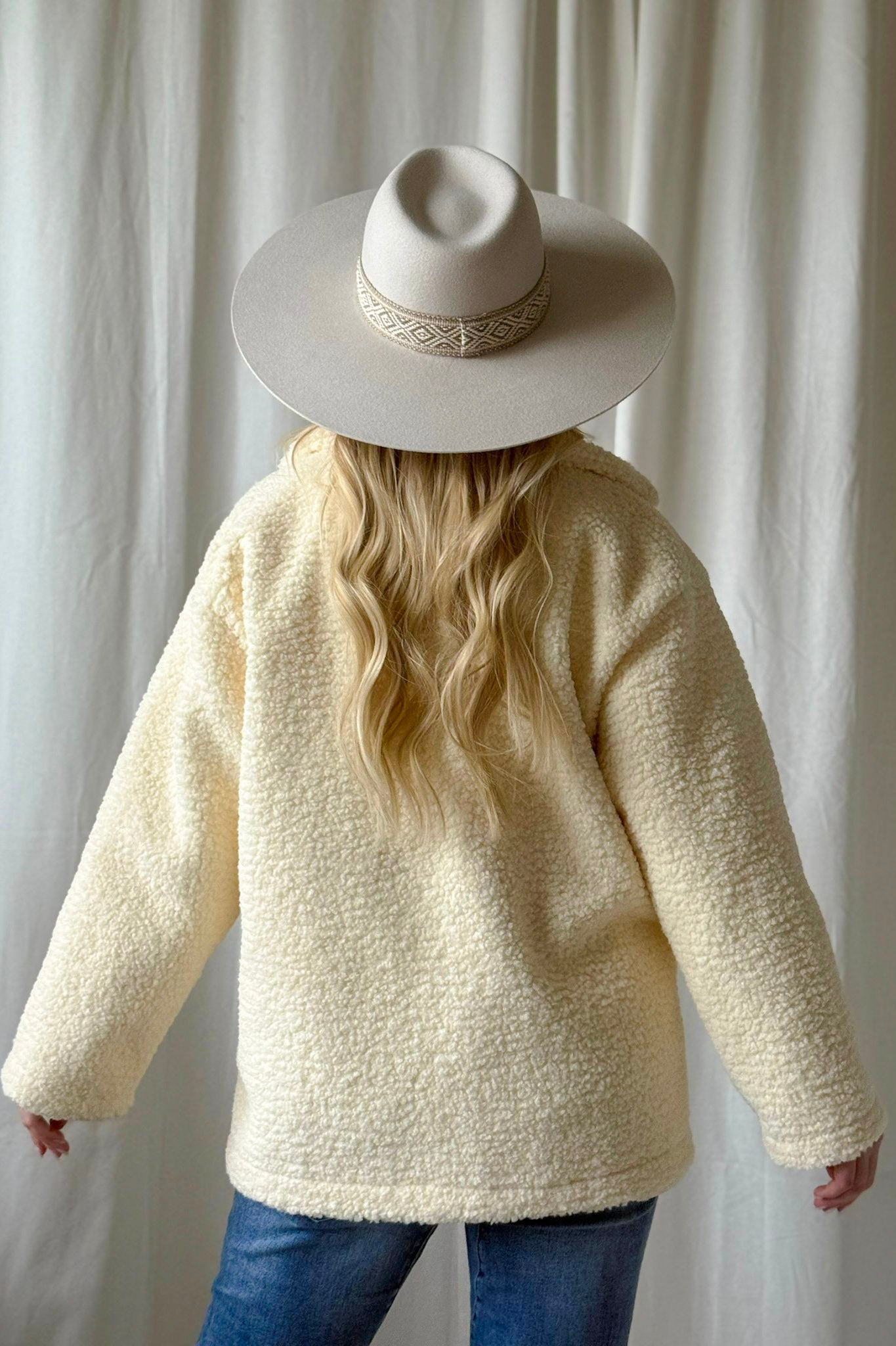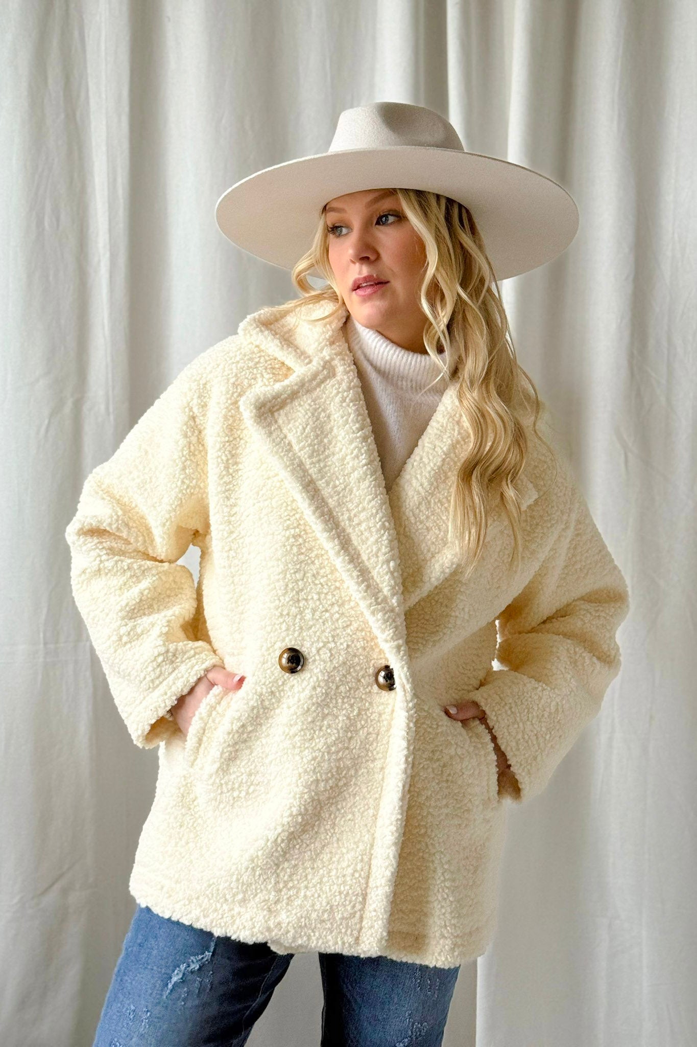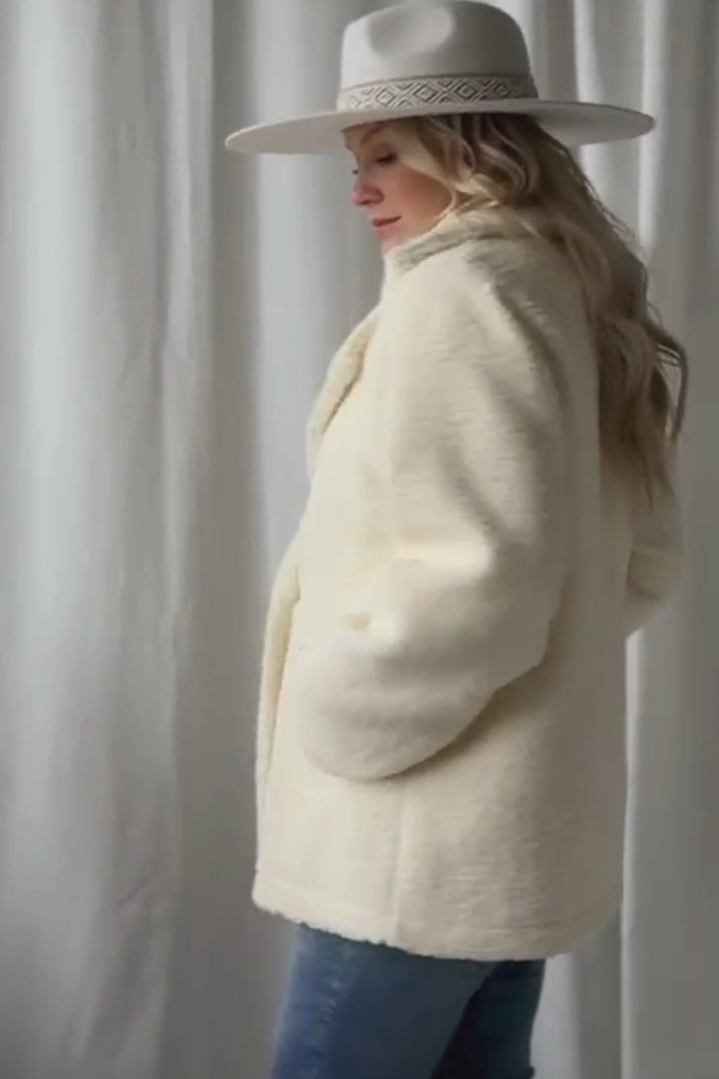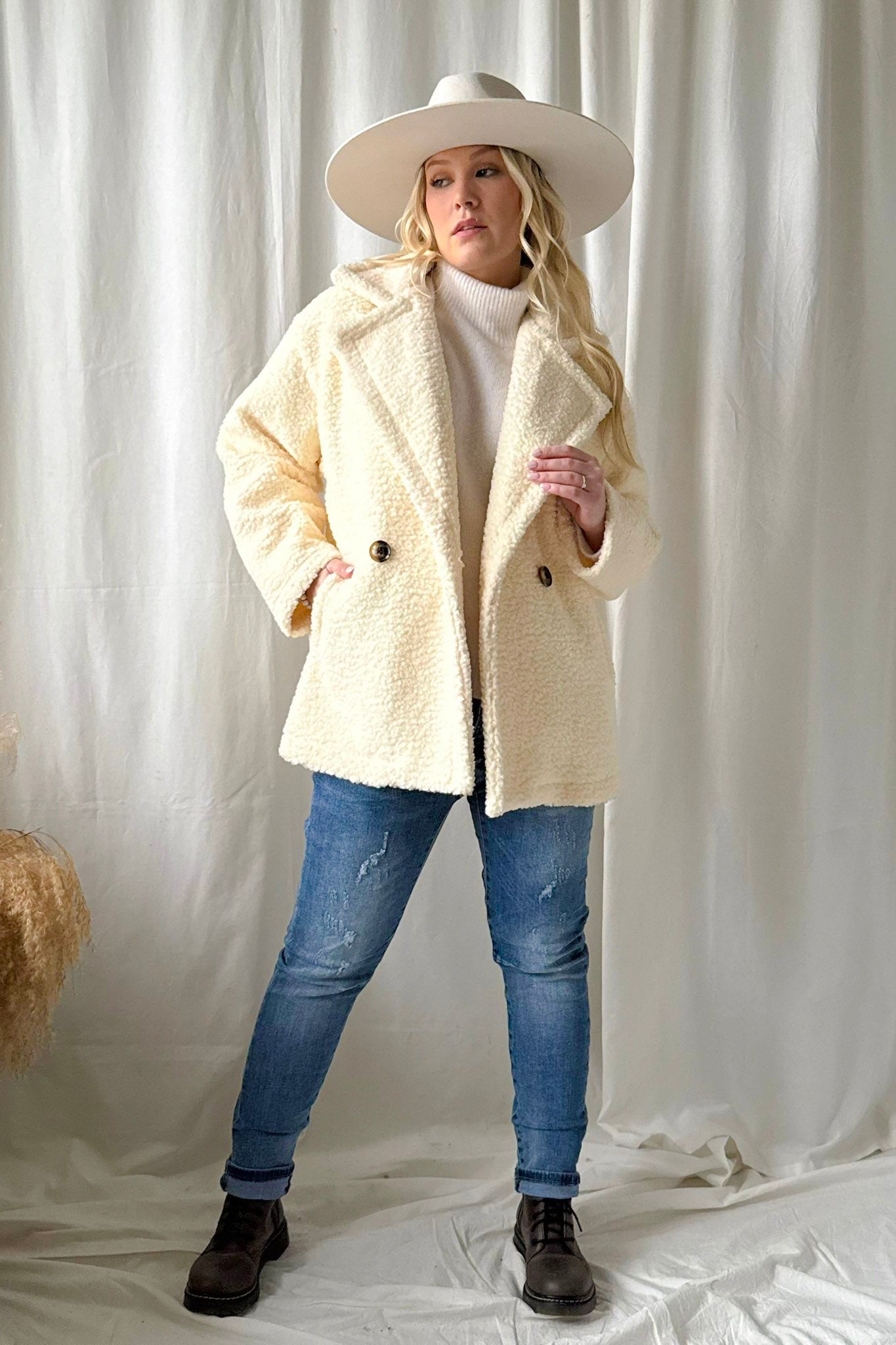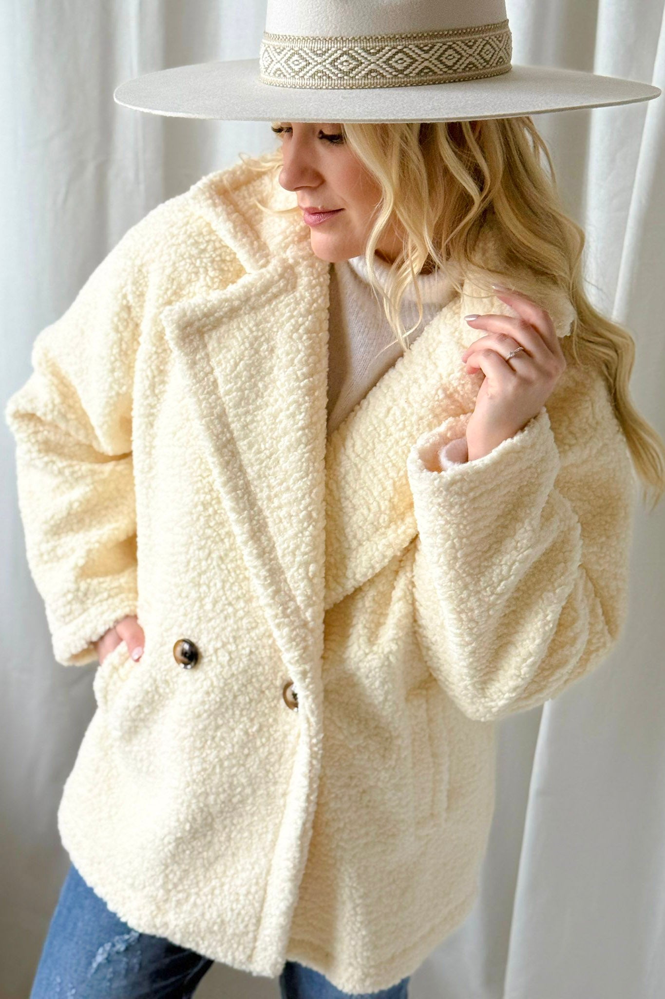 Pehmeä ja muhkea Teddy takki lämmittää ja näyttää tyylikkäältä. Takissa on taskut ja klassinen kääntökaulus. Takissa on kaksi nappia rivissä, joista yksi on kiinnitystä varten ja toinen on koriste. Takissa on tekstiilinahkamainen sisäpuoli ilman lisävuorta.