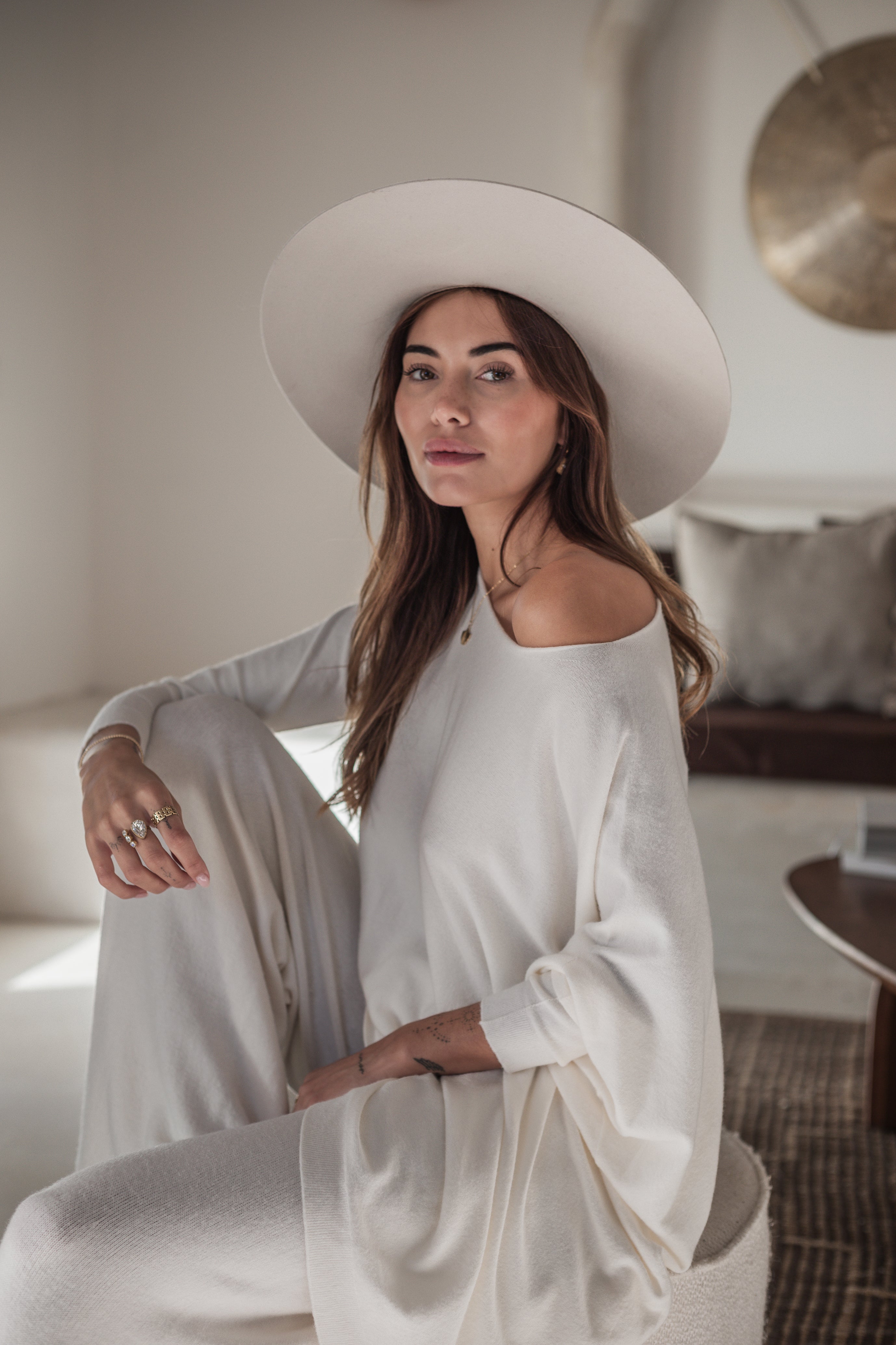 Huikean ylellinen, joustava neule jossa leikkauksessa epäsymmetrinen helma. Voit pukea off shoulderiksi tai laskea helman vyötäröltä alas tunikaksi. Hihoissa ja helmassa kevyet resorit. Koko hienouden kruunaa erityinen viskoosisekoite-neuloksen materiaali.