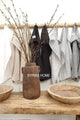 Painavaa, erittäin pehmoiseksi pestyä pellavaa. Lenkki ripustusta varten.