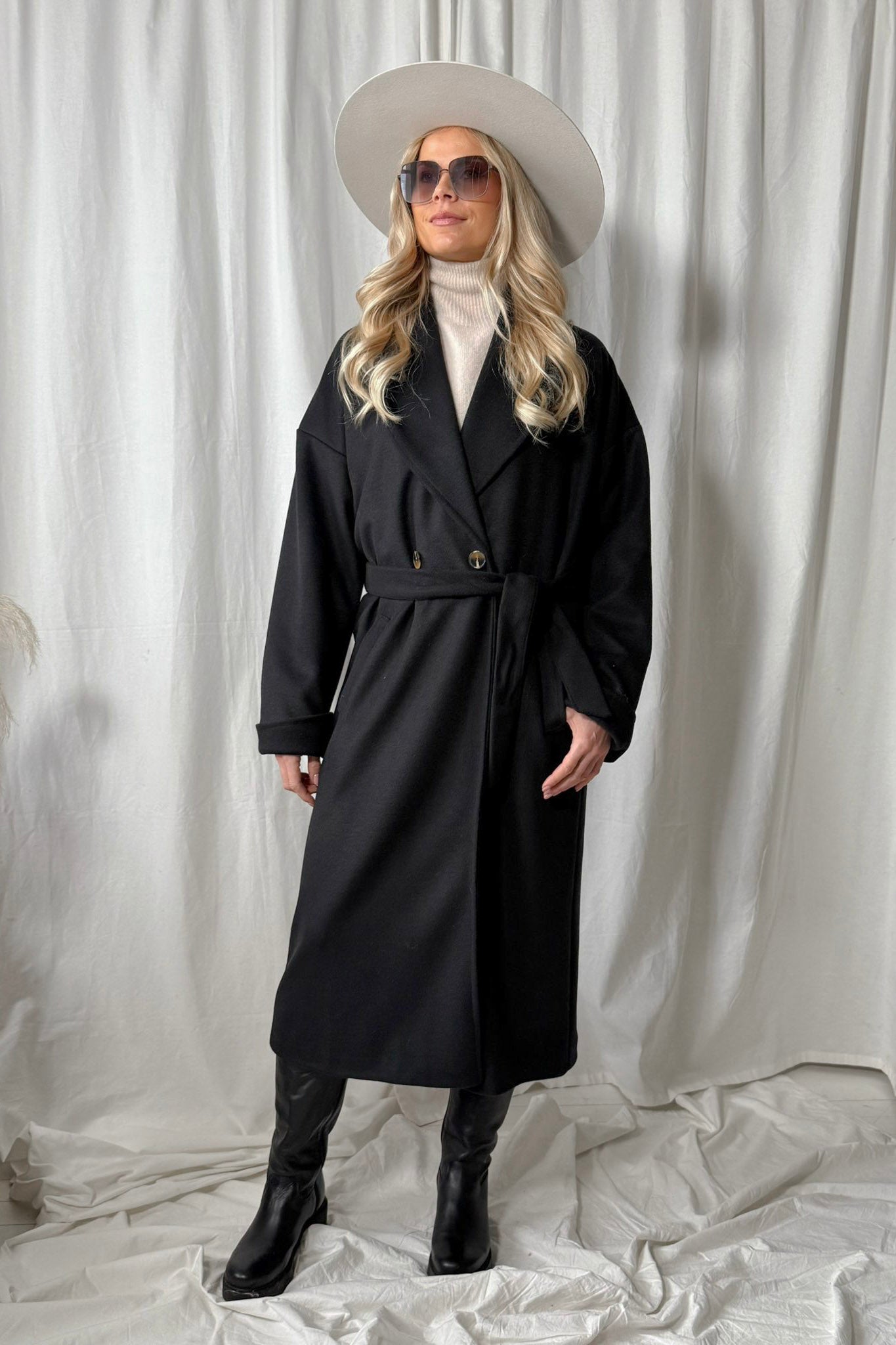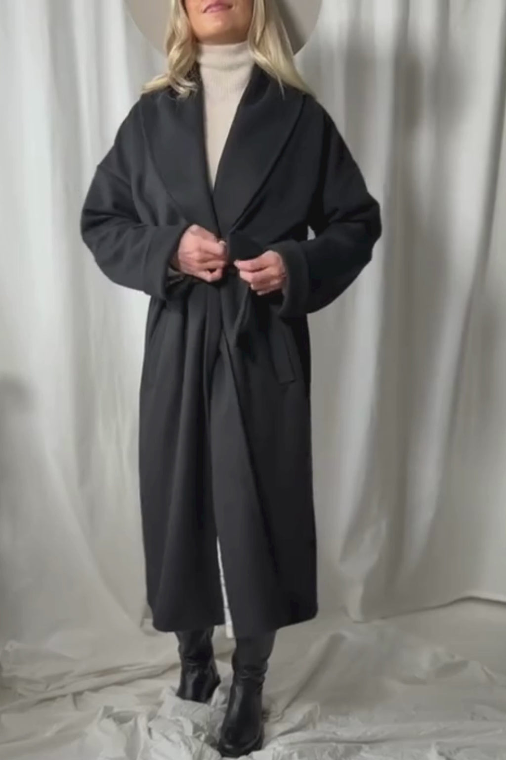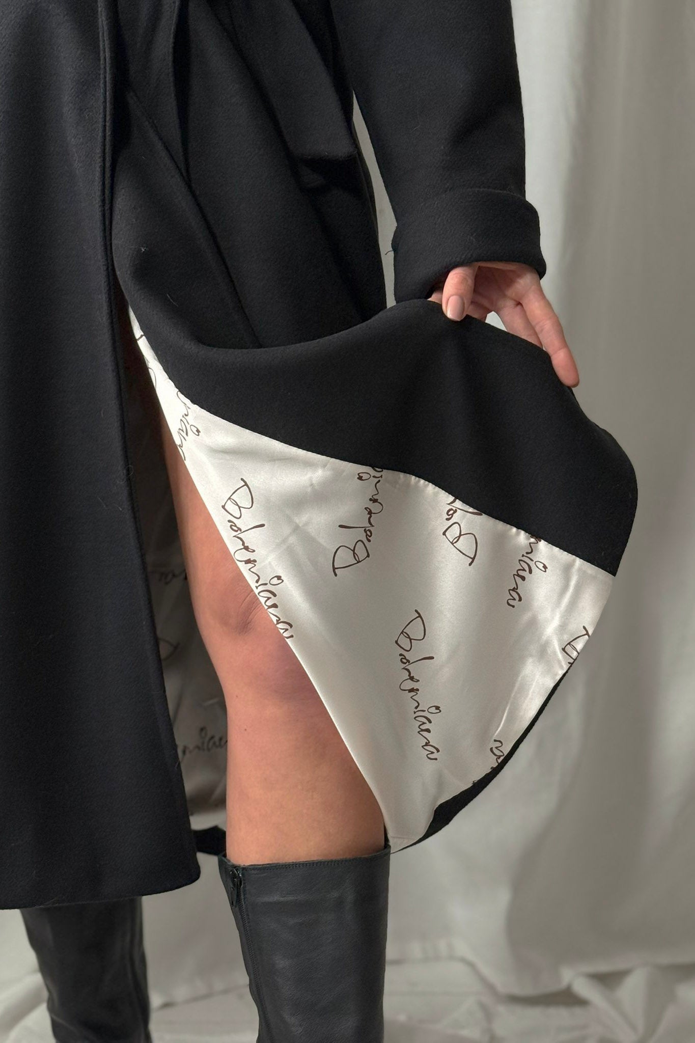 Elegantti, shaalikauluksinen takki on malliltaan klassikko. Käy XS-XL kokoiselle. Materiaali pehmeää, ja sileää, täydellinen takki vilpoisiin keleihin mutta ei pakkasille. Hihat saa ihanasti käännettyä kerran ja kauluksen viikkaus on kauniin leveä. Takissa on vyö ja vuoressa Bohemiana logo.