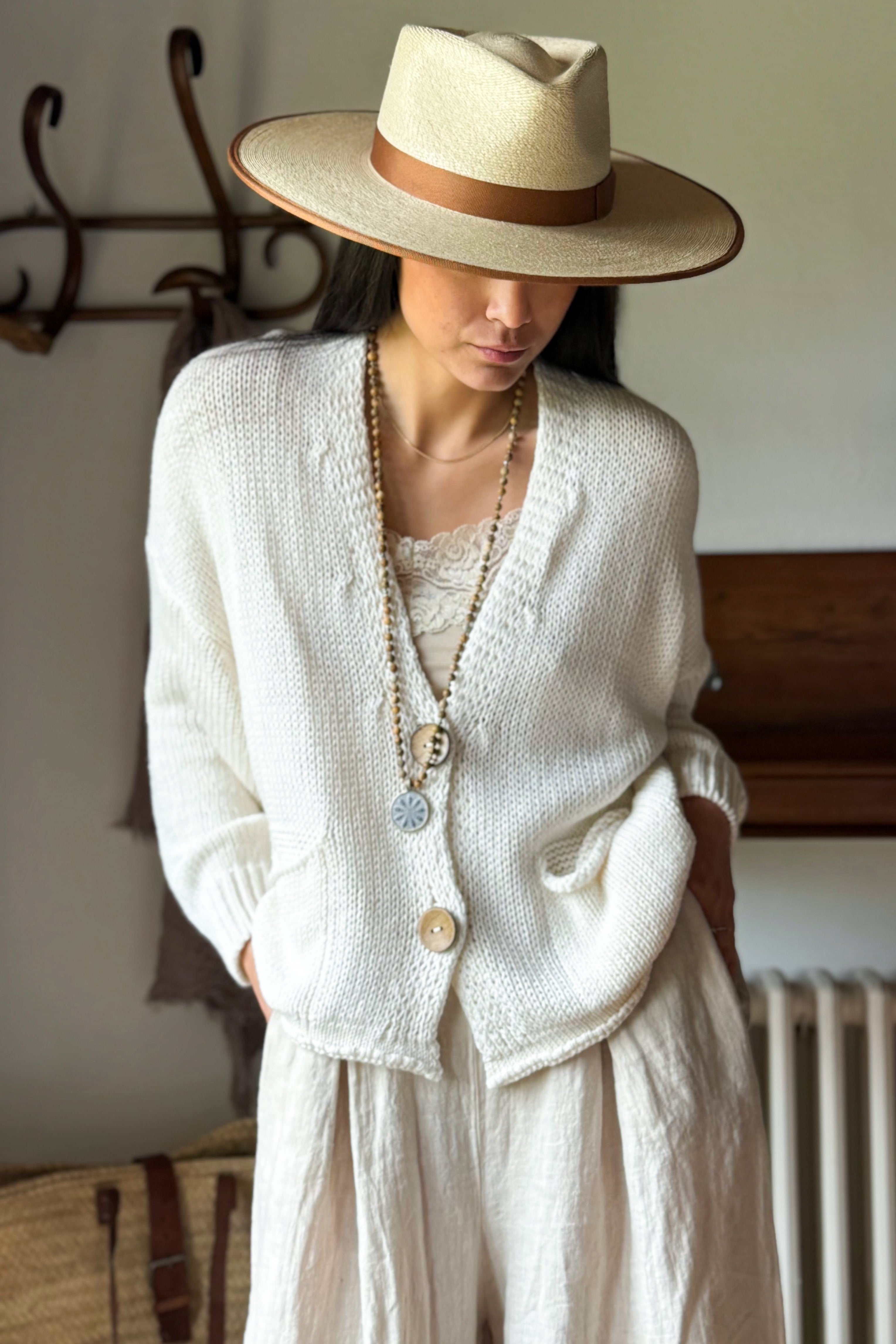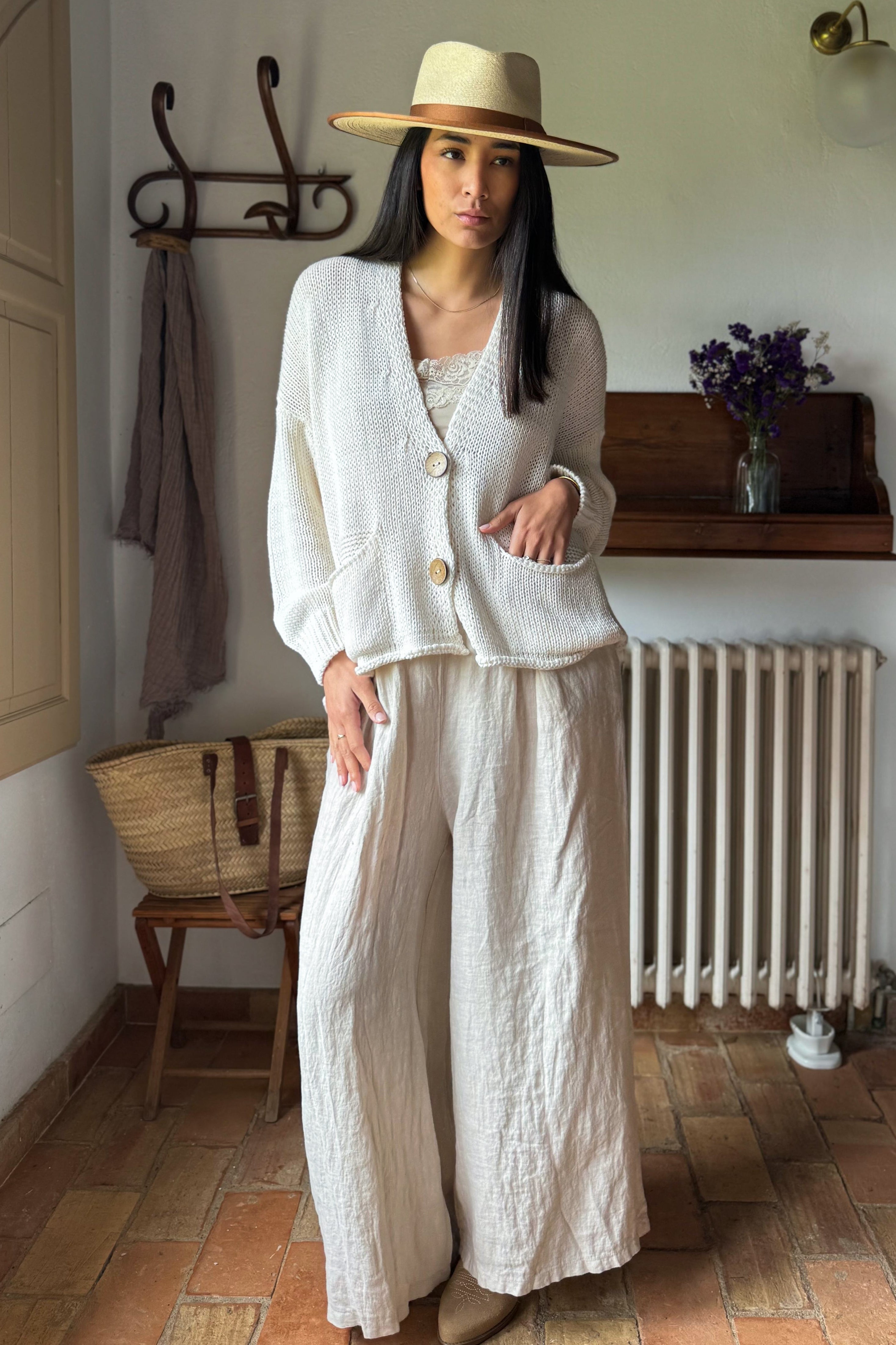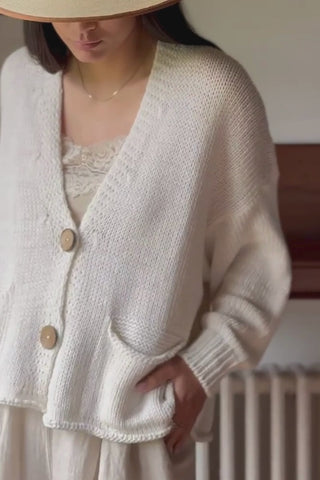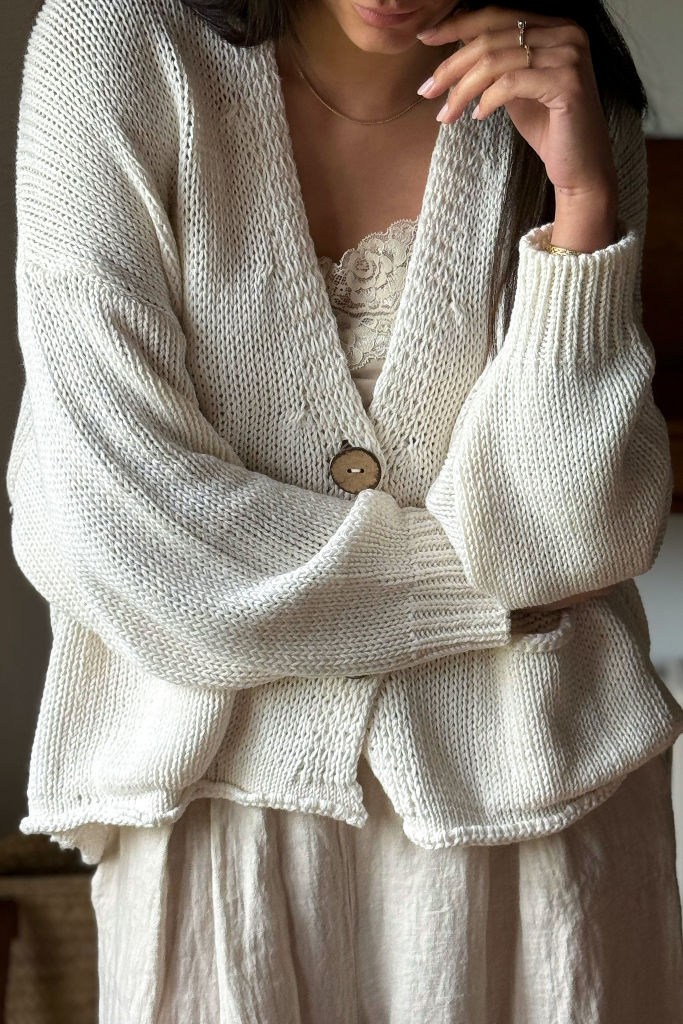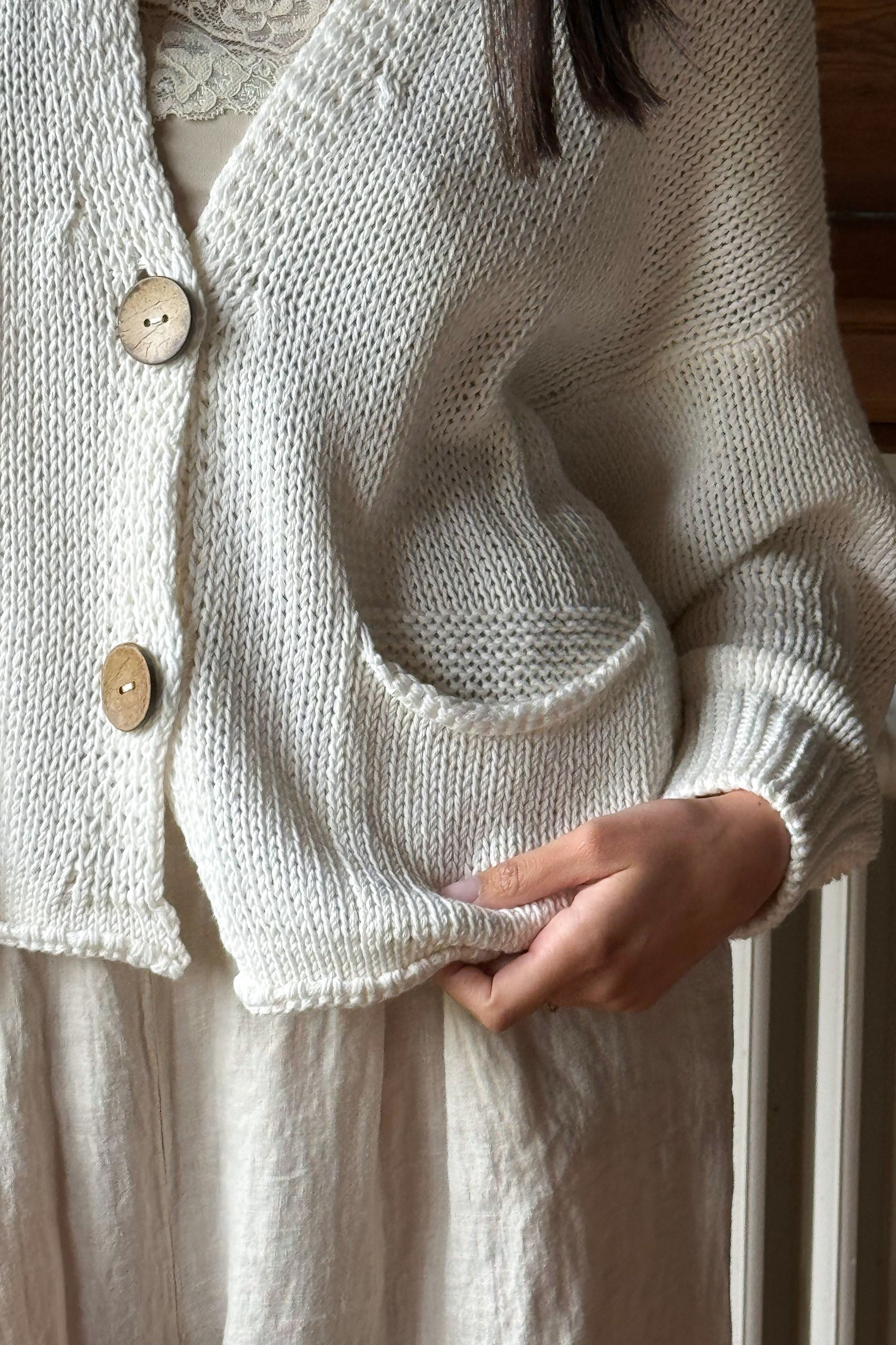 Pehmeä ja ajattoman tyylikäs neuletakki, joka tuo lämpöä ja mukavuutta asuusi. Rennosti istuva malli ja kaunis neulos tekevät tästä neuleesta monikäyttöisen valinnan niin arkeen kuin kerrospukeutumiseen. Suuret napit ja edessä olevat taskut lisäävät ripauksen rentoa eleganssia.