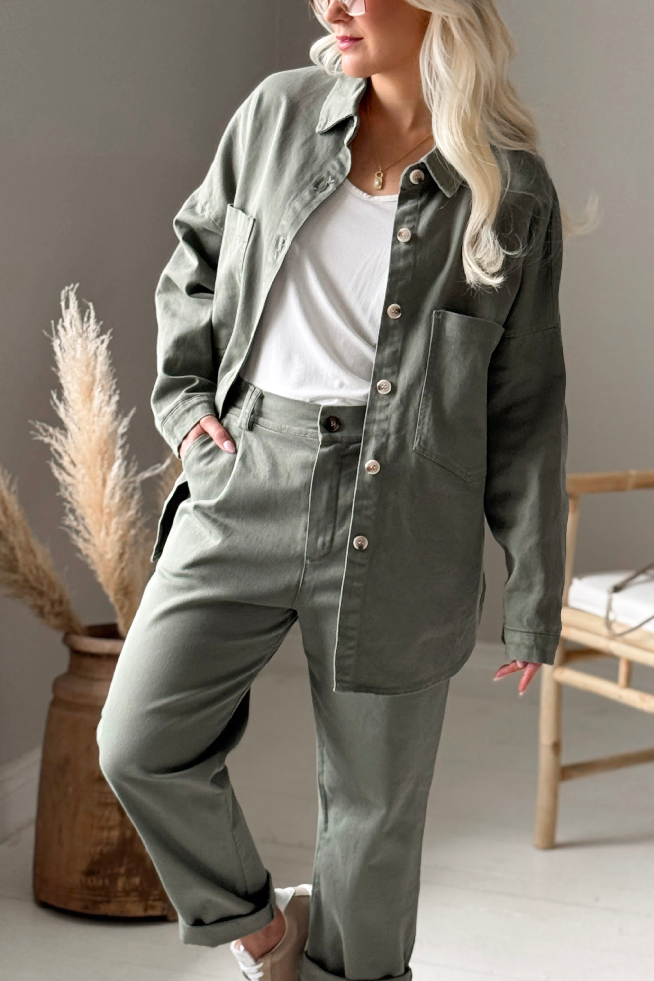 Rento oversized denim paitatakki isoilla etutaskuilla ja napituksella joka viimeistelee asusi täydellisesti. Tämä paita on mahtava valinta kun haluaa arkeen rennomman tyylin.