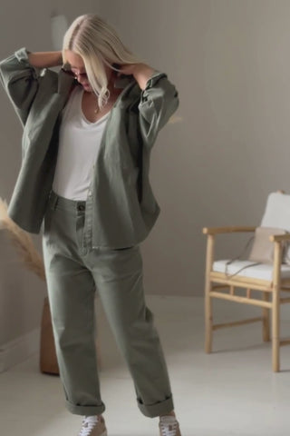 Miellyttävän jämäkkä puuvillatakki, sopivan rento mitoitus ja ihana väri camo. Haluaisin vielä samasta kankaasta camoväriset housut.