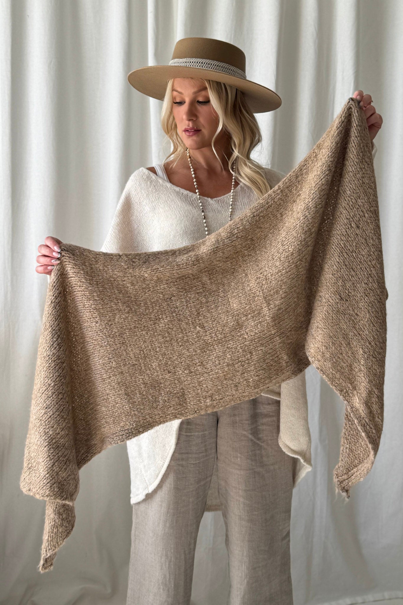 The scarf is long with asymmetrical ends that add a touch of elegant flair. Bouckle knits are made from easy-care materials and are gentle on the skin — they don’t itch.