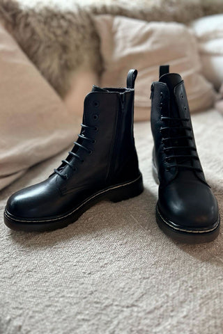 Sisällä tekstiilivuori, ulkomateriaali pintanahkaa ja pohja kumiseos.