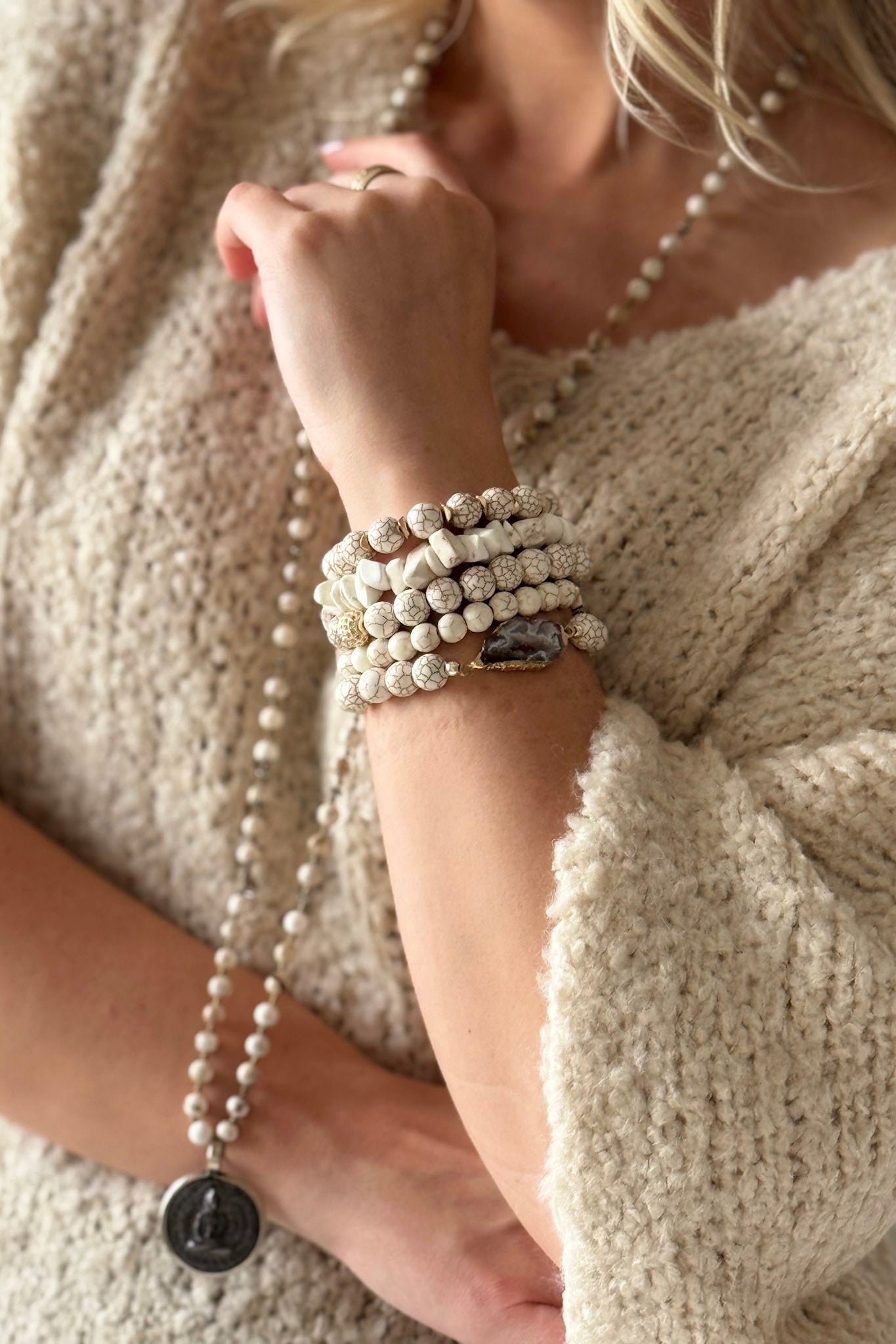 Beige stone 60%/Emperor beige stone 20%/Druzy 10%/Alloy 10%