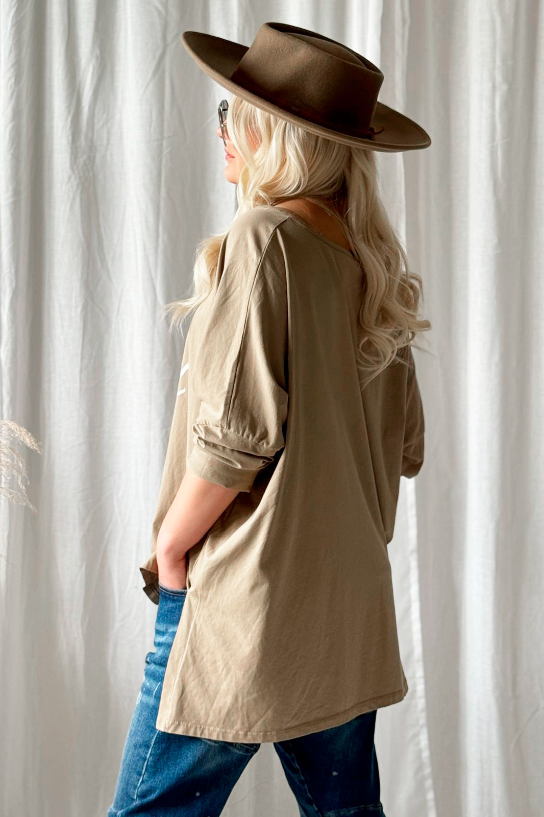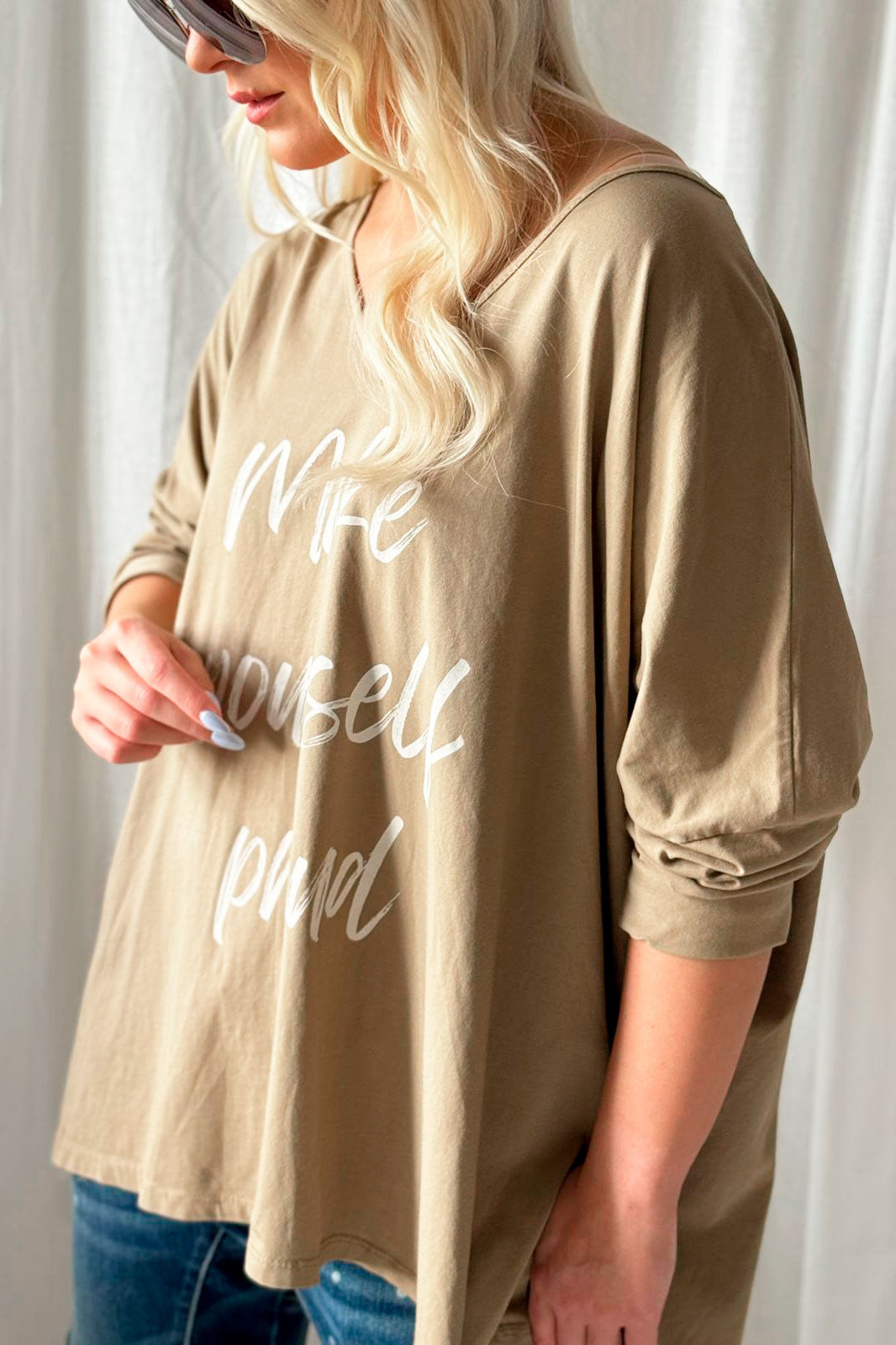 Make yourself proud - that's our philosophy! This oversized long-sleeved t-shirt is made of soft-washed cotton and is a familiar favorite. It features a V-neck, a bottom-covering length and slits at the hem.