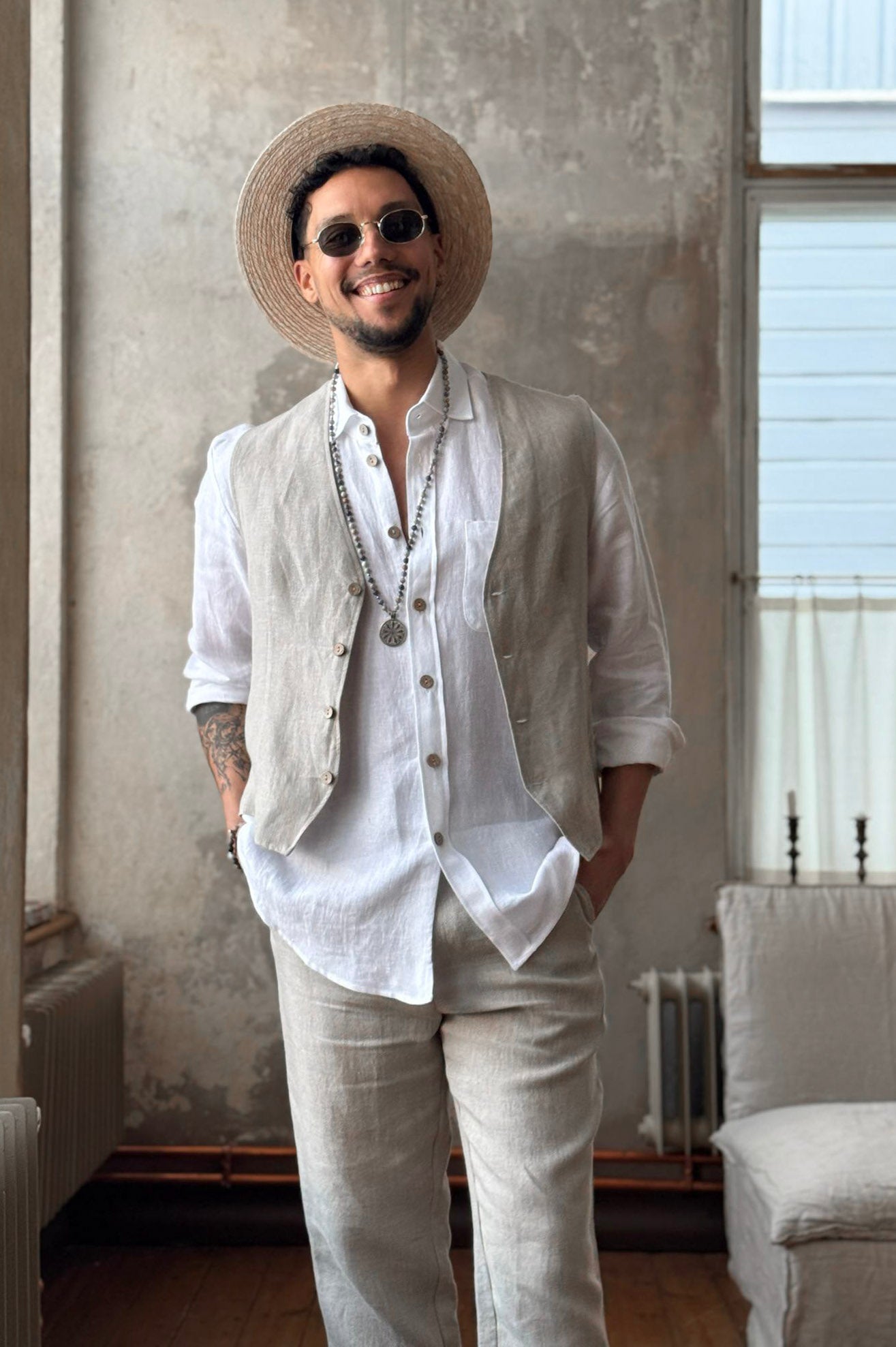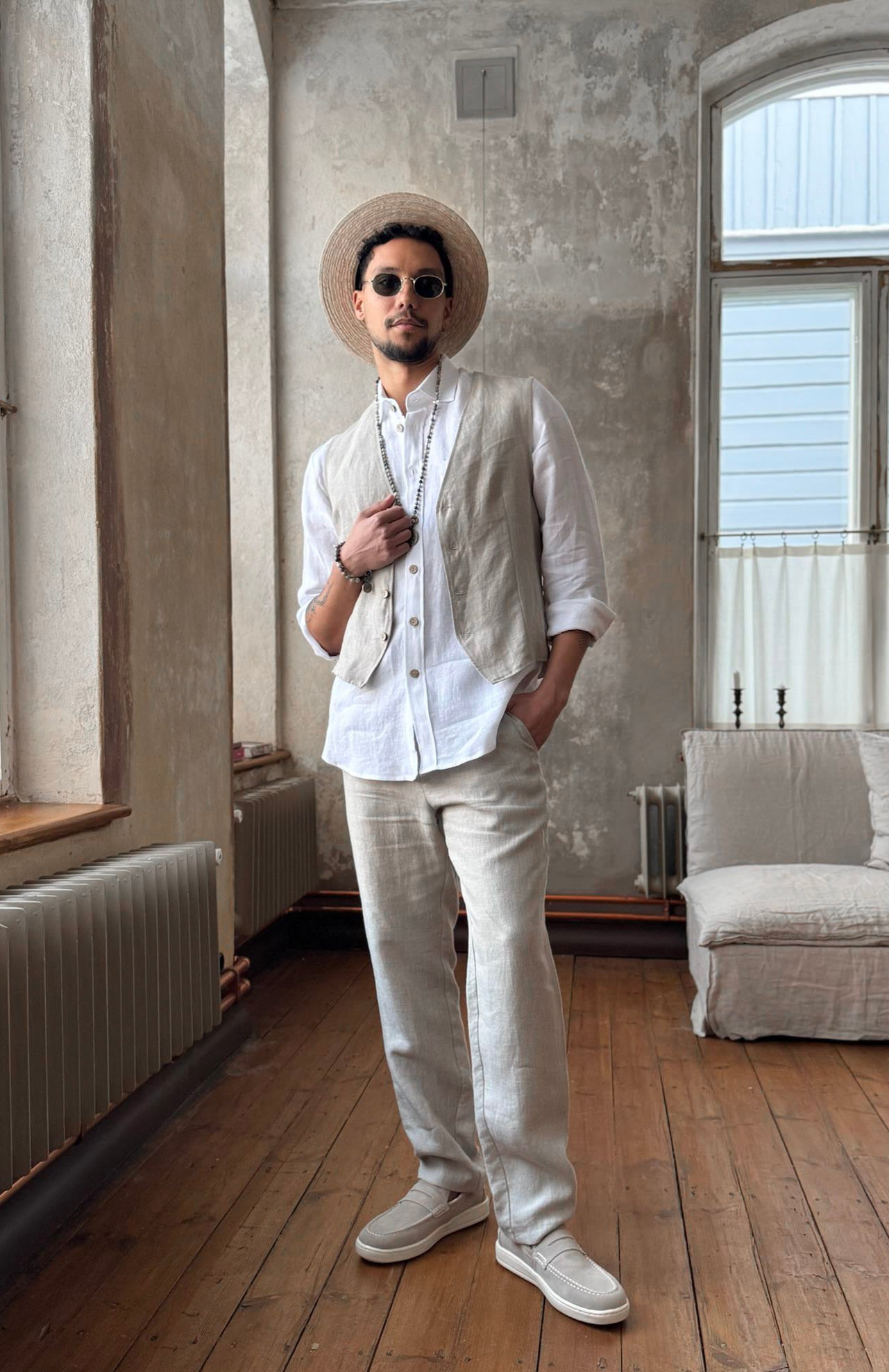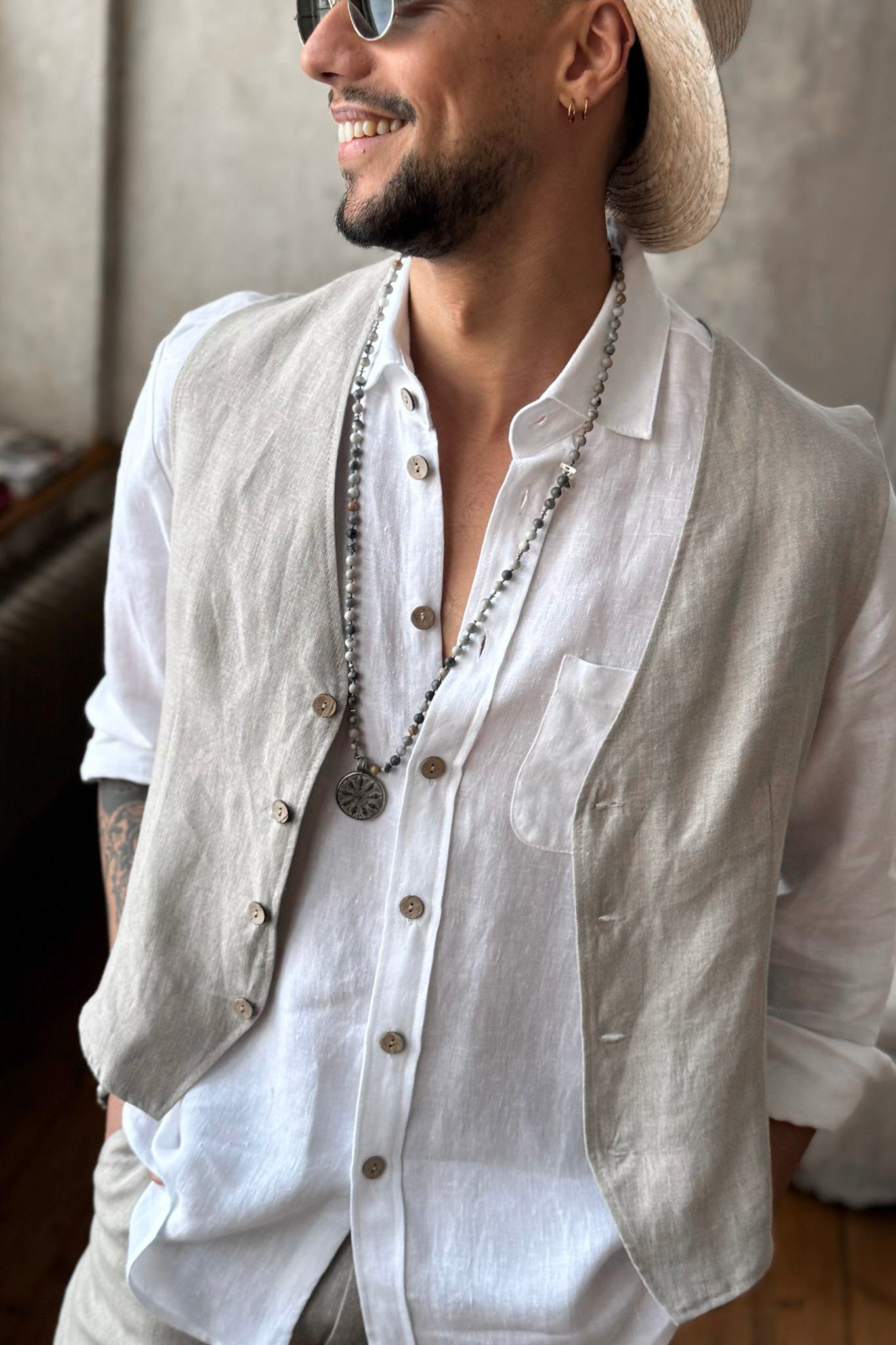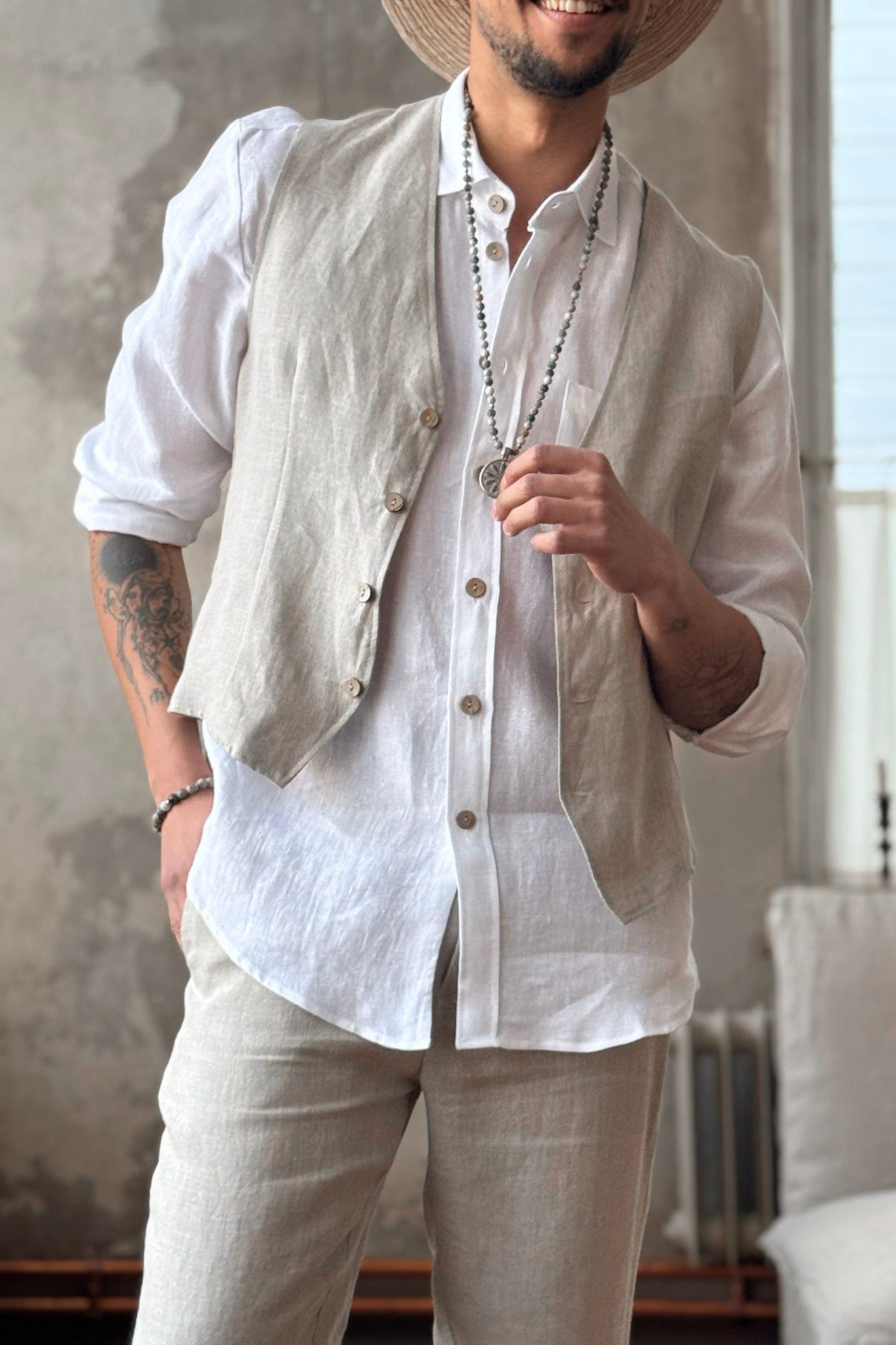A timeless and wonderful unisex linen vest! Adjustment allowance on the back, trendy built-in. Perfect for everyone to complete the look with linen dresses, shirts and jeans.