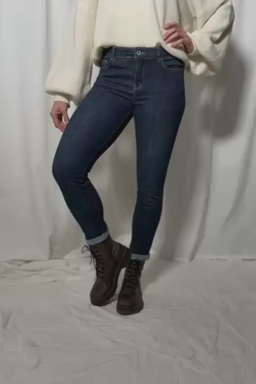 Basic skinny jeans. These lovely jeans are made of stretchy material and hold their shape well. The jeans have front and back pockets, a zipper closure with one button.