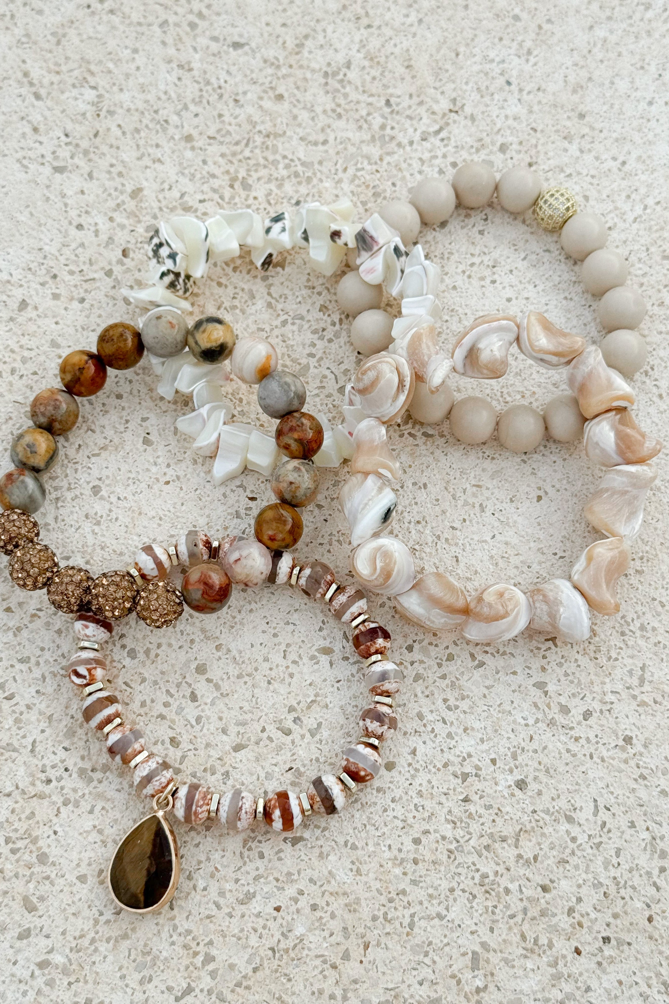Bring the beauty of nature into your style with this unique bracelet set! The set includes four different pieces of jewellery that can be worn individually or layered to create the perfect look for everyday or special occasions.