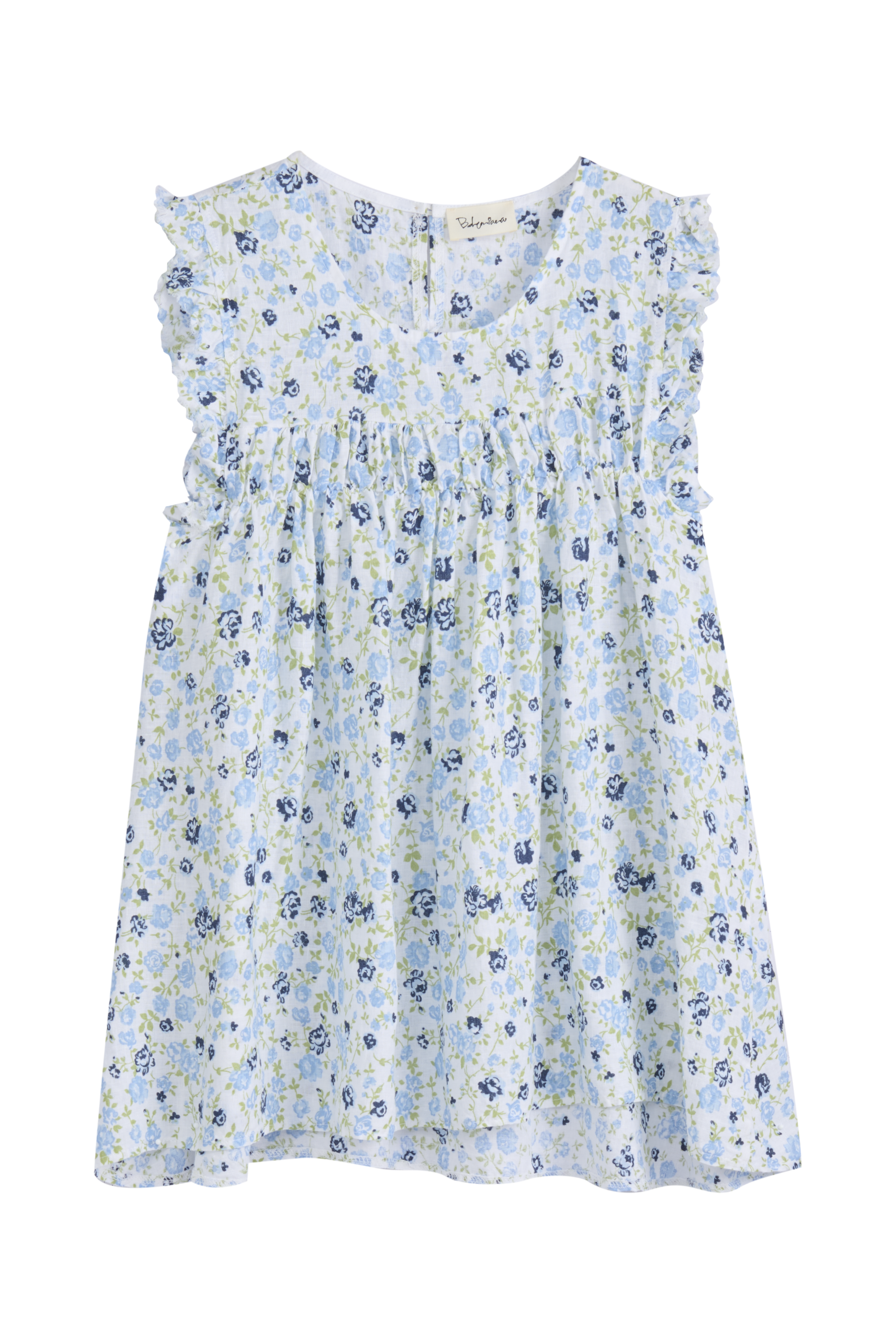 The shirt has beautiful ruffle detailing on the sleeves and front, creating a light and relaxed look. The fabric is made from natural materials and is breathable and comfortable to wear.