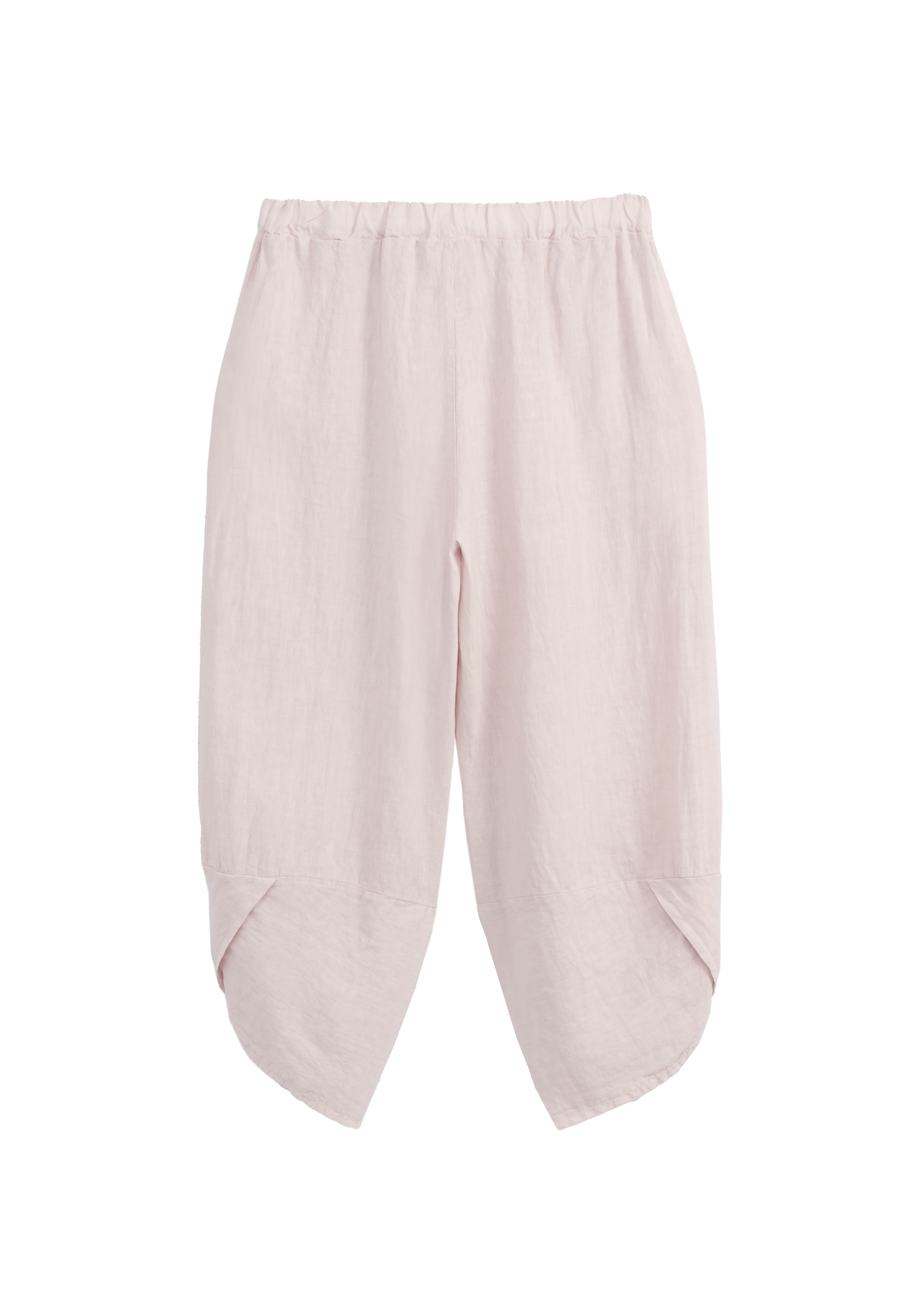 Wonderfully bohemian linen pants that pair beautifully with a variety of outfits. The trousers feature a comfortable elastic waistband and unique, playful leg detailing. Practical side pockets add functionality.