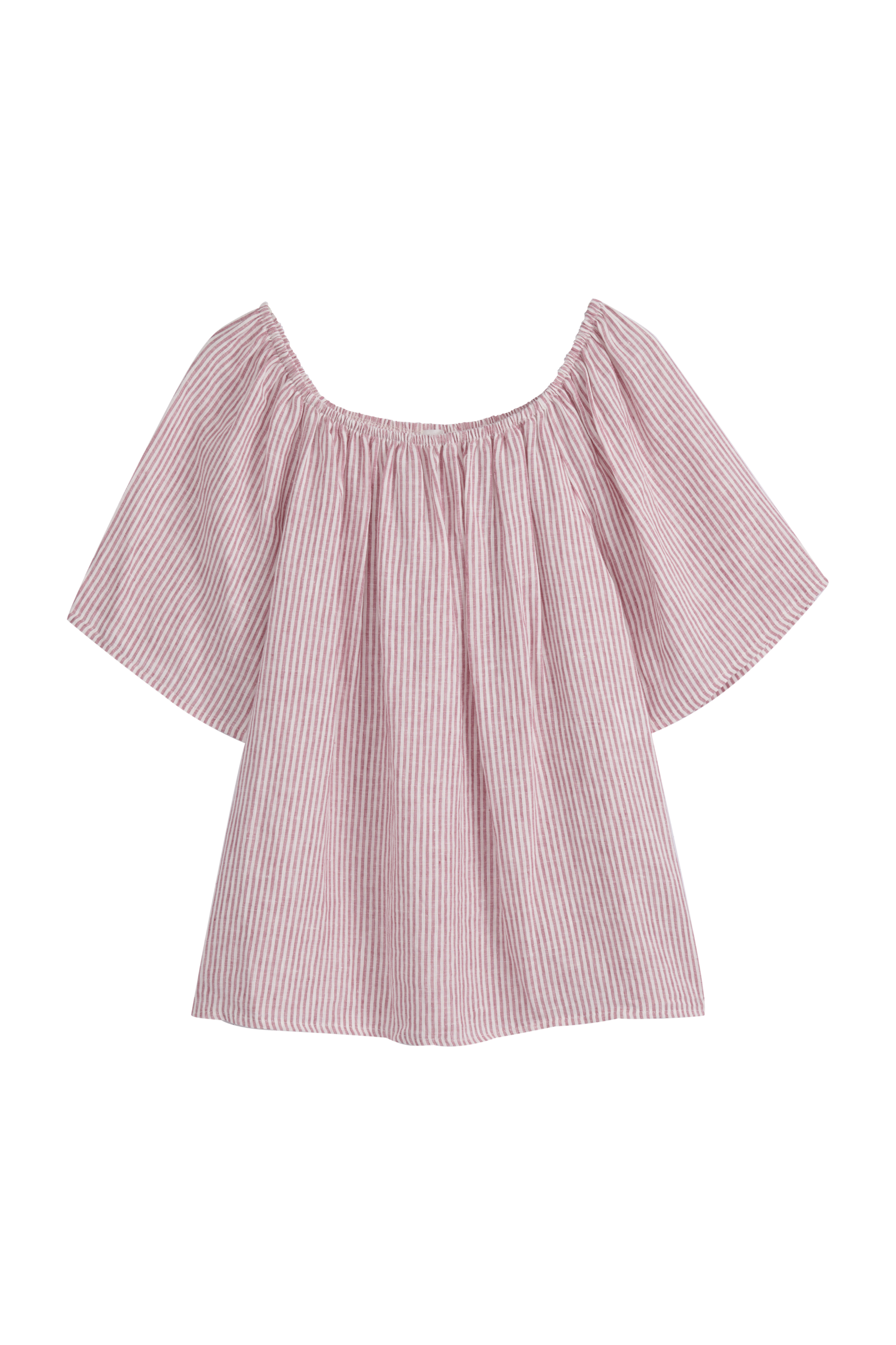 A wonderfully airy off-the-shoulder top made from lighter-weight linen with an A-line silhouette. Half-length, loose sleeves with a slight flare. Light and beautifully draping, an easy choice for summery outfit combinations.