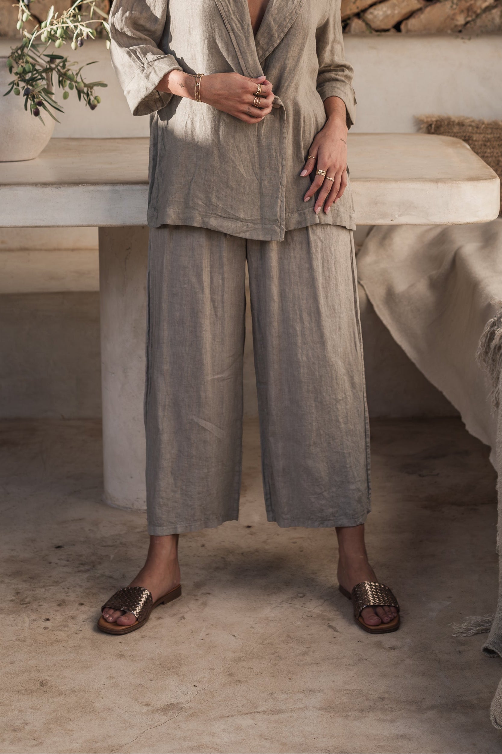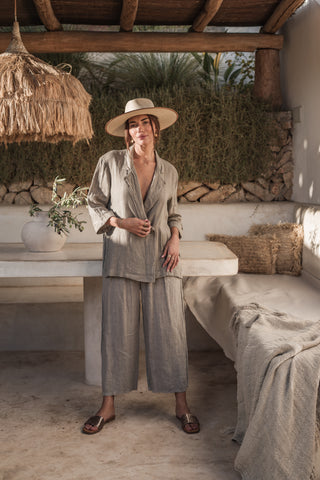 Havana linen pants are a straight, classic style with an elastic waistband. Designed to be cropped, if you are shorter the pants can be worn as full-length.