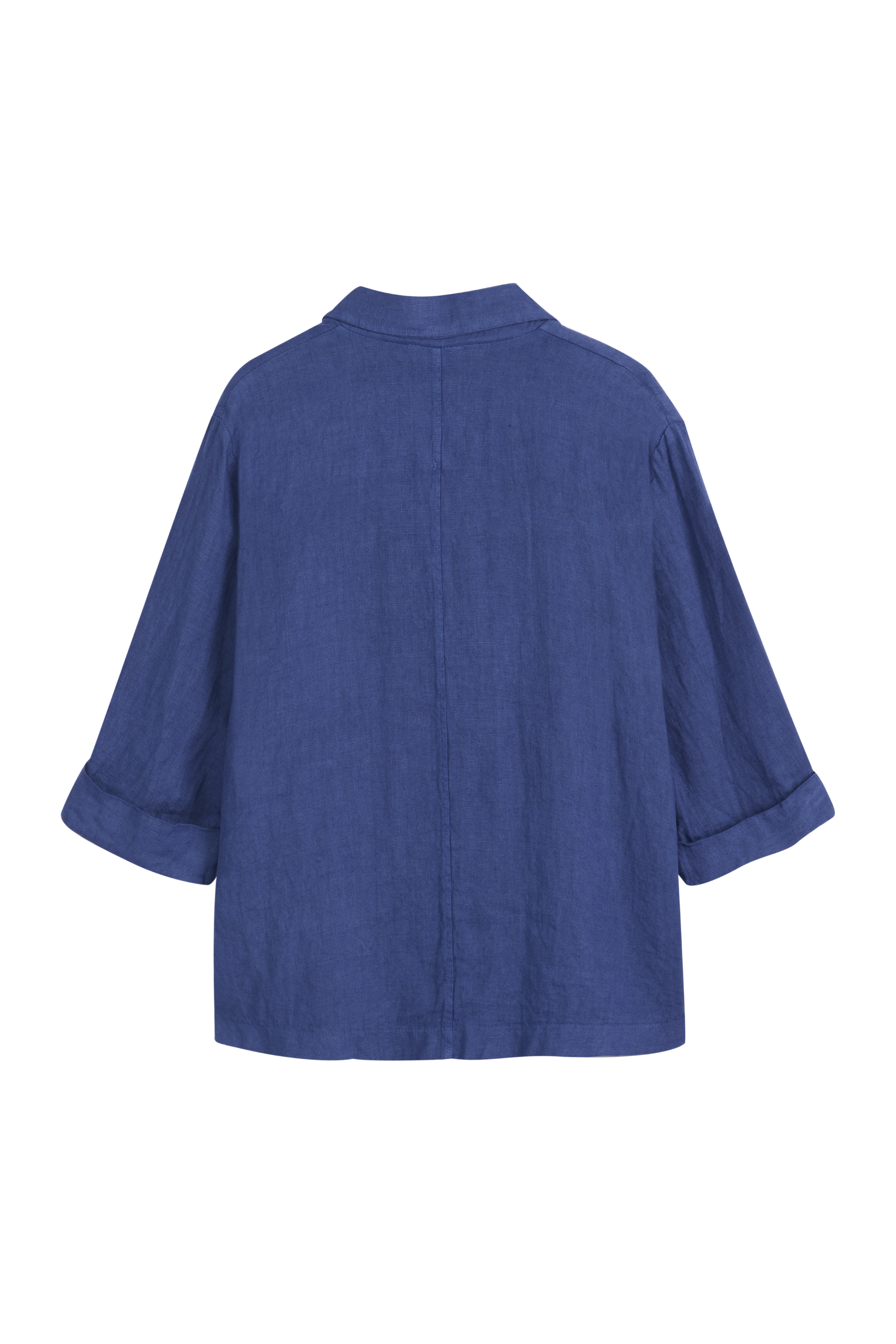 This stylish, casual linen blazer is a staple item in your wardrobe. Classic turn-down collar and two-button front closure. Deep slits on the sides. Rolled-up sleeves, 3/4 length.