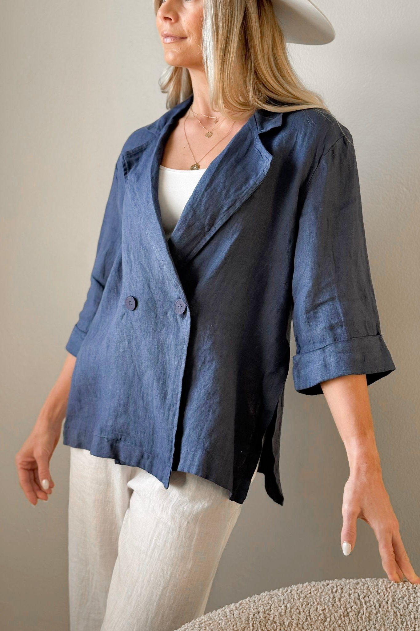 Haylee linen blazer, royal blue
