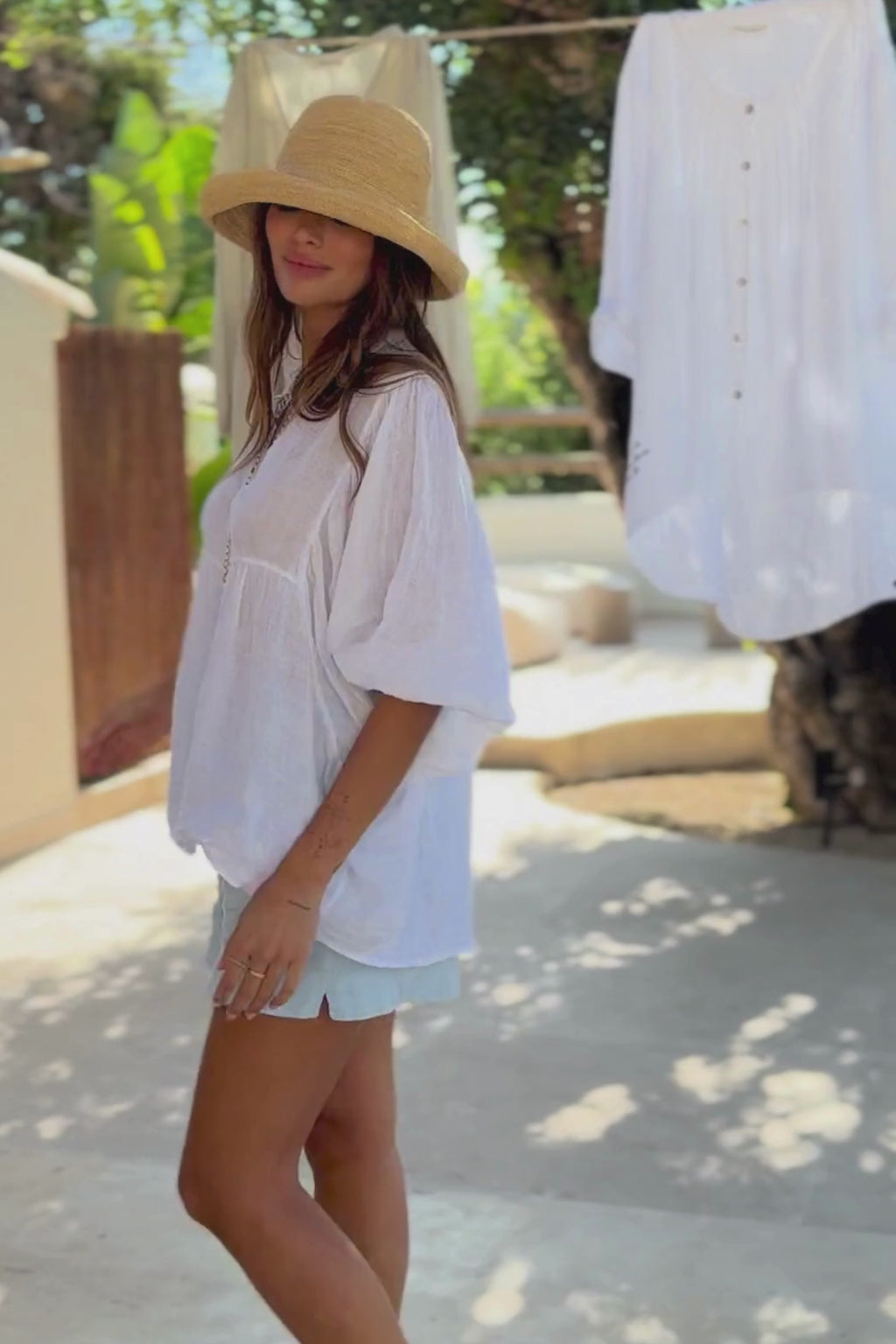 Simple yet stylish linen shorts with back pockets. The shorts also has side pockets. Elastic waistband.