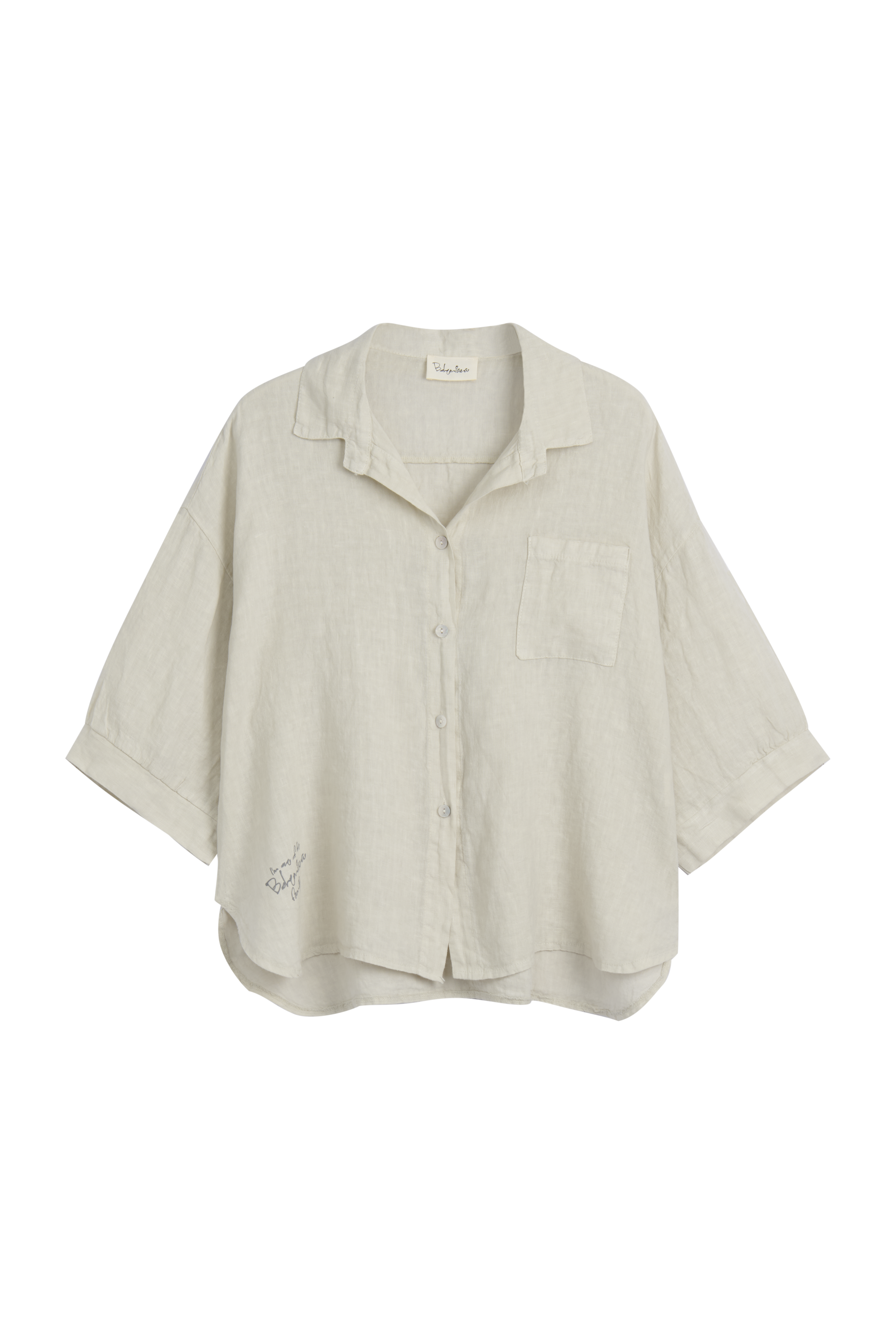 A gorgeous Bohemiana family shirt in soft and airy linen. The shirt has a dropped shoulder line and pearl buttons on the front.