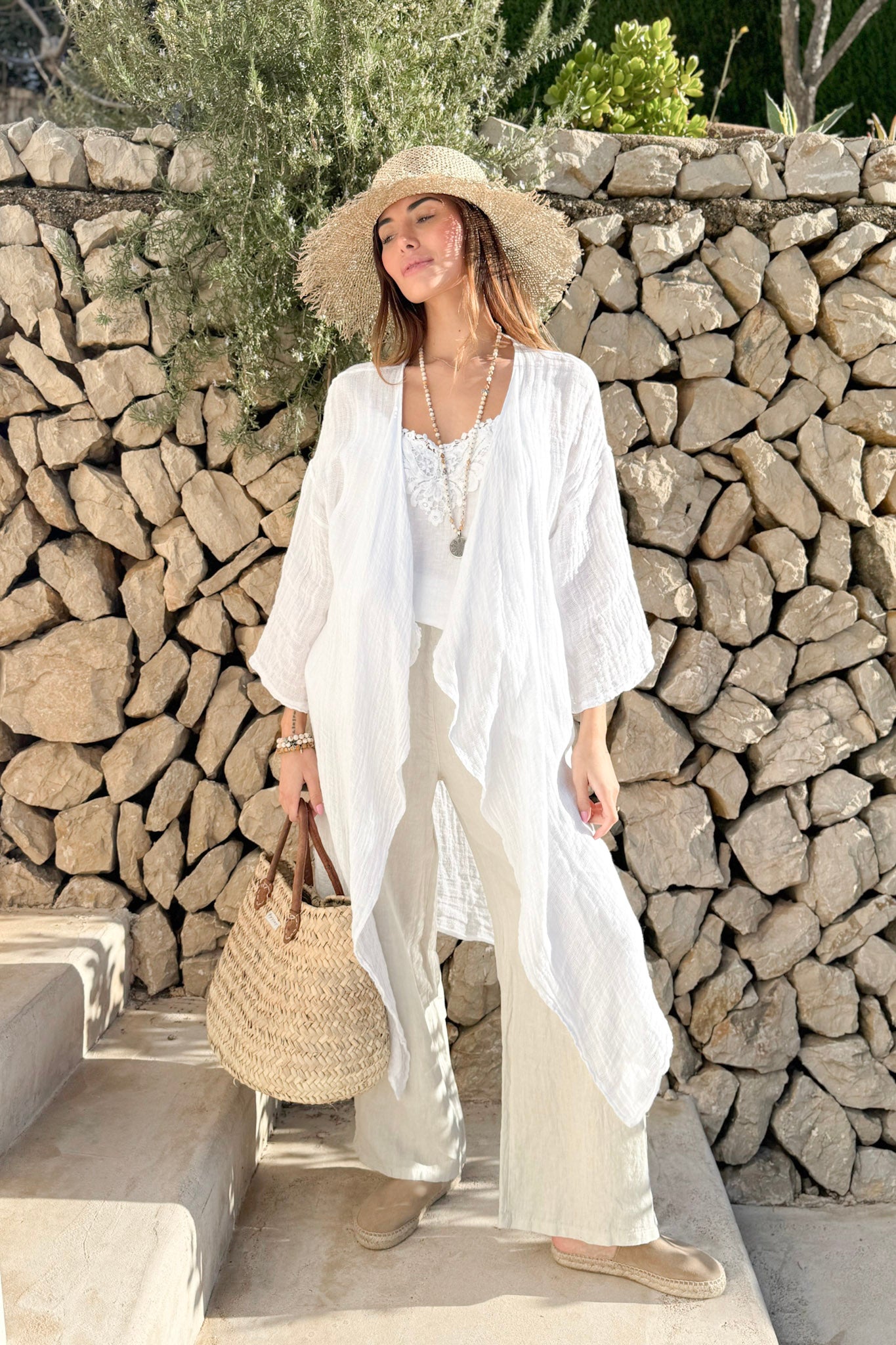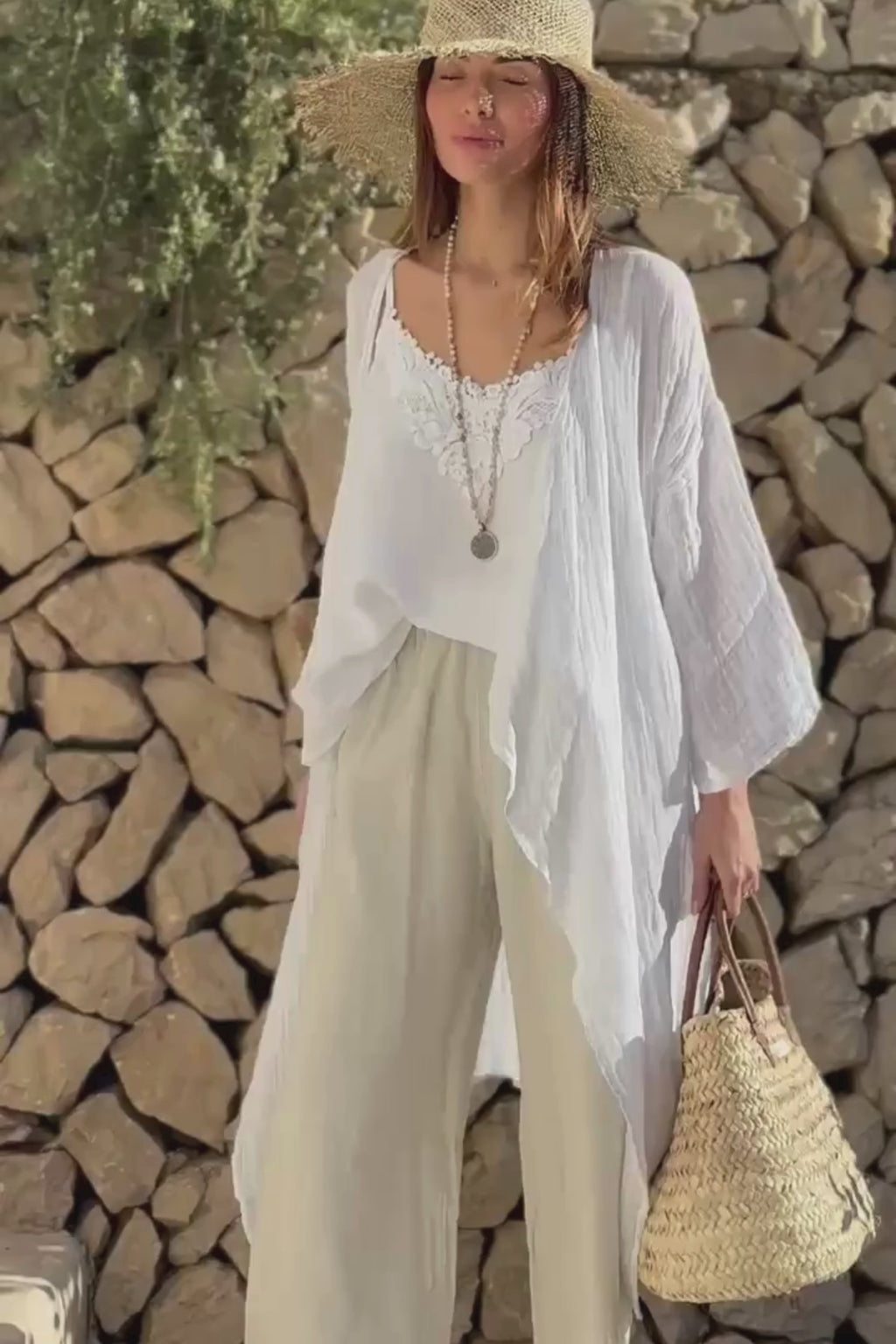 The light and airy linen kaftan enchants with its natural lightness and relaxed elegance. Crafted from soft, lightly textured linen, it drapes beautifully and feels comfortable against the skin. The loose fit, asymmetrical hemline, and finished edges give the kaftan a bohemian, effortless look.