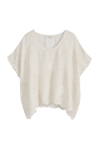 Delphie embroidered linen blouse, vanilla