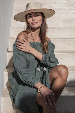 First Love linen dress, camo