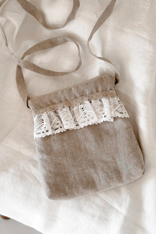 Lace crossbody bag, natural + white lace