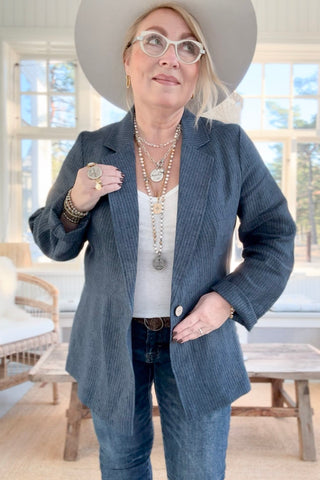 Timeless linen blazer, denim stripe