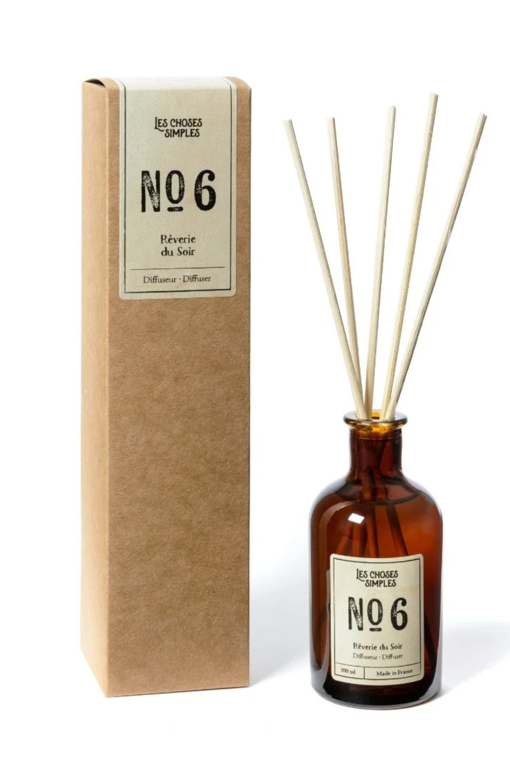 With its charming vintage apothecary-style bottle, this room diffuser is a beautiful decorative element in any room while gently dispersing your favorite fragrance. It comes in an elegant box together with diffuser reeds. The “Rêverie du Soir” scent is an enchanting blend of rustic amber and French lavender, enhanced with notes of tonka bean, vanilla, and clary sage — a soothing composition that invites dreaming and relaxation.