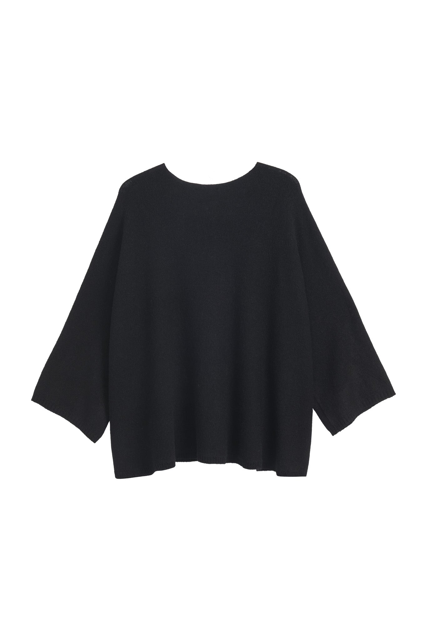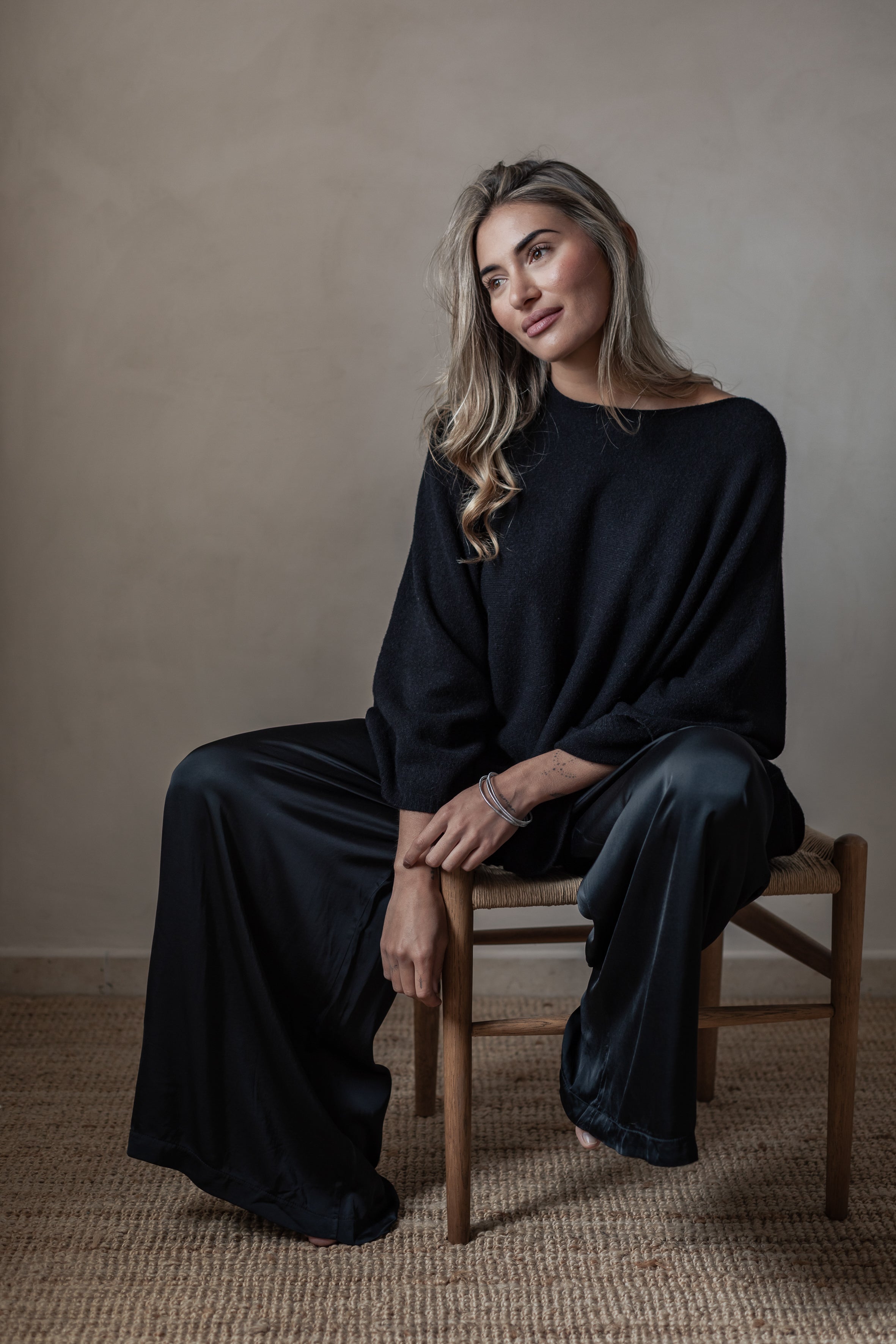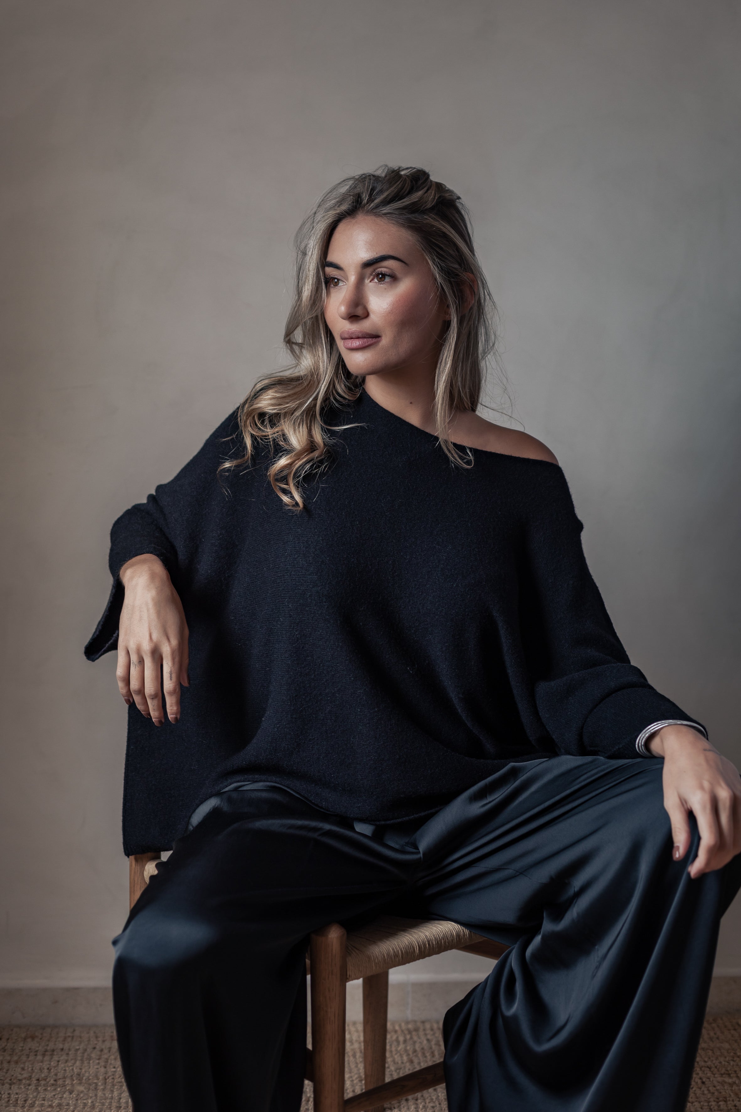 Incredibly luxurious, stretchy oversized knit sweater with a wide hem and slightly cropped, generously cut sleeves. The look is completed by the special viscose blend knit material that adds a refined touch.