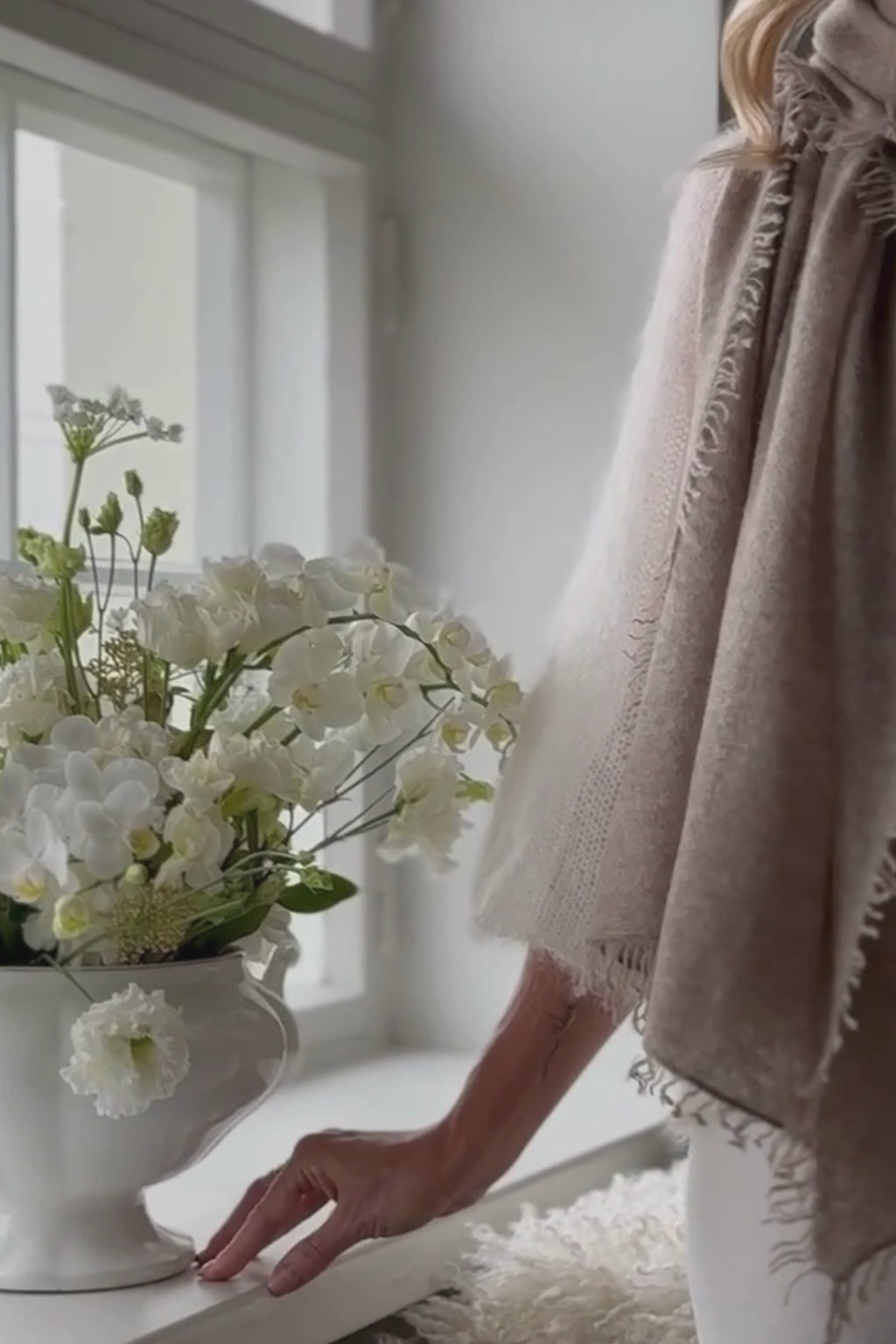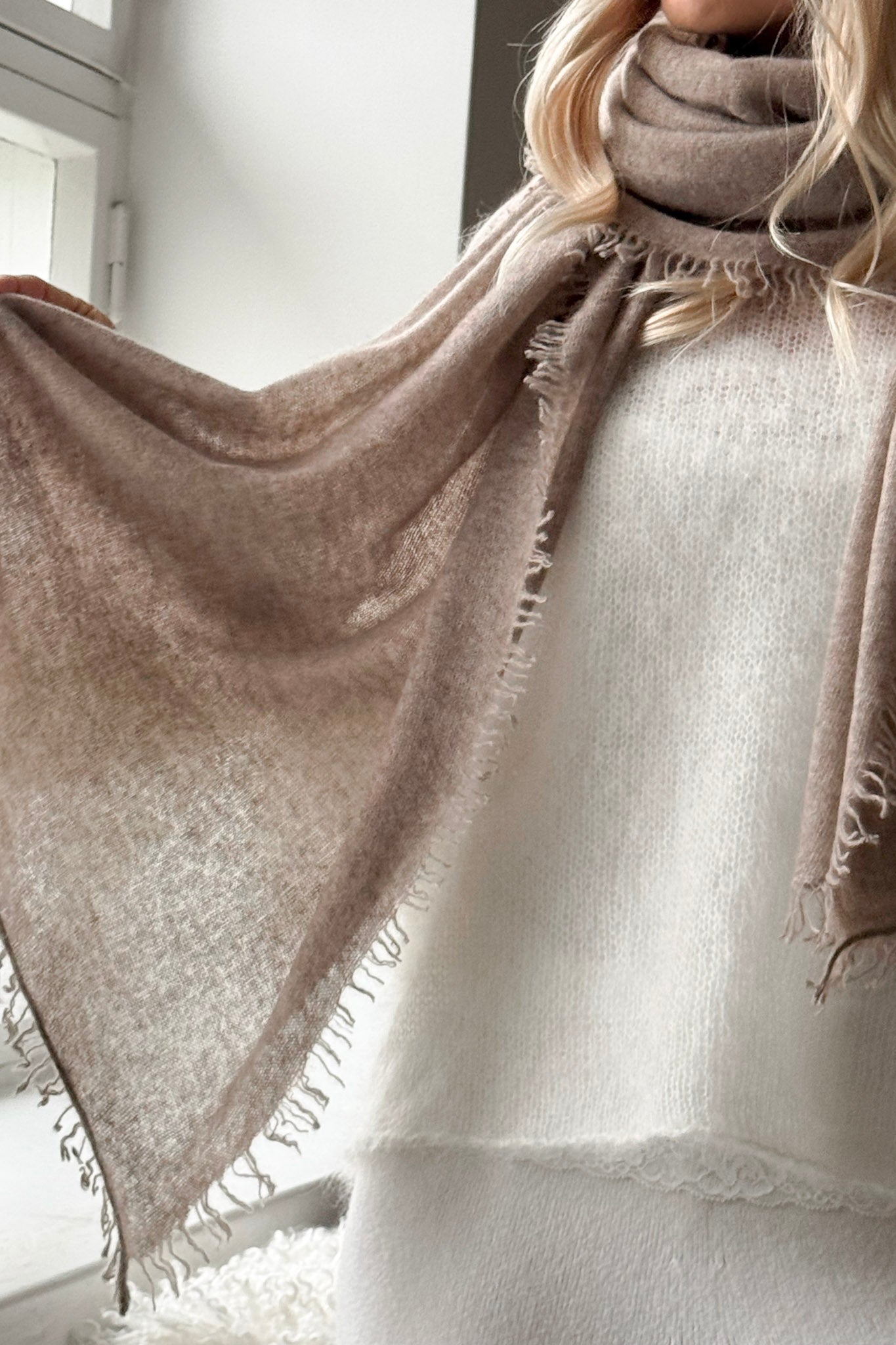 Elegant and luxurious cashmere scarf that effortlessly completes any outfit. The airy, lightweight material feels comfortable around the neck, while its silky softness gently caresses the skin. The timeless design makes it a versatile and reliable choice.