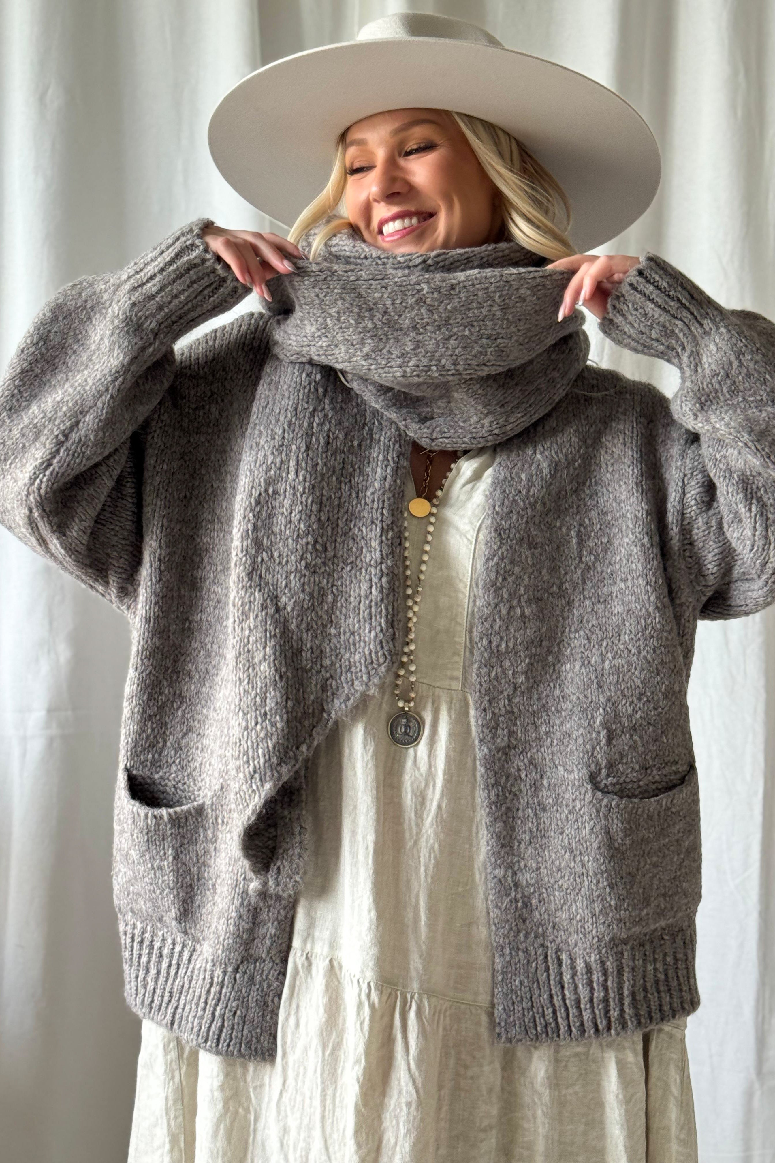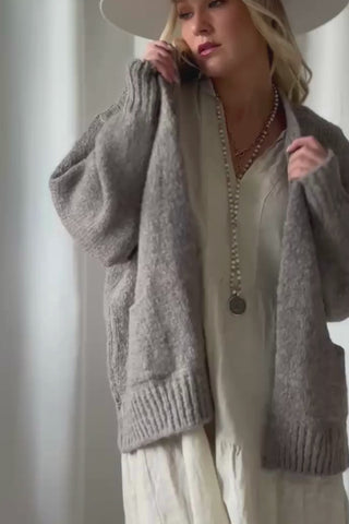 Luxuriously soft cardigan with light ribbing at the cuffs and hem. Features practical front pockets on both sides. A lovely extra layer for cooler days.